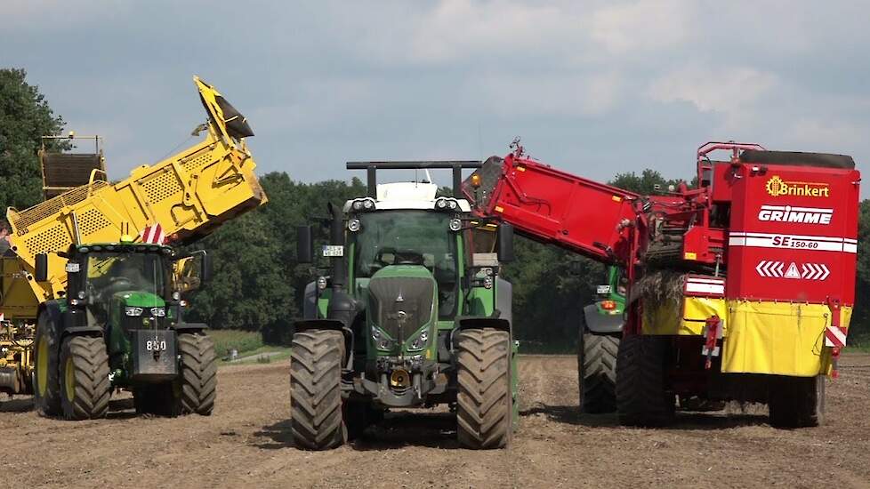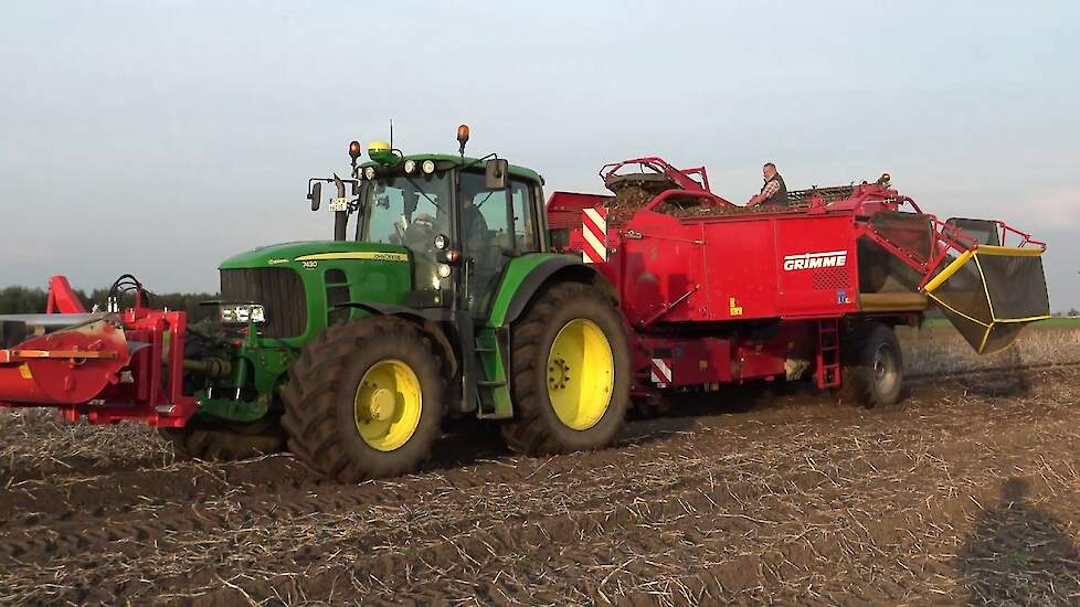 John Deere 7430 met Grimme SE 150 - 60 aan het aardappels rooien