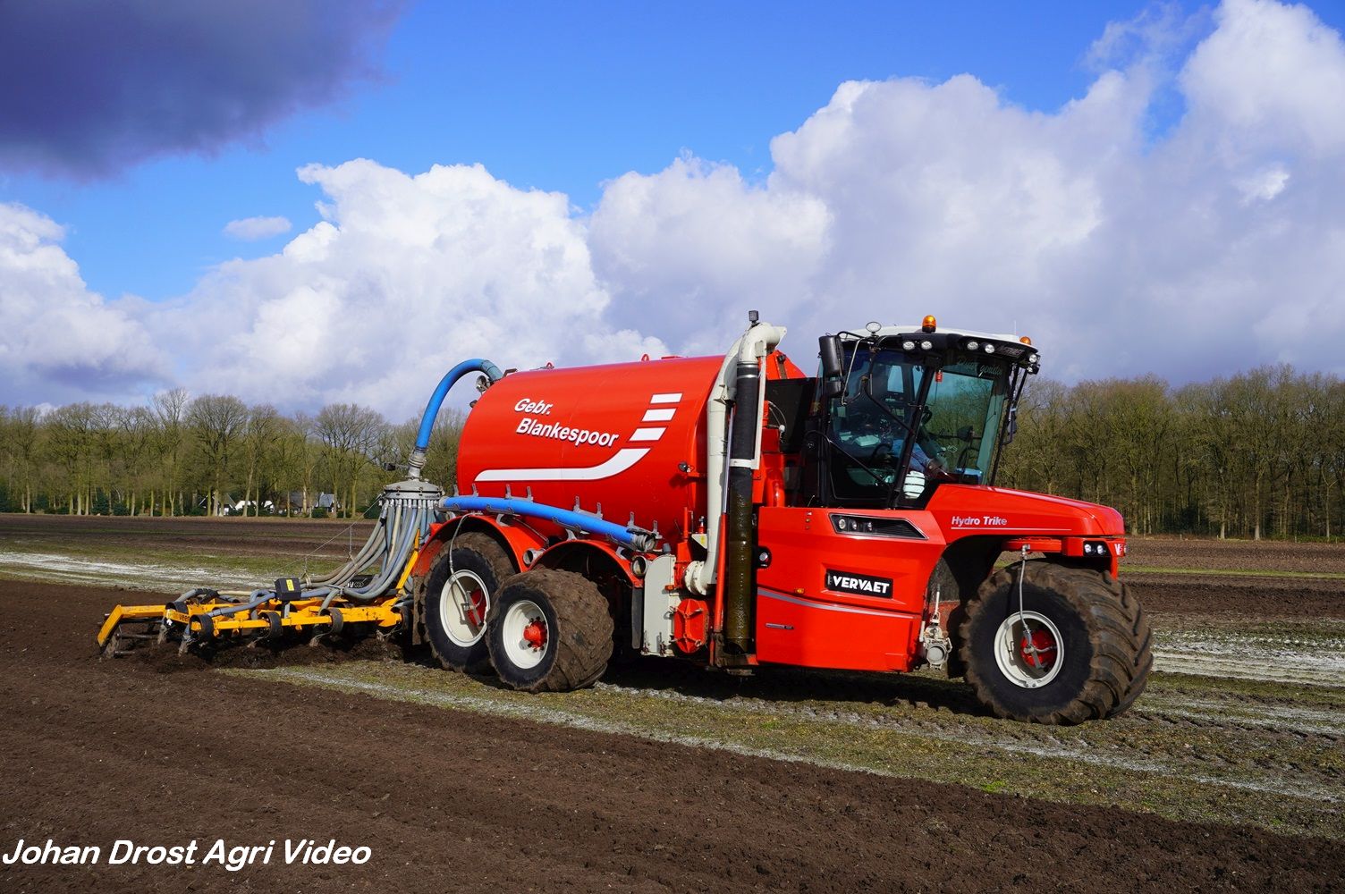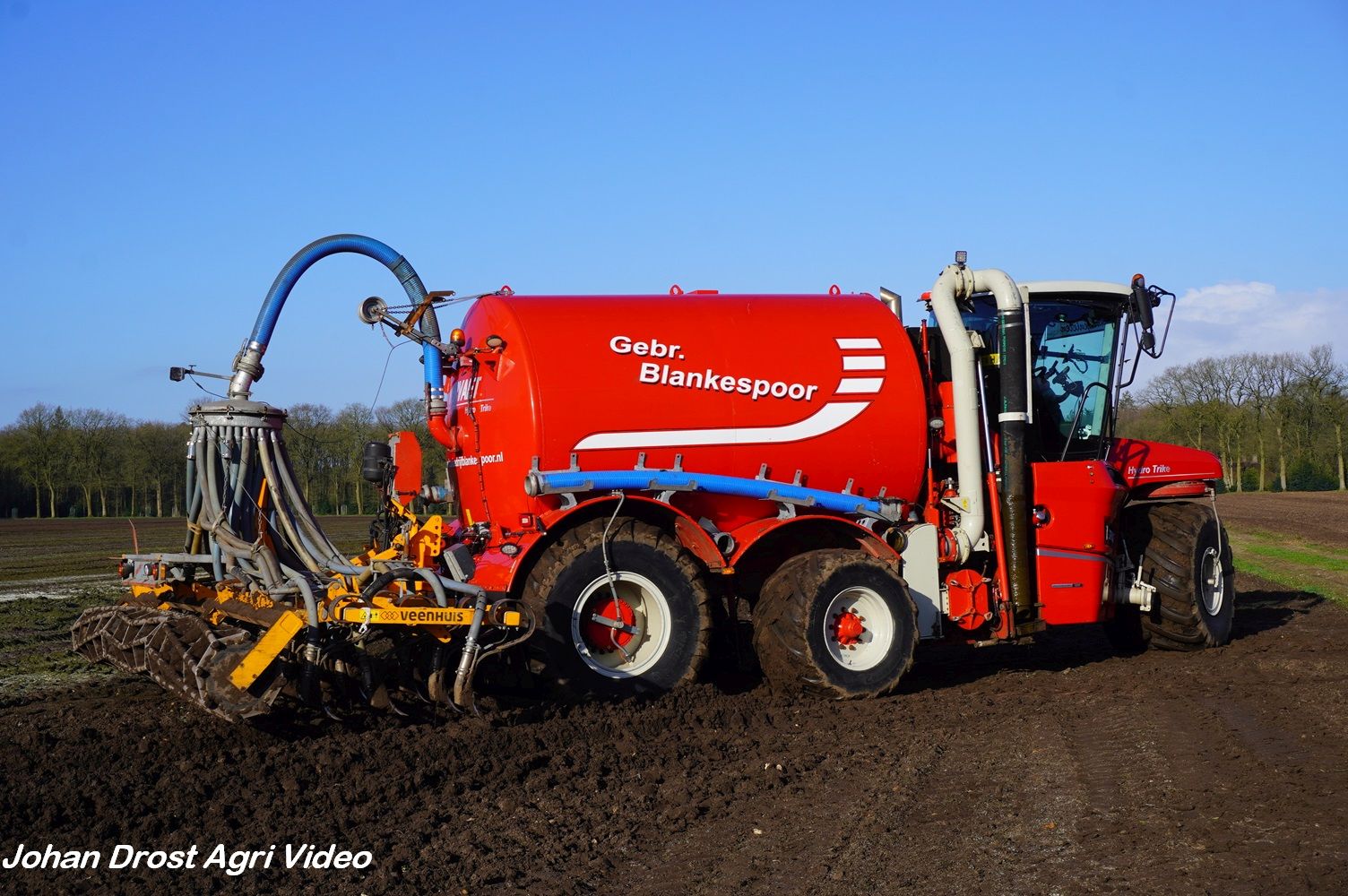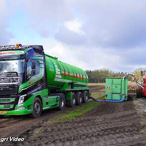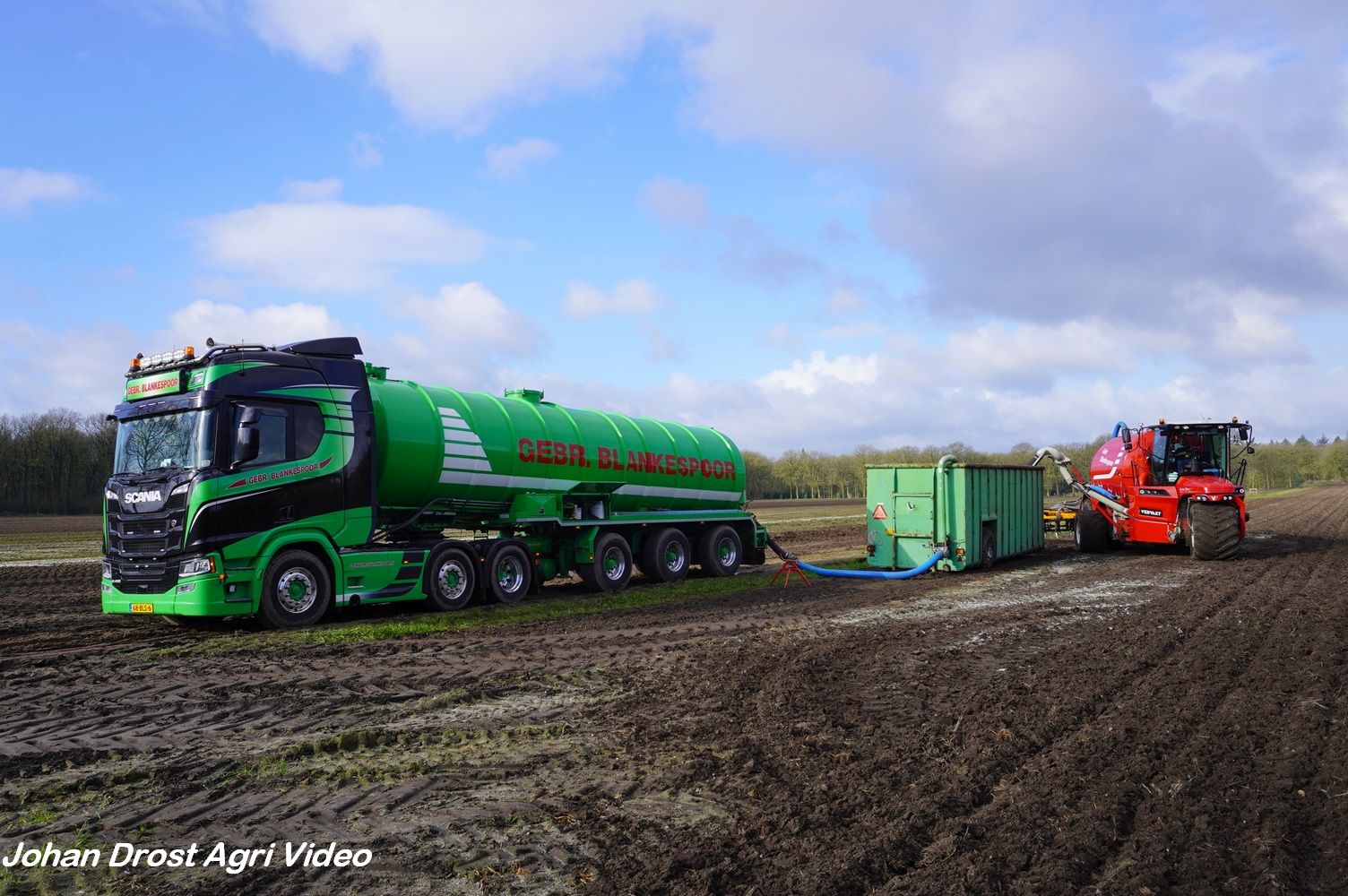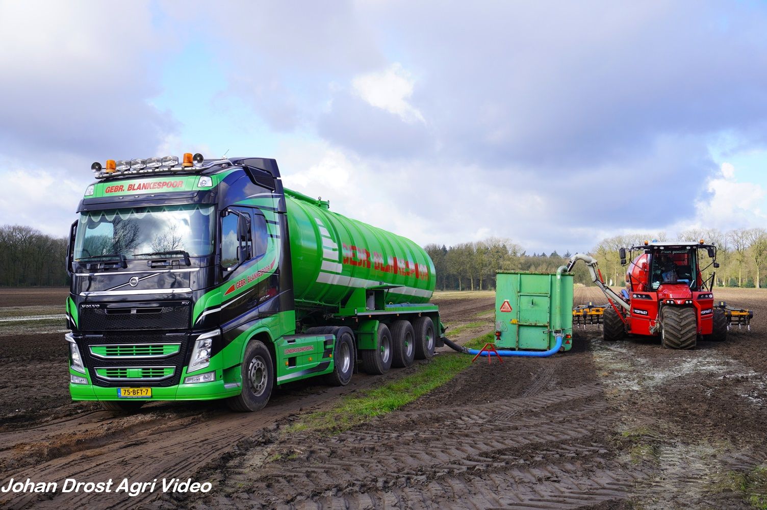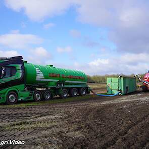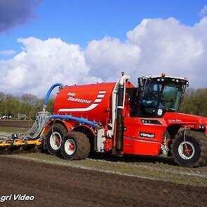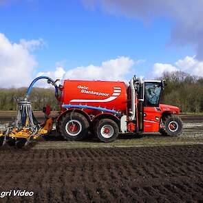 Loonbedrijf Gebr. Blankespoor uit Harskamp aan het bouwland bemesten met een Vervaet Hydro Trike en Veenhuis bouwland bemester. Voor het transport een DAF, Scania en Volvo.