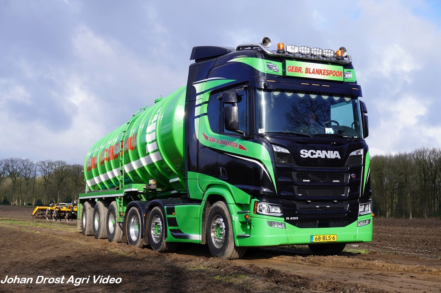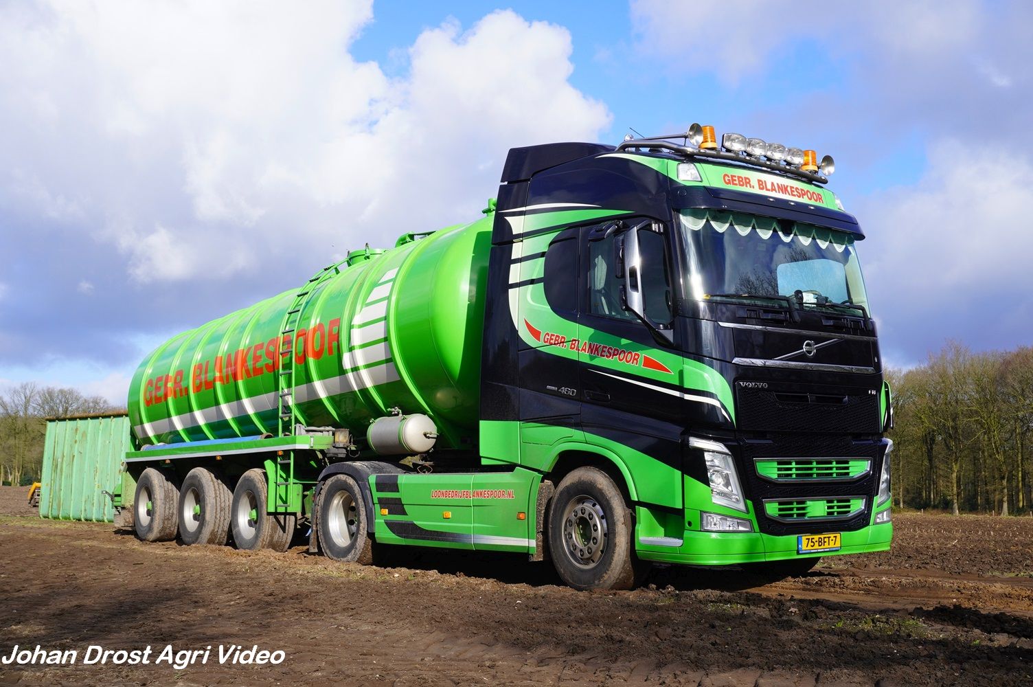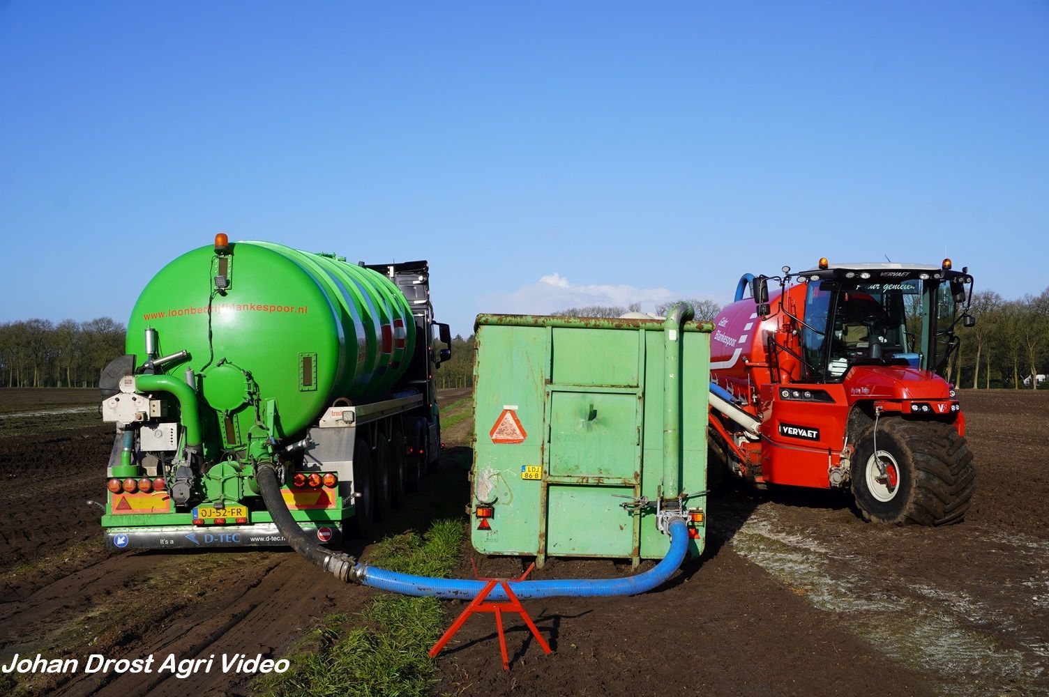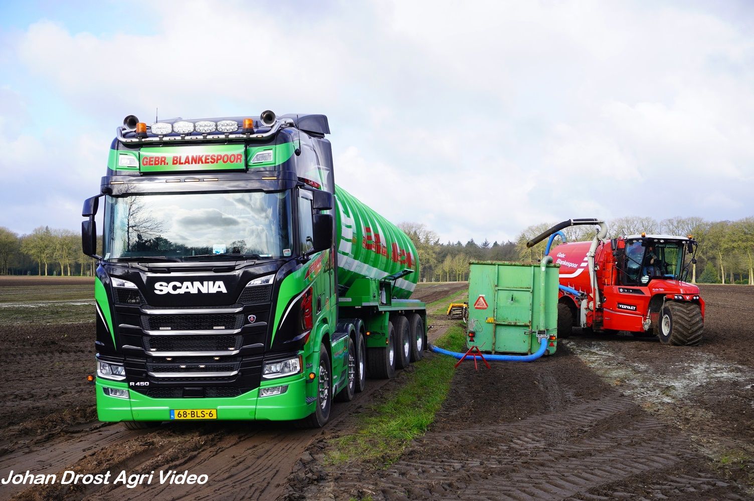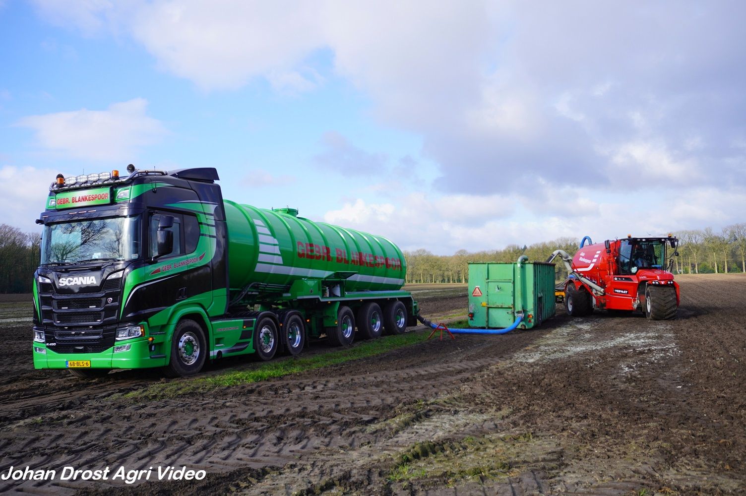 Loonbedrijf Gebr. Blankespoor uit Harskamp aan het bouwland bemesten met een Vervaet Hydro Trike en Veenhuis bouwland bemester. Voor het transport een DAF, Scania en Volvo.