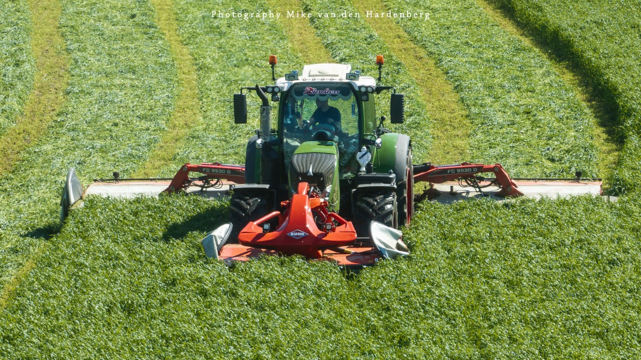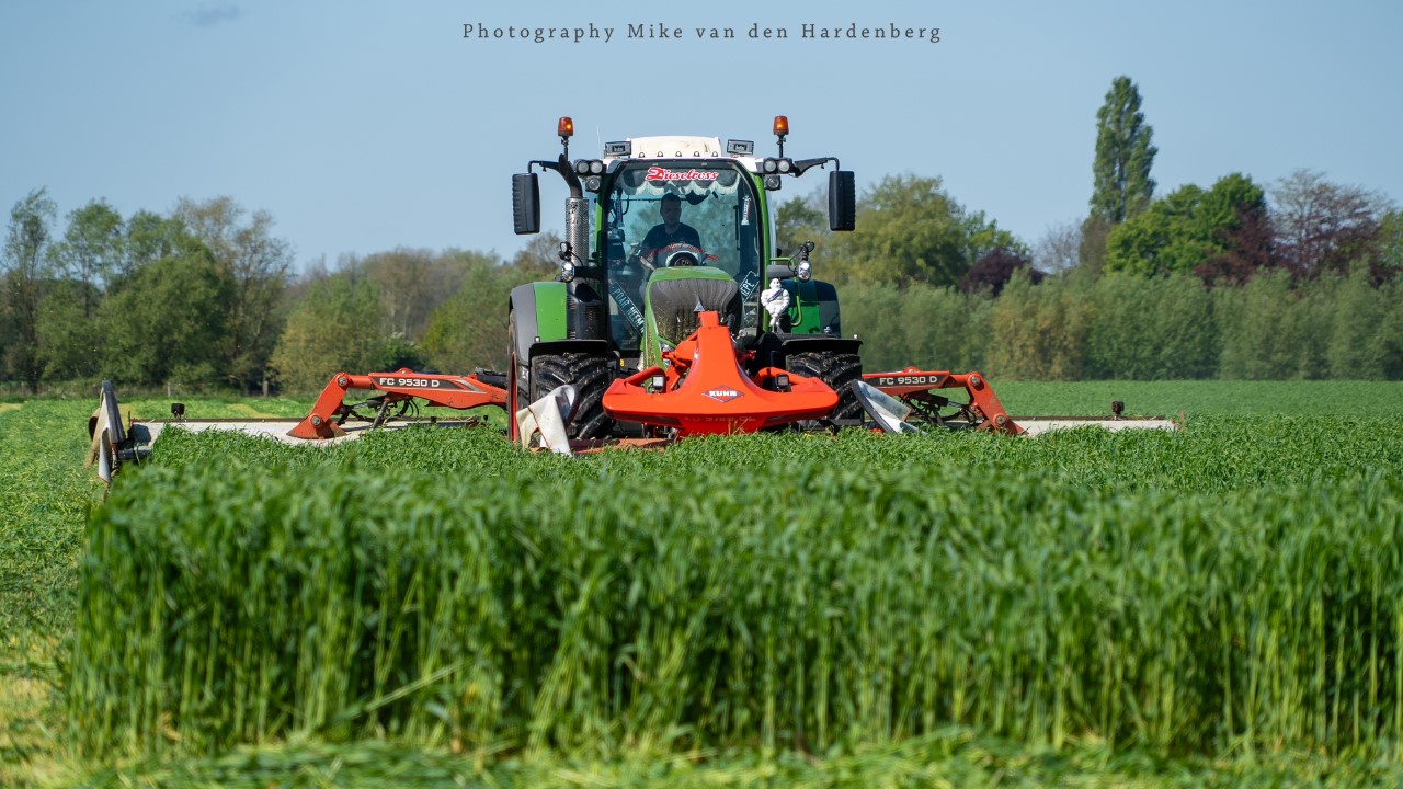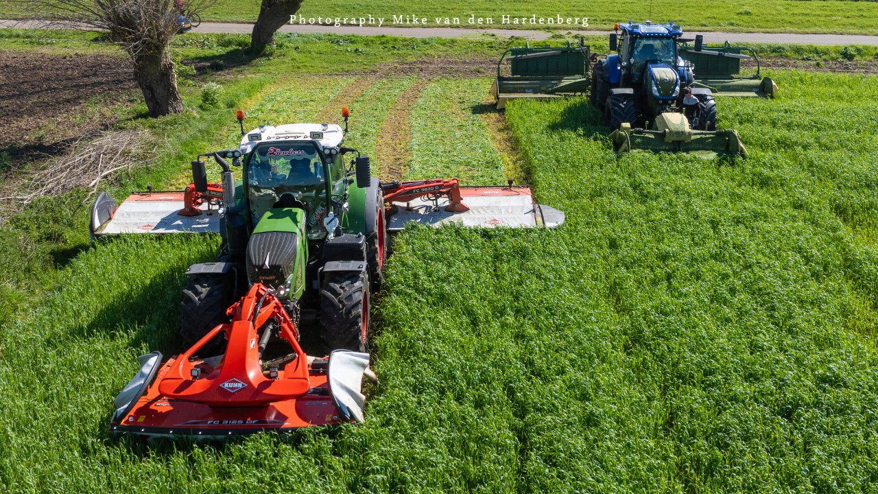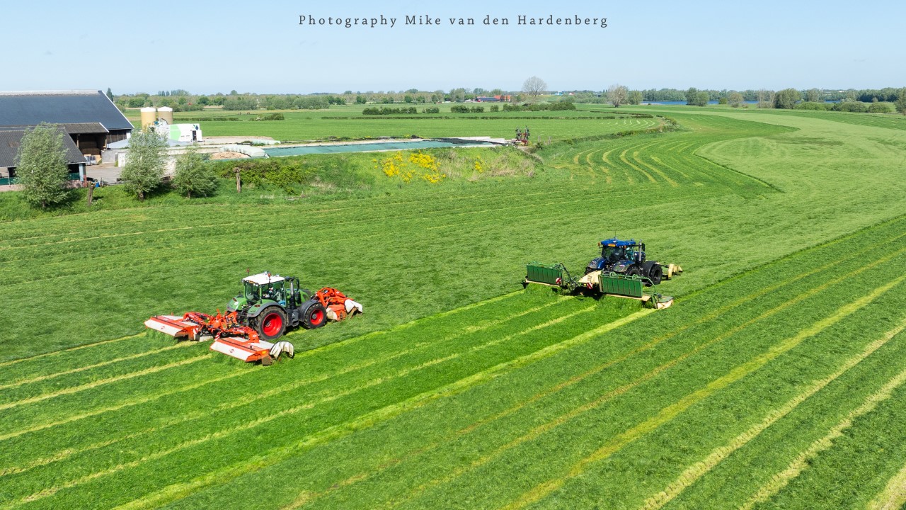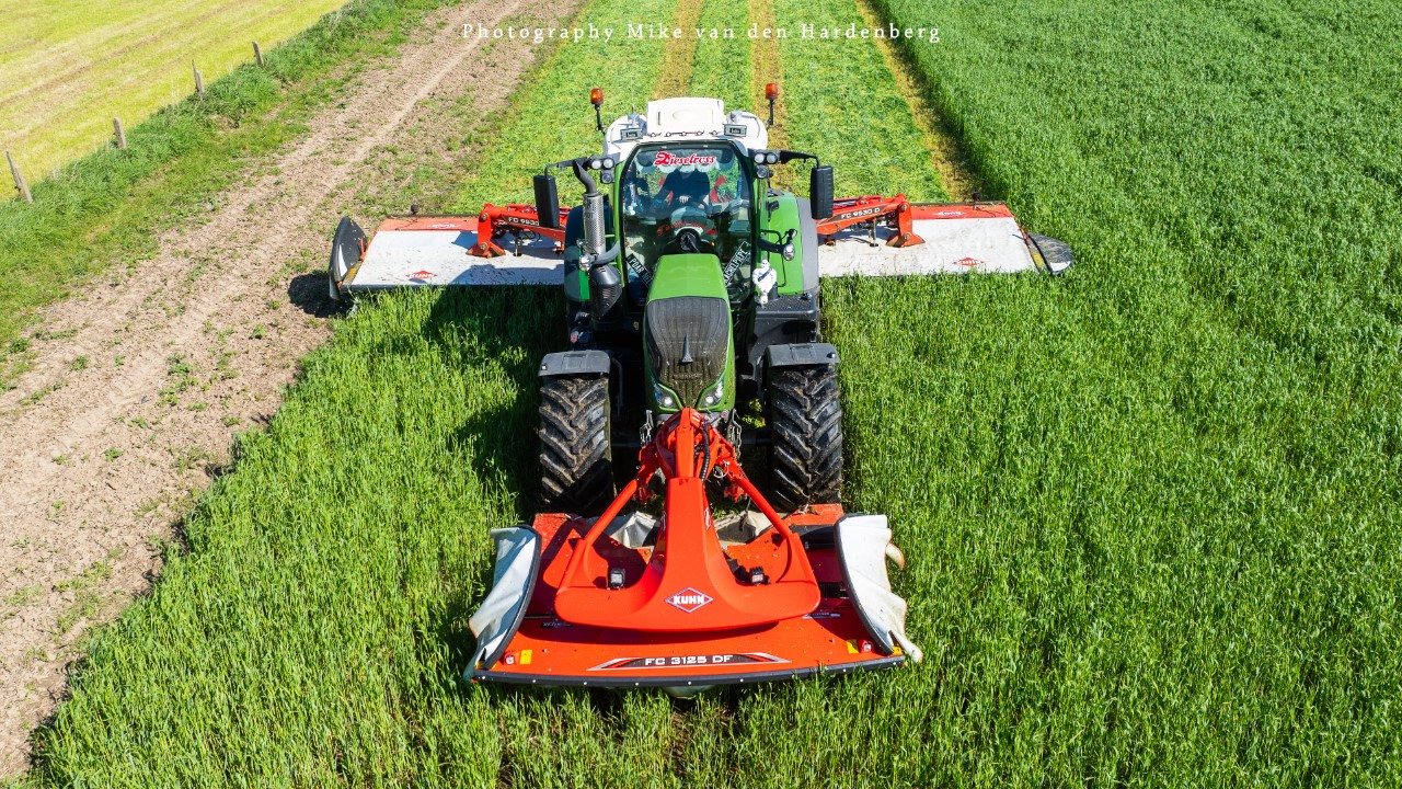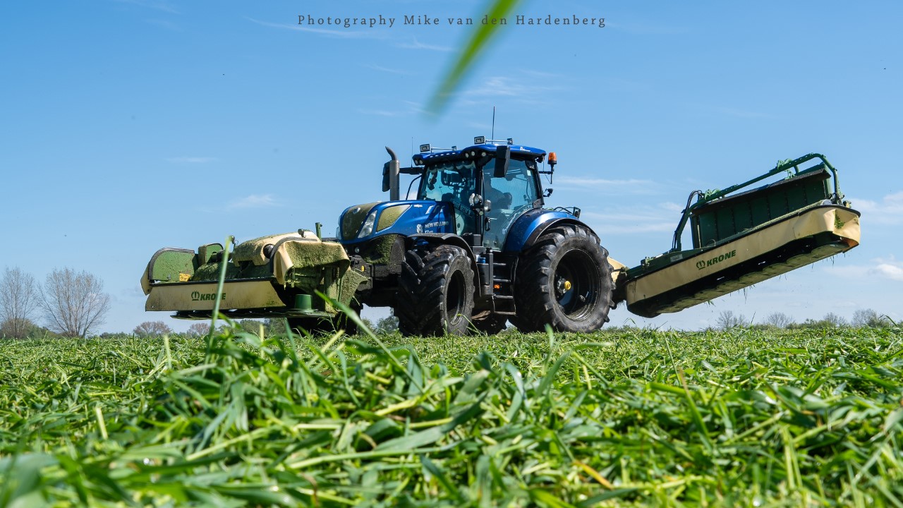 In deze reportage kijk je naar Loonbedrijf Nikkels B.V. uit Teuge die aan het gras/rogge maaien is met twee combinaties. Dit eerste snede wordt gemaaid door een New Holland T7.270 met Krone Triple maaiers en een Fendt 724 Vario met Kuhn Triple maaiers.