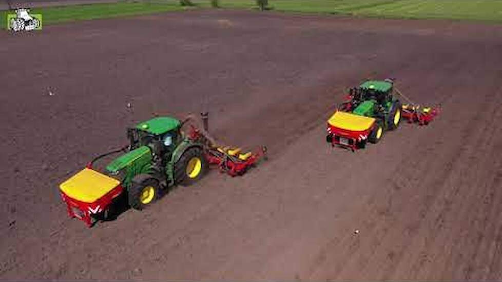 Loonbedrijf Stuut met tweemaal de Väderstad Tempo aan het maïszaaien