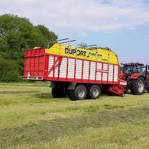 De 25 jaar oude wagen is nog steeds te herkennen door de grote letters van DUPORT die erop staan. Geweldig. Na de demo tour in het jaar 2000 is de eerste opraapwagen verkocht aan Loonbedrijf Gerrit Meester in Tijnje. Daar heeft de wagen 23 jaar gedraaid, tot afgelopen seizoen. Via onze Pöttinger dealer Niens in Vilsteren is de wagen verkocht aan Melkveebedrijf Grondman in Witharen. Daar gaat de wagen de komende seizoenen draaien.