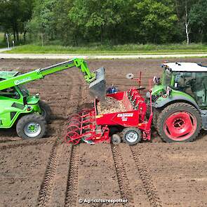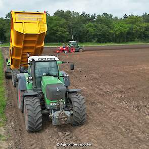 Aardappels poten in Uddel met een Fendt 516 Vario en een Grimme GL 410 pootmachine van loonbedrijf Hans Versteeg uit Uddel.