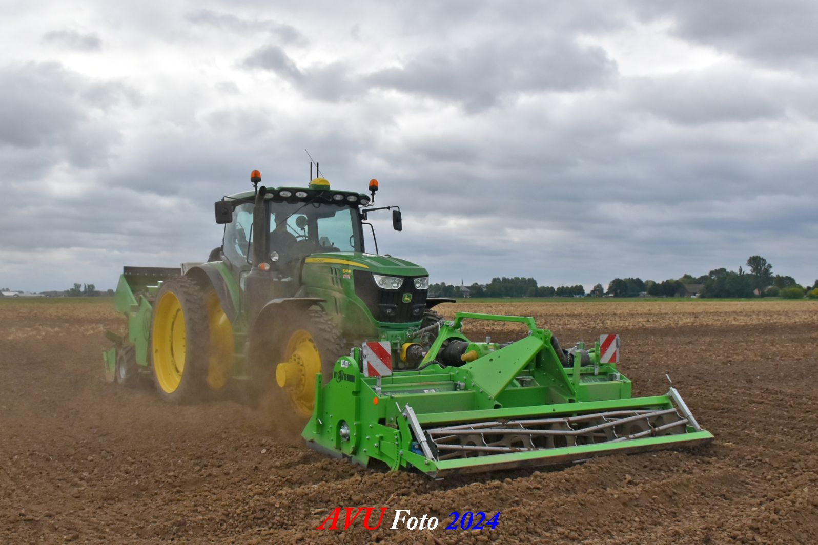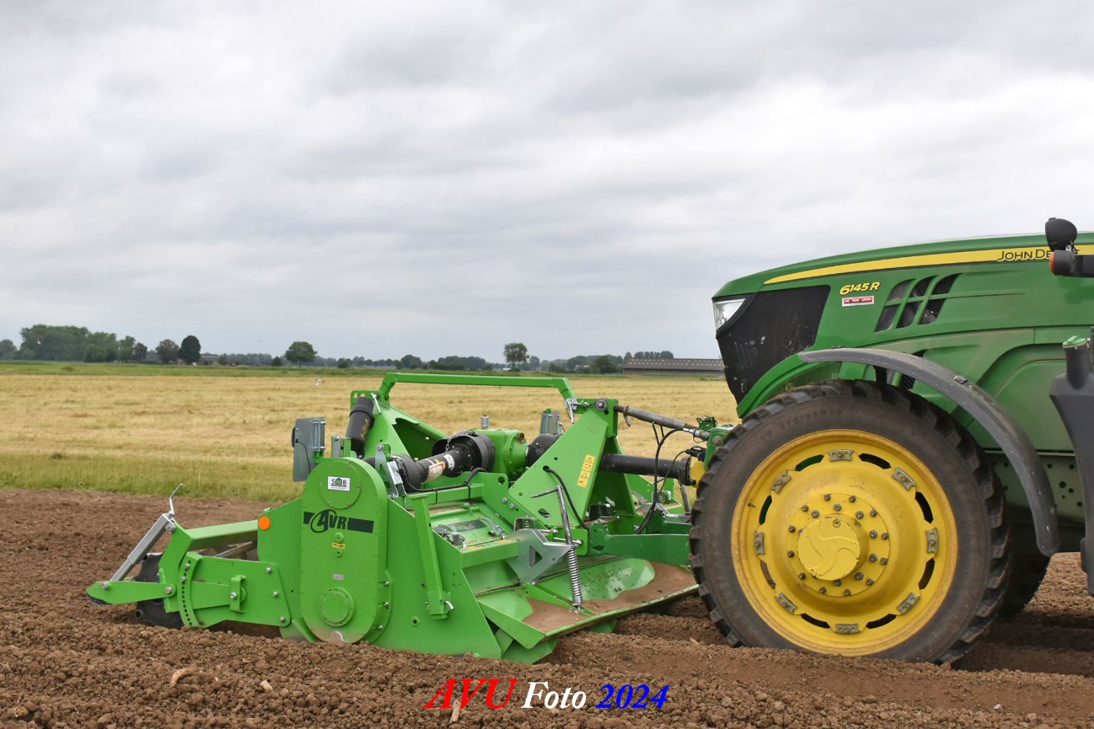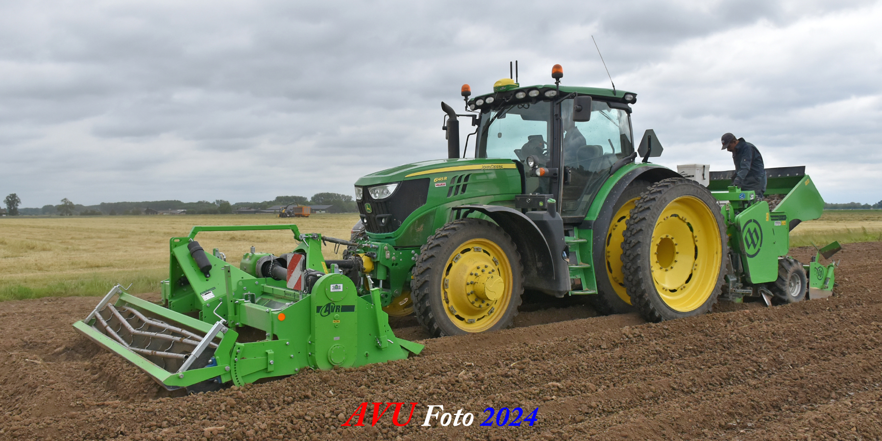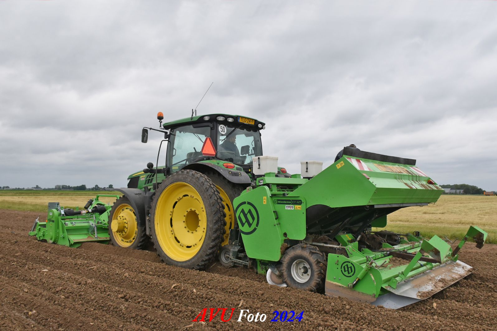 En ook zijn dit niet de laatste in het Land van Heusden en Altena. Hierbij is de John Deere 6145R met de AVR in de front en Miedema achterop nog lekker bezig, ’n mooie groene combinatie toch.