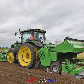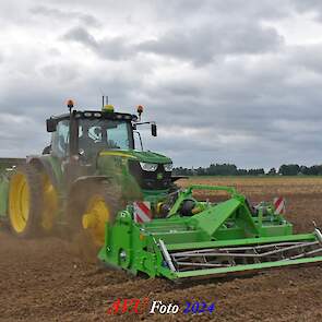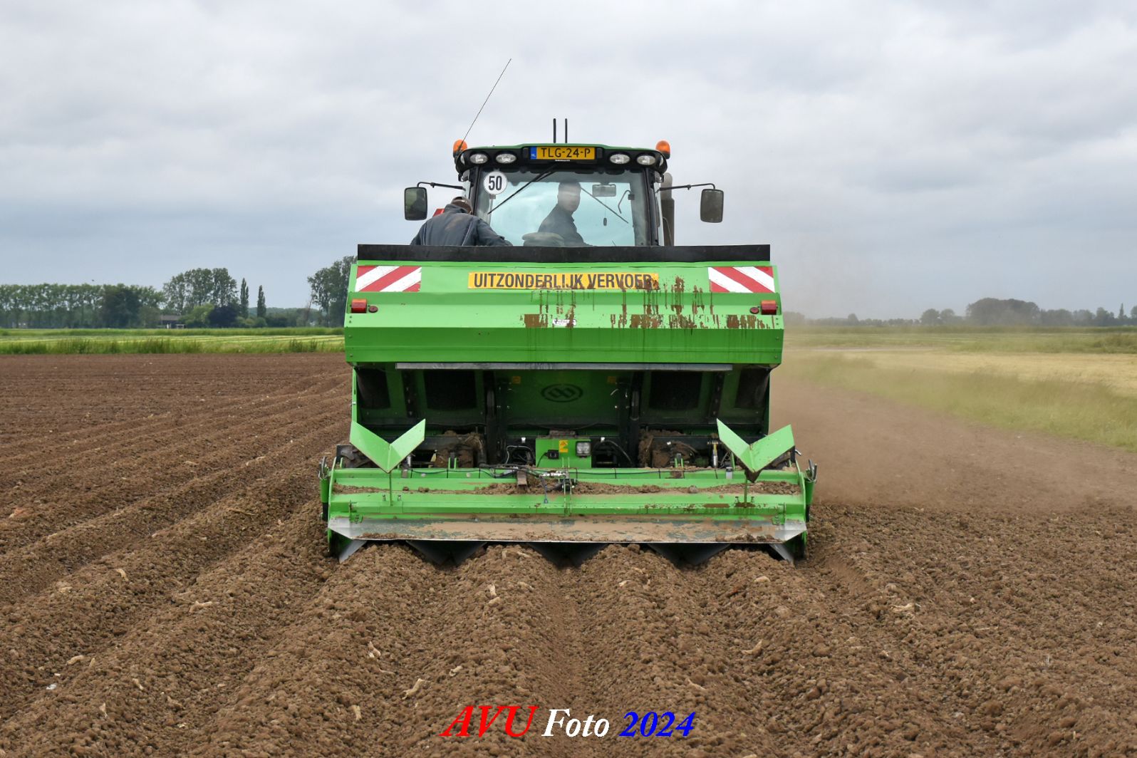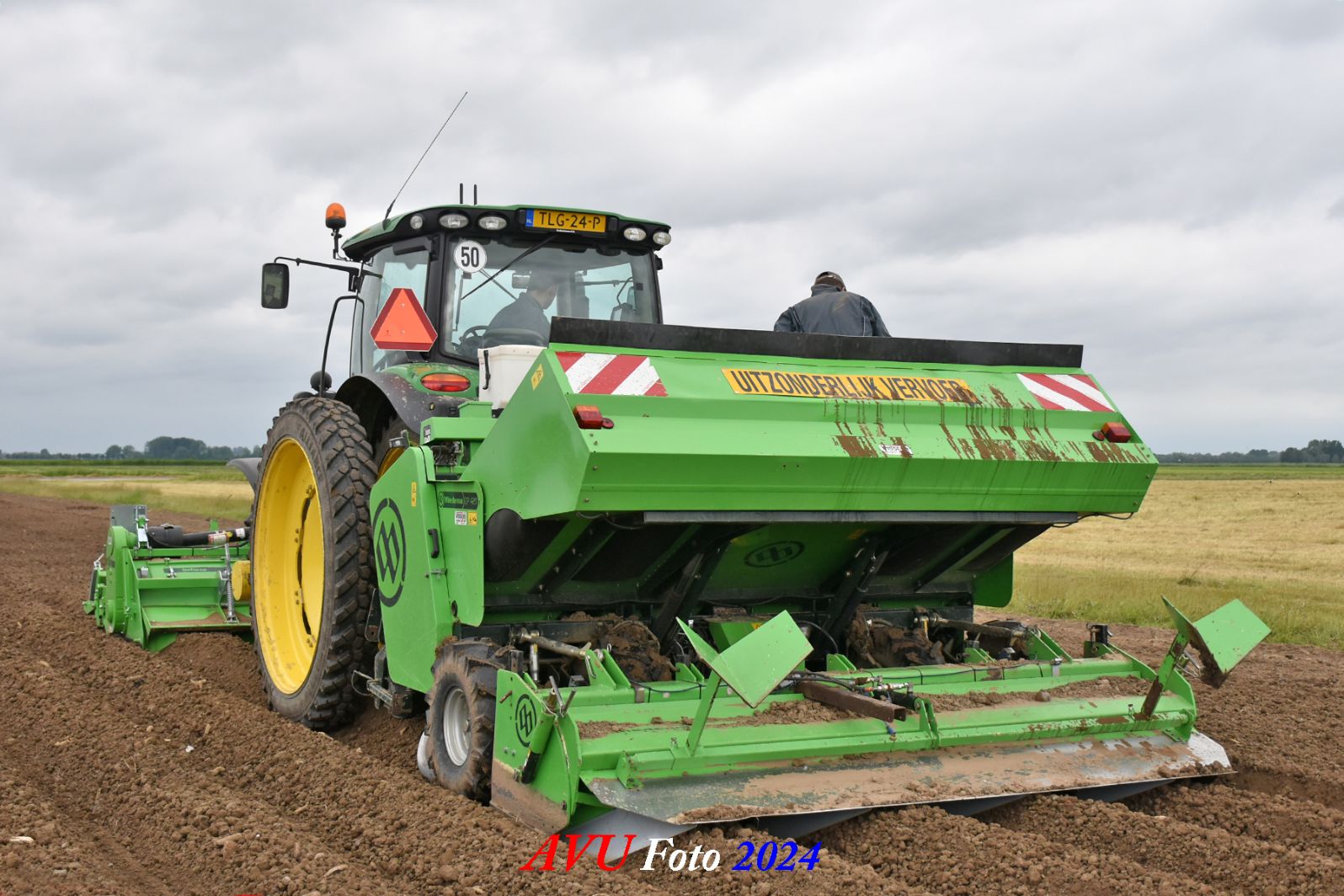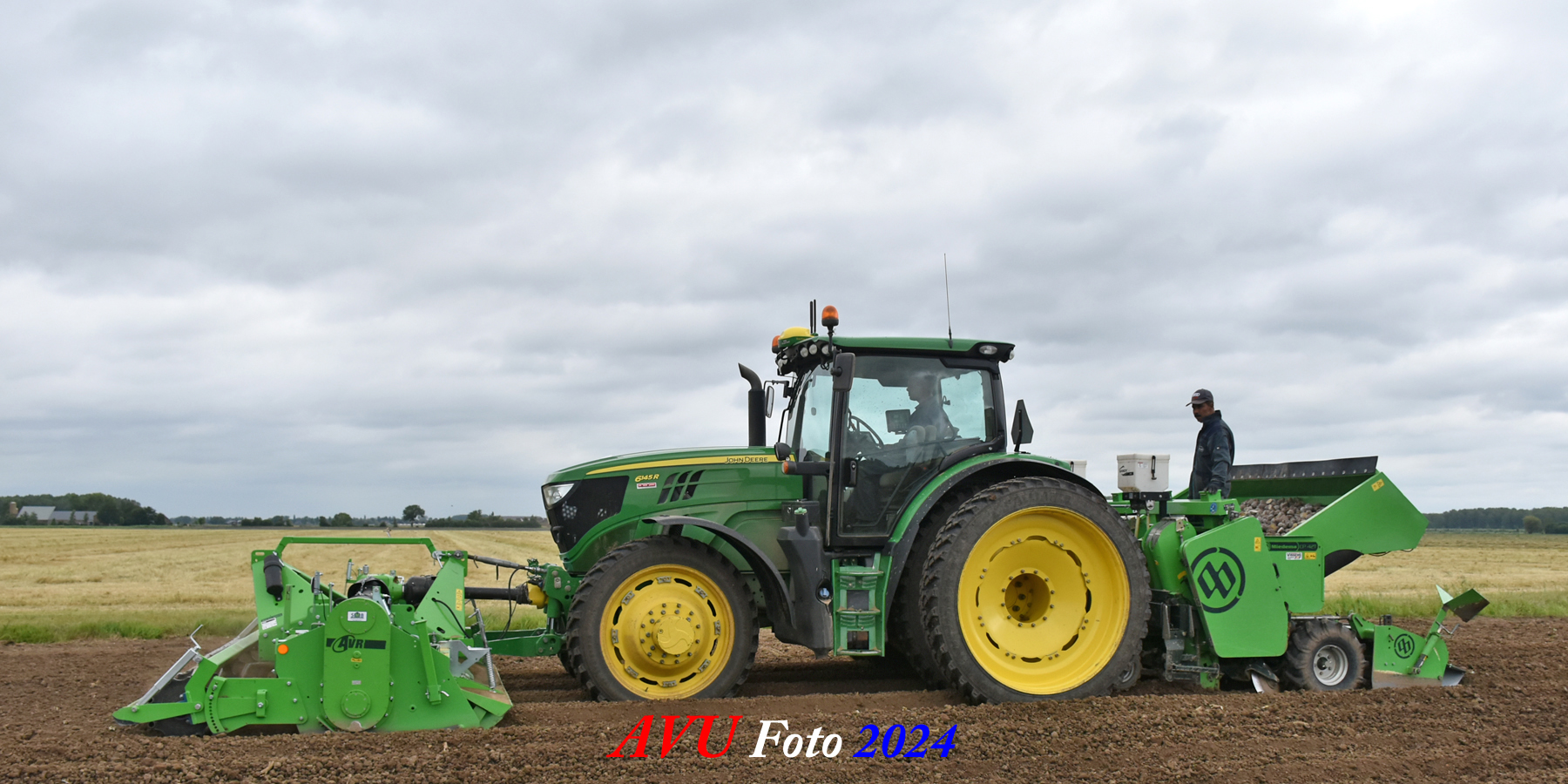 En ook zijn dit niet de laatste in het Land van Heusden en Altena. Hierbij is de John Deere 6145R met de AVR in de front en Miedema achterop nog lekker bezig, ’n mooie groene combinatie toch.