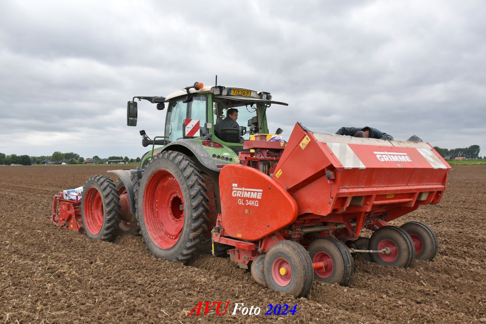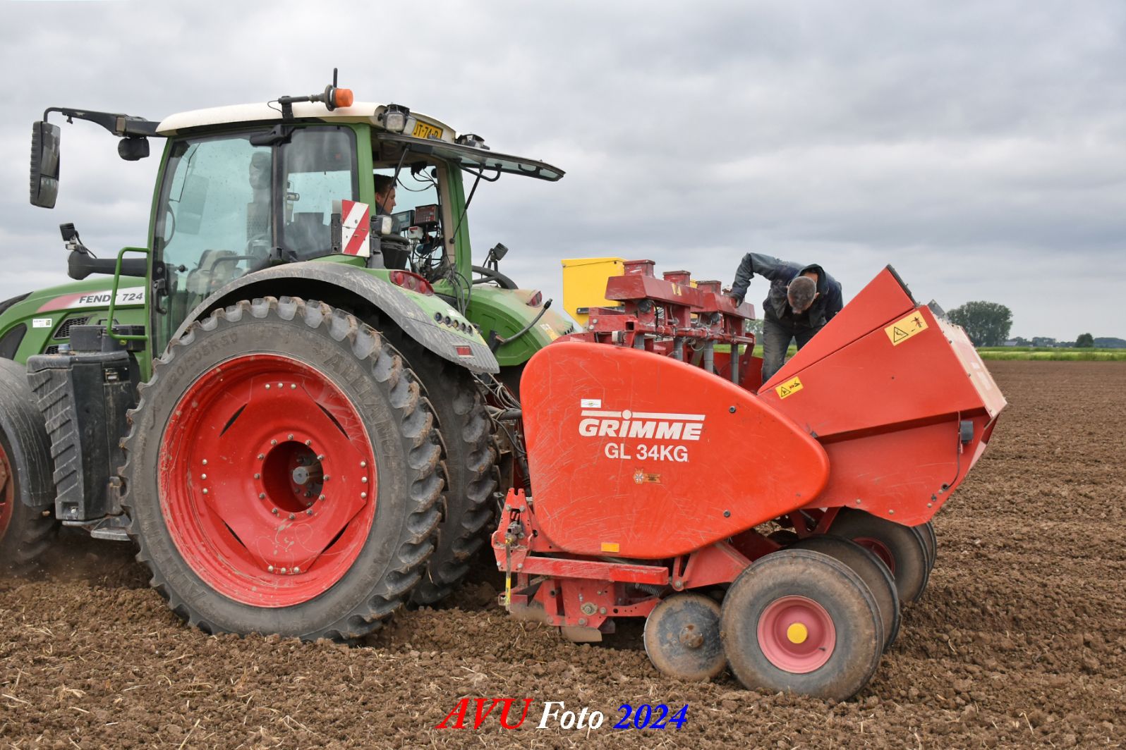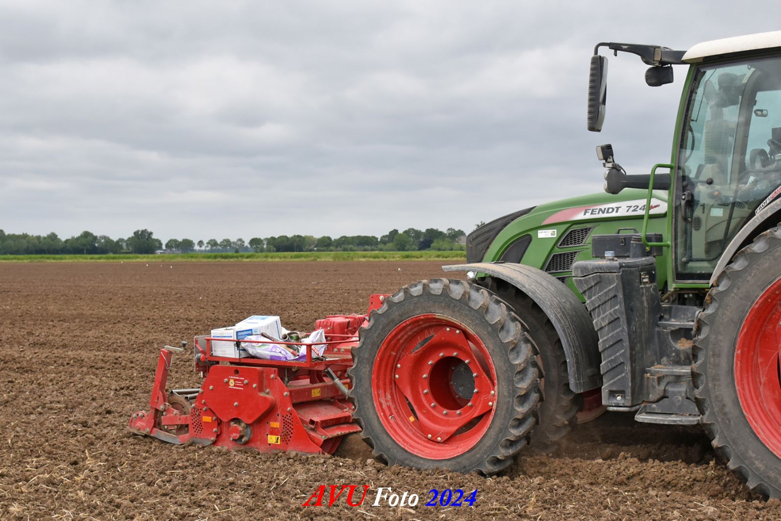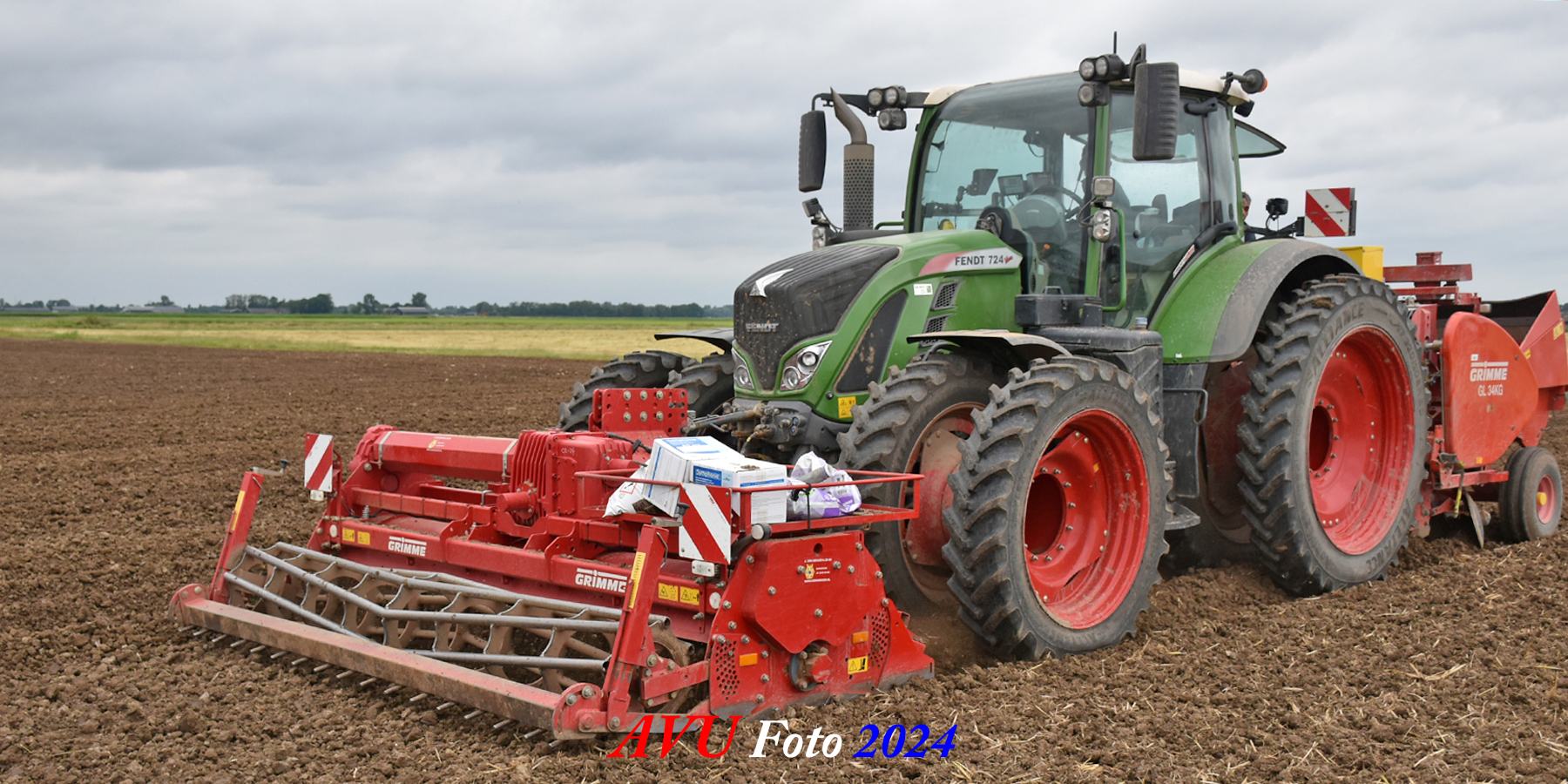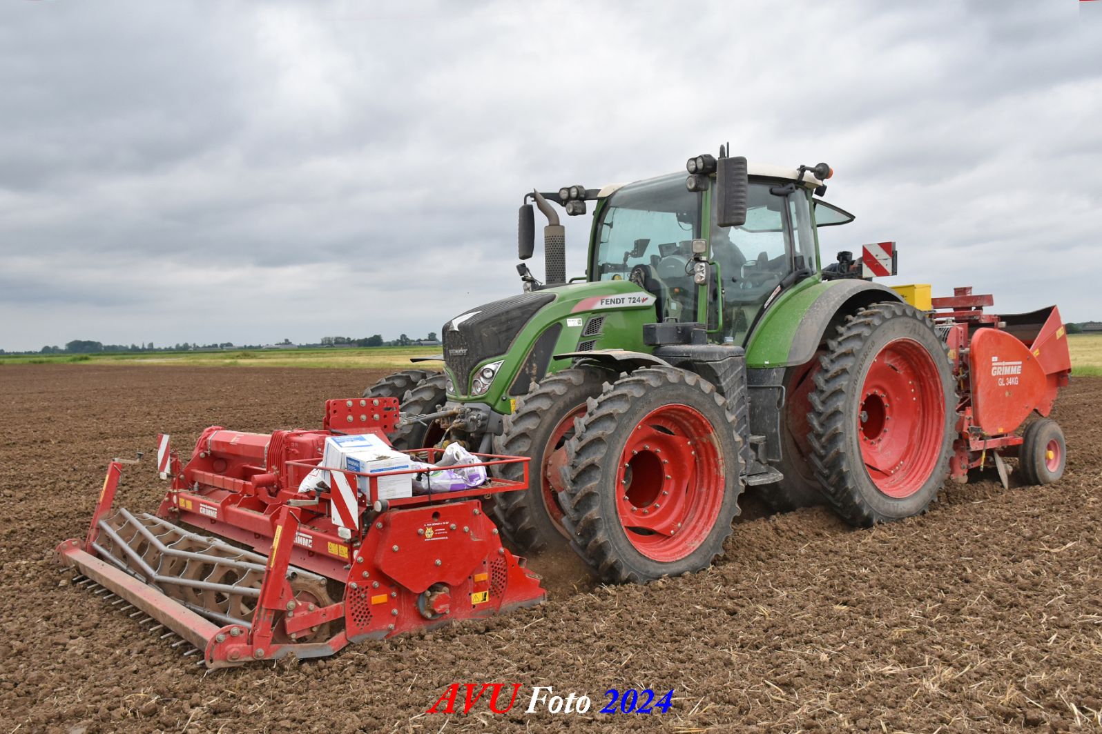 Deze Fendt 724 met Grimme front en Grimme GL 34 KG planter achterop kon mooi werk maken op dit voorbewerkte perceel, het weer zat enkele dagen mee, de laatste percelen.