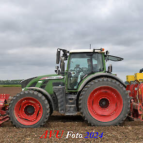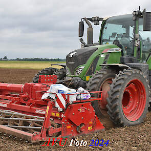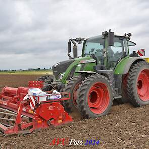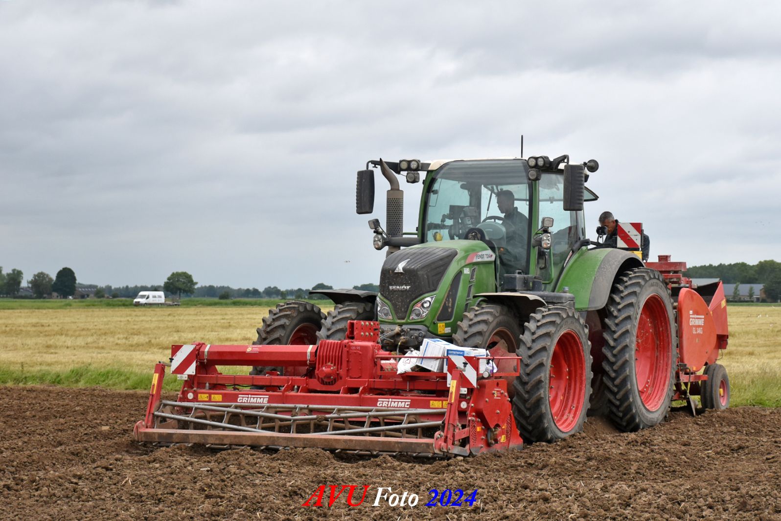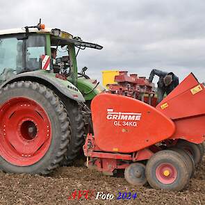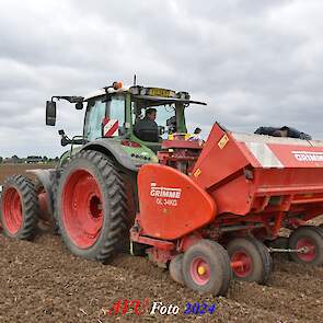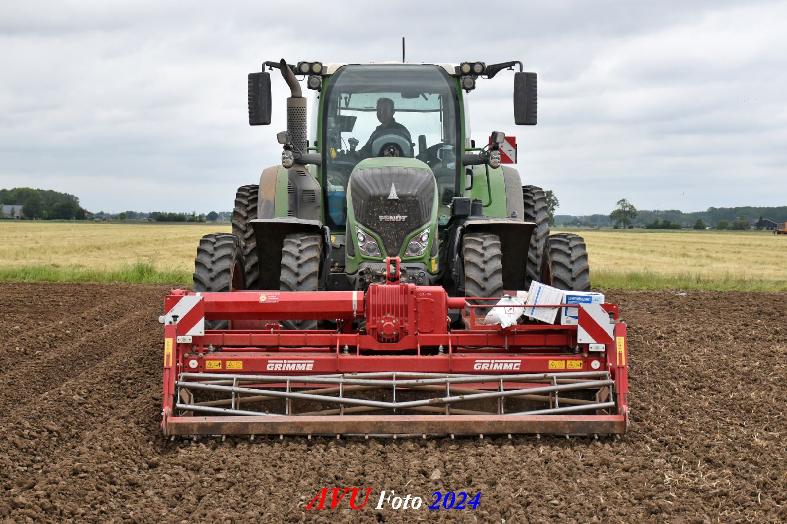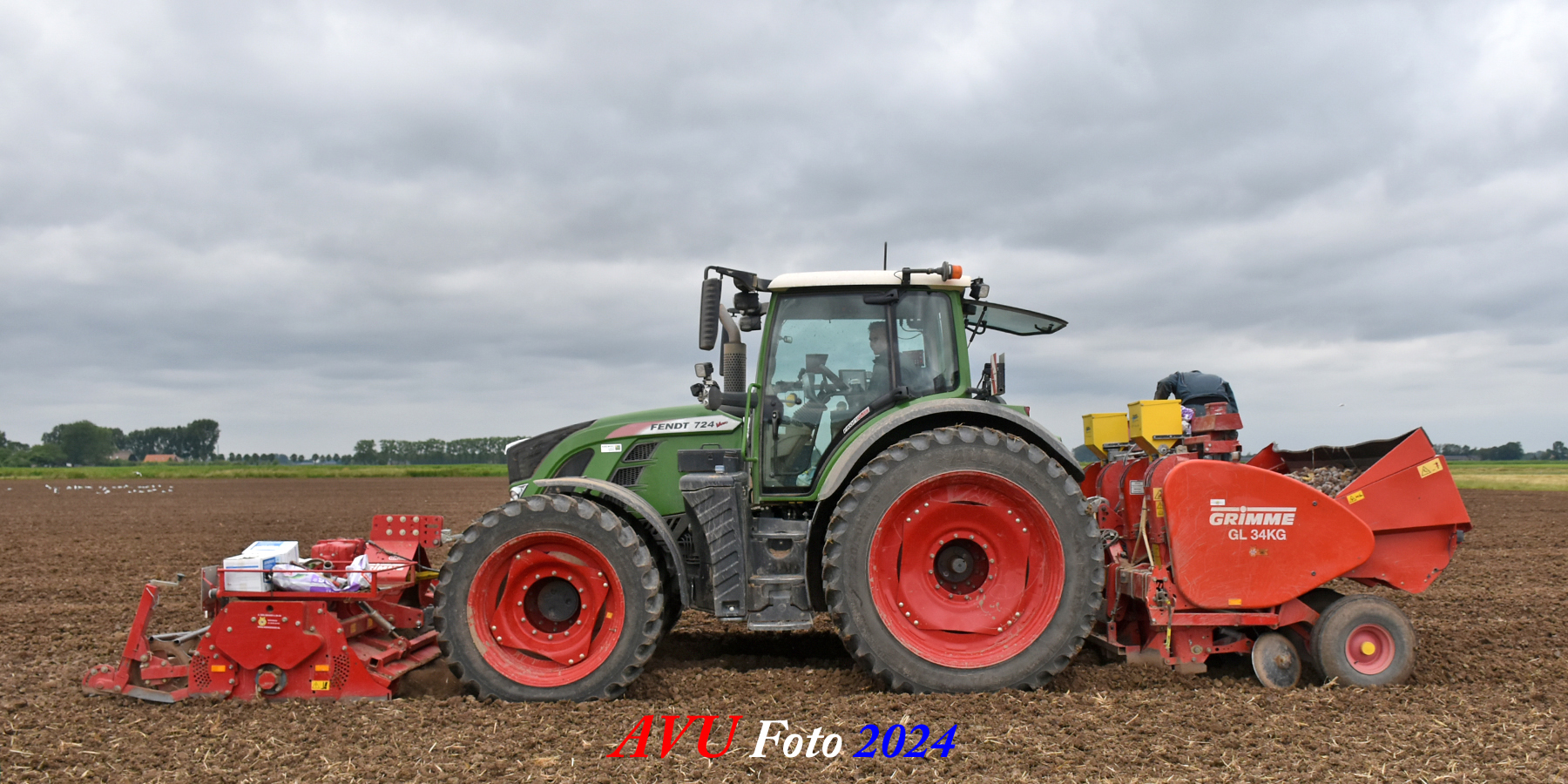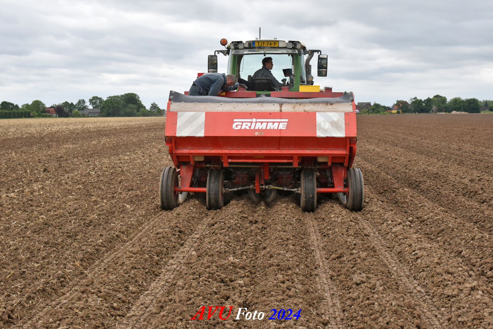 Deze Fendt 724 met Grimme front en Grimme GL 34 KG planter achterop kon mooi werk maken op dit voorbewerkte perceel, het weer zat enkele dagen mee, de laatste percelen.