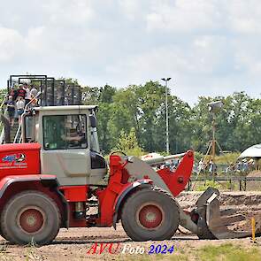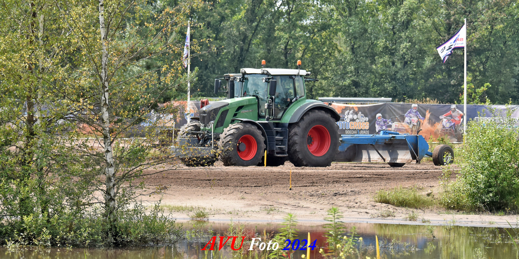 Deze Fendt 826 met kilverbord prepareerde het motorcrossterrein samen met de loader voor de volgende quad- en zijspanmanches.