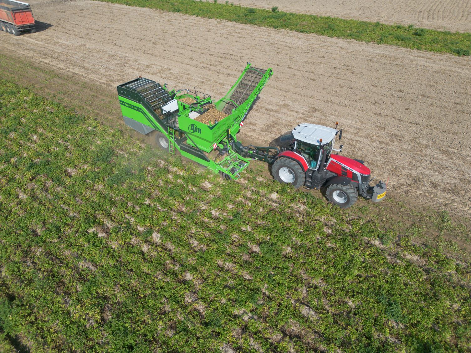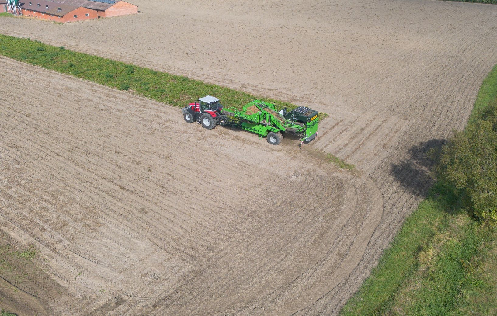 Bovenaan de machine kunnen nog drie rijen toegevoegd worden. Onder de loofmat bevindt zich een gesloten transportband die het loof afvoert en aardappelen die eventueel laat vallen doet terugrollen in de machine.