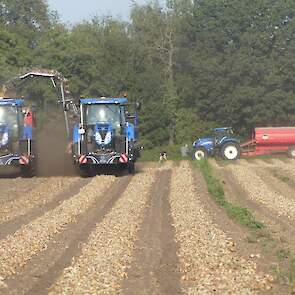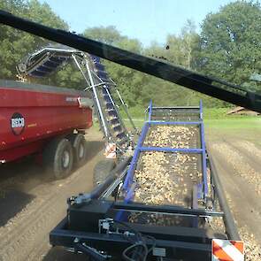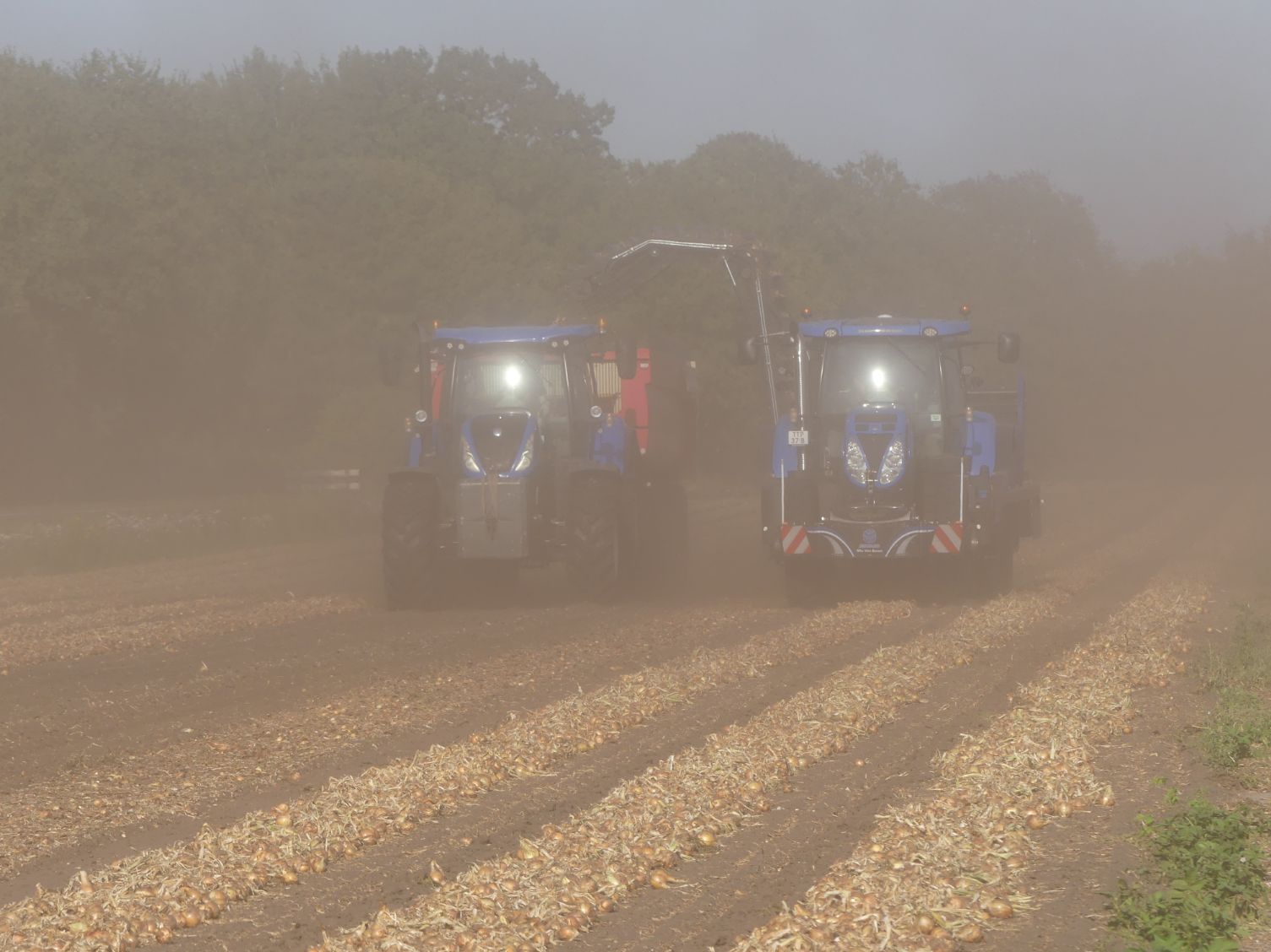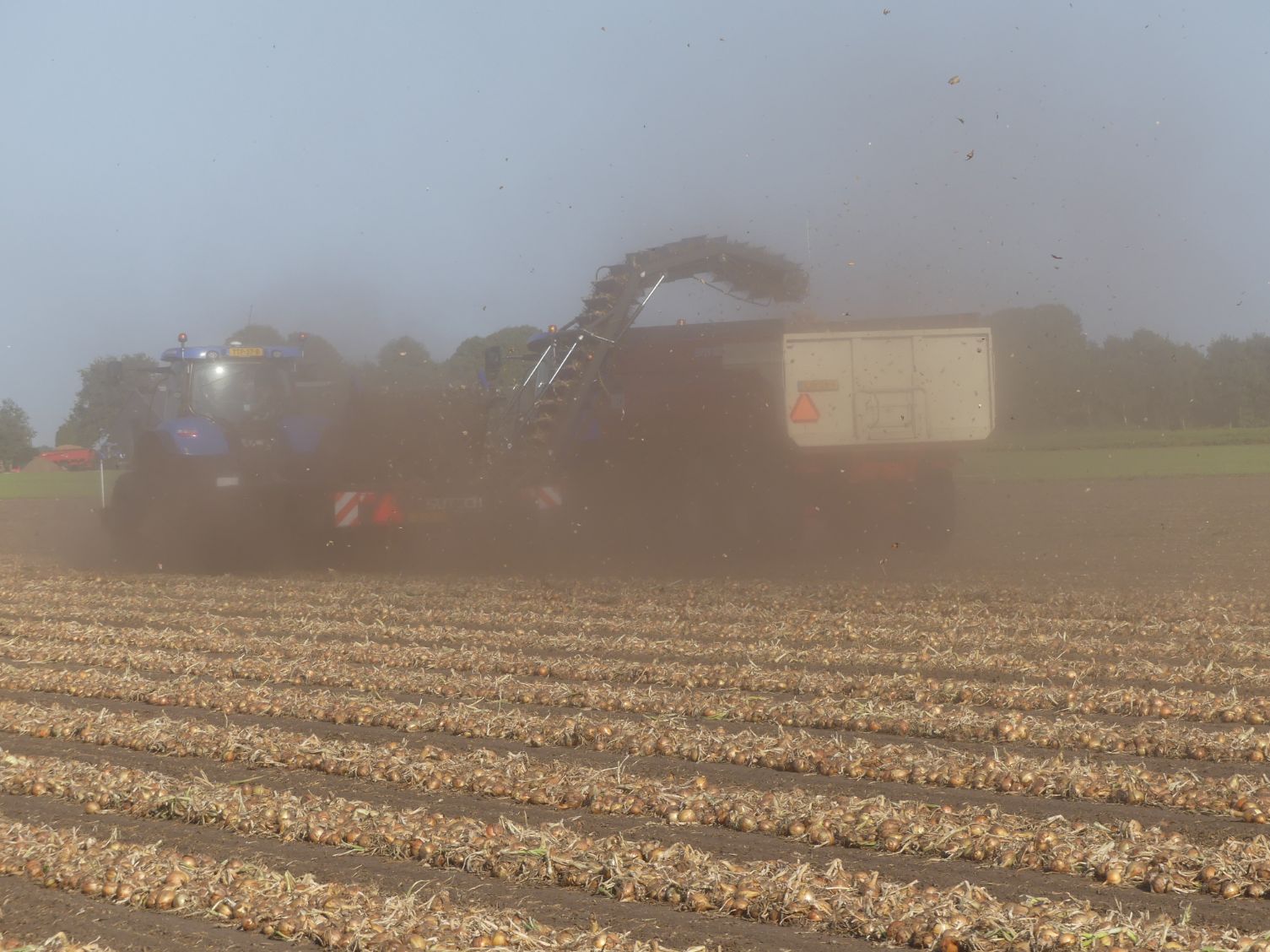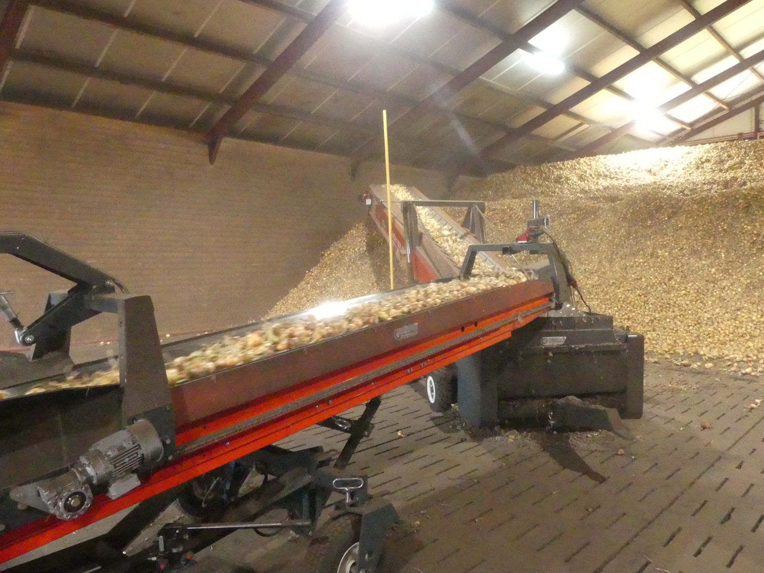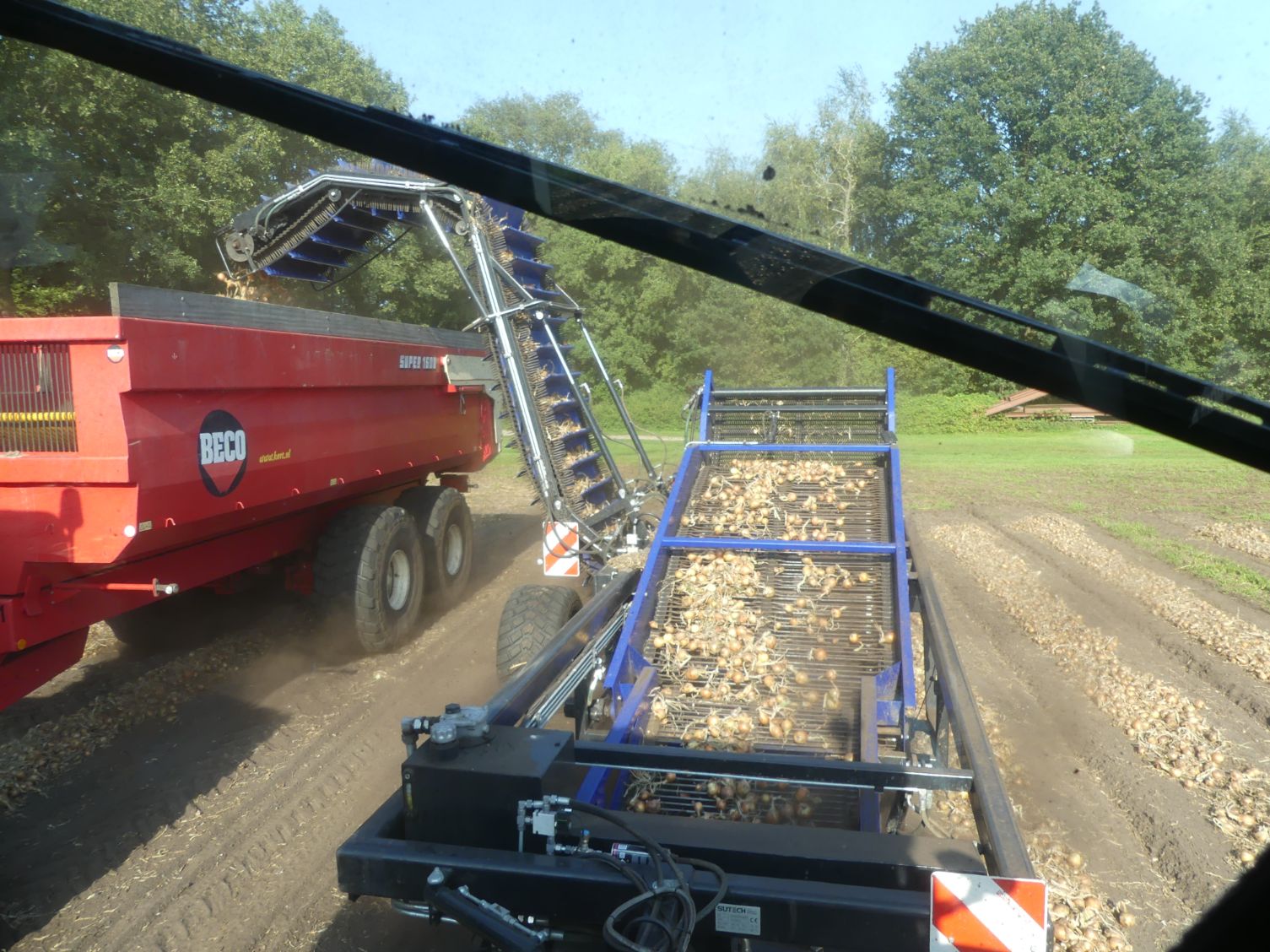 MTS van Boven, akkerbouw en pluimvee uit Erica, aan het uien laden en inschuren met de Su-Tech-uienlader.