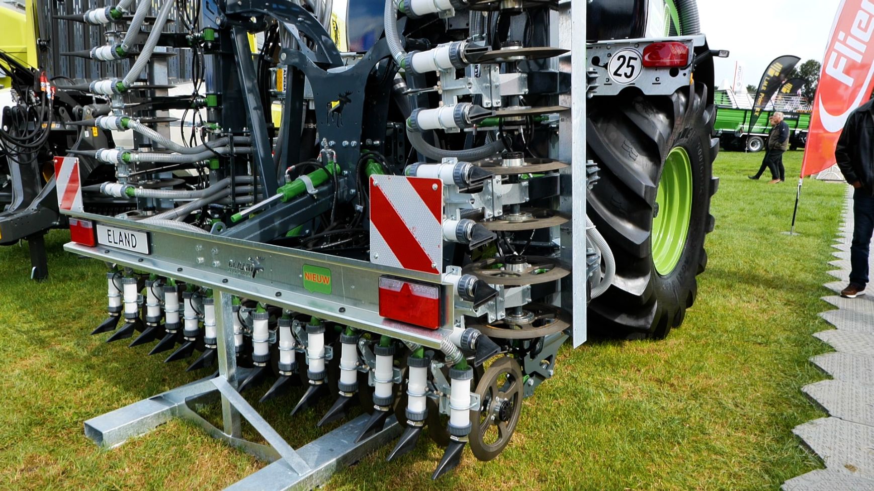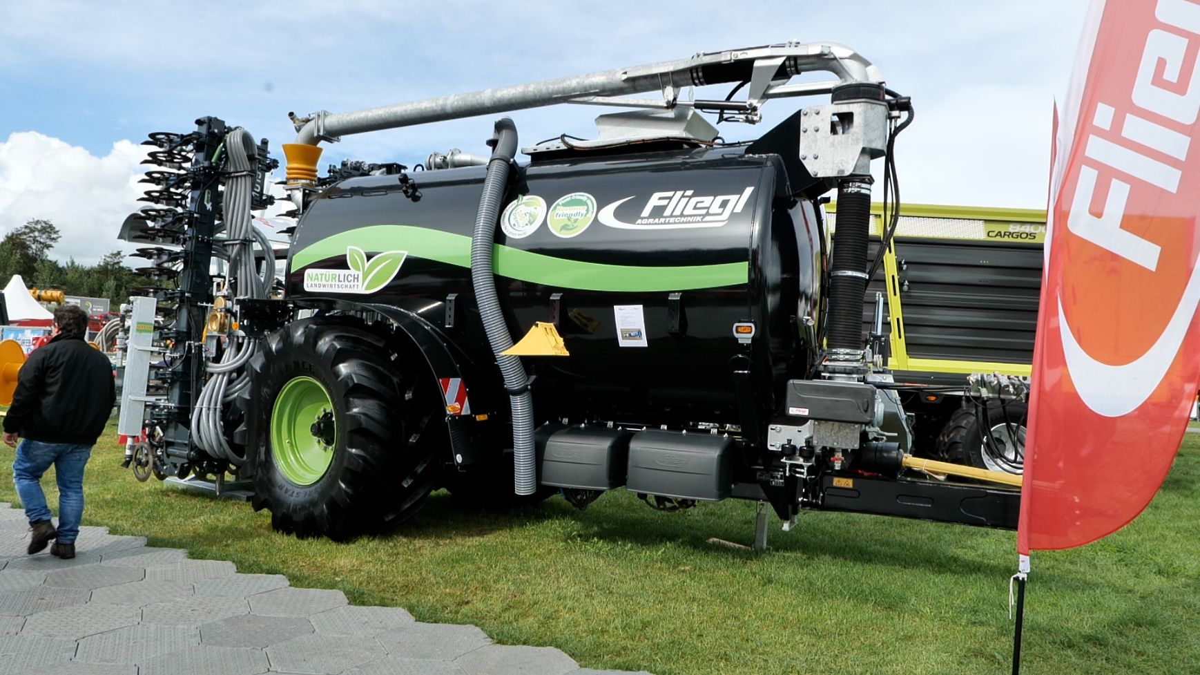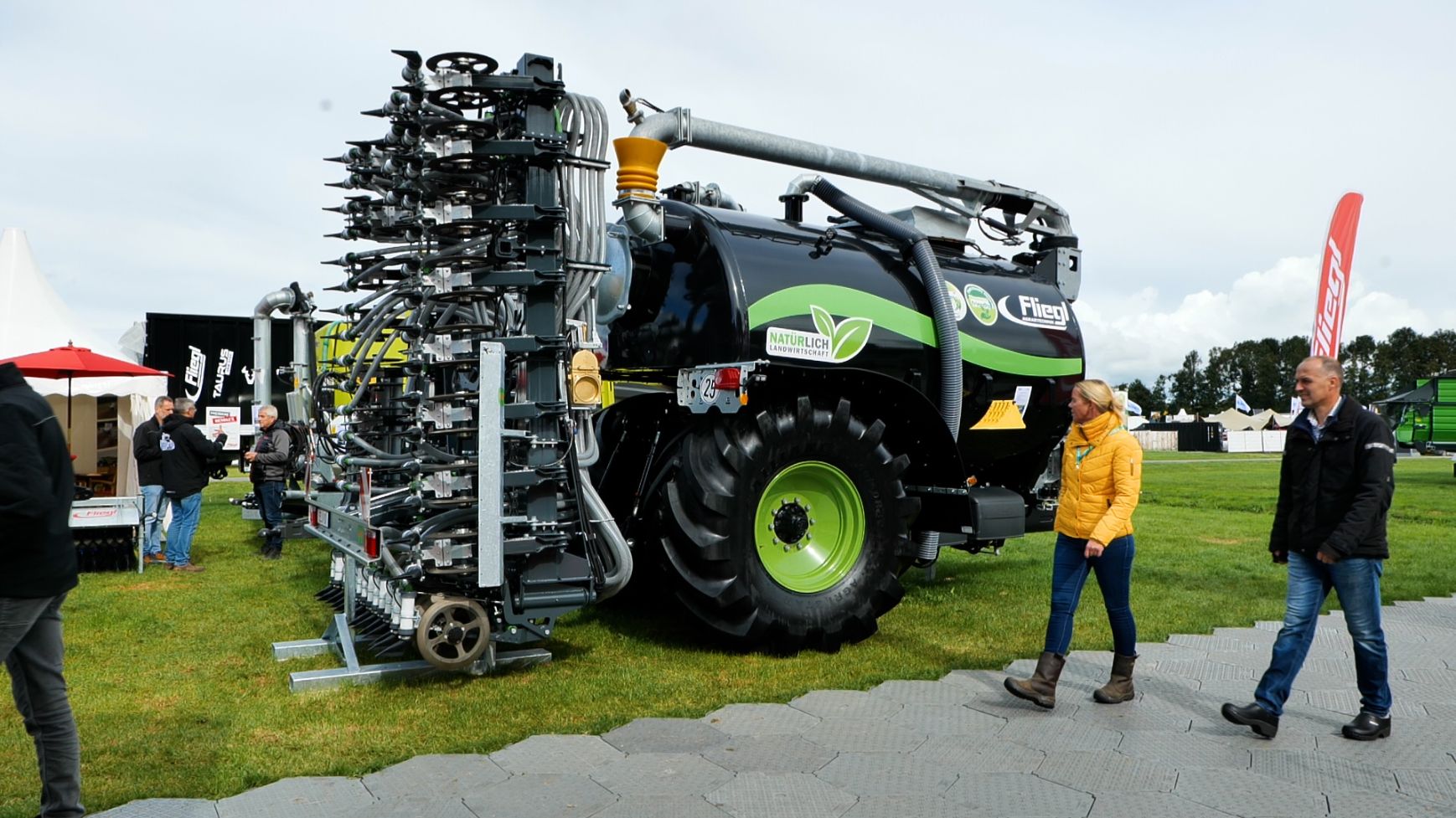 - De Fliegl-mesttank Twist-Line, een tank van 13 m³ die in hondegang rijdt en loopt tussen het spoor van de trekker. Dit wordt bereikt door de as via twee cilinders te zwenken. De 4-punts hefinrichting is bevestigd aan de as, waardoor de bemester perfect volgt achter de tank.