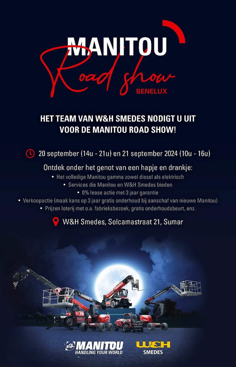 Scherpe acties en lease tarieven op het complete Manitou-gamma. Kom onder het genot van een hapje en een drankje het complete gamma bekijken en maak ook nog kans op leuk prijsjes.