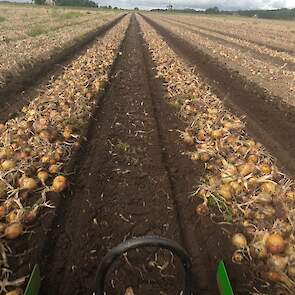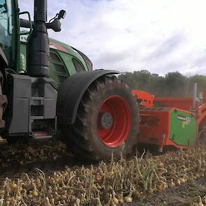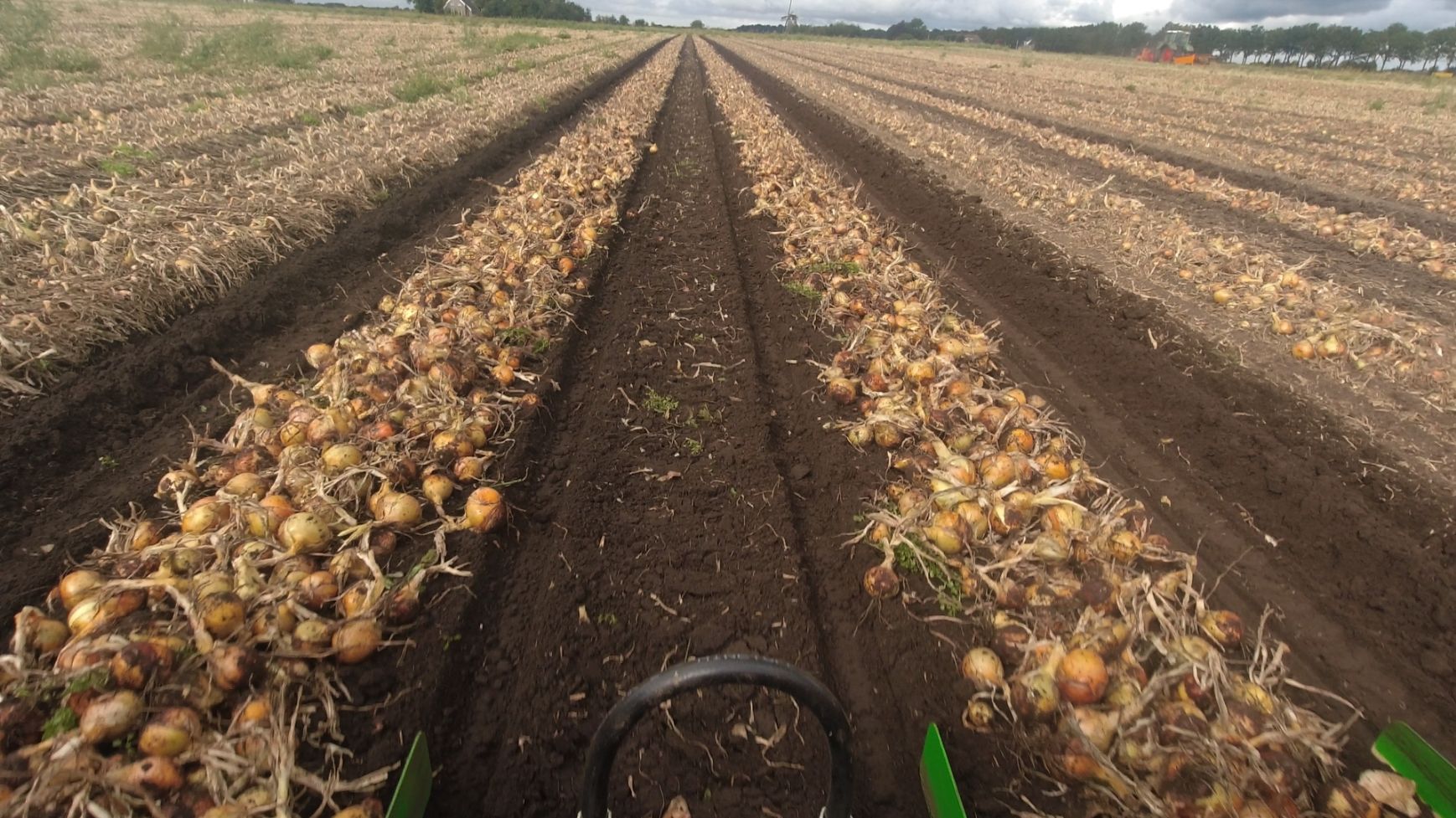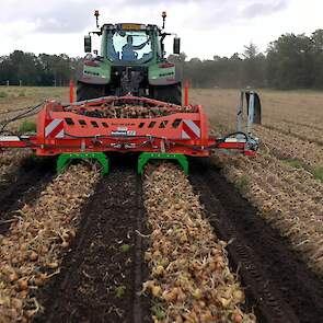Landbouwbedrijf Berg uit Sappemeer kan met hun nieuwe Holaras-rooimachine twee zwaden neer leggen. Zo drogen de uien sneller en kunnen ze de uien opladen met de zelfrijdende AVR Puma met twee zwaden tegelijk.
