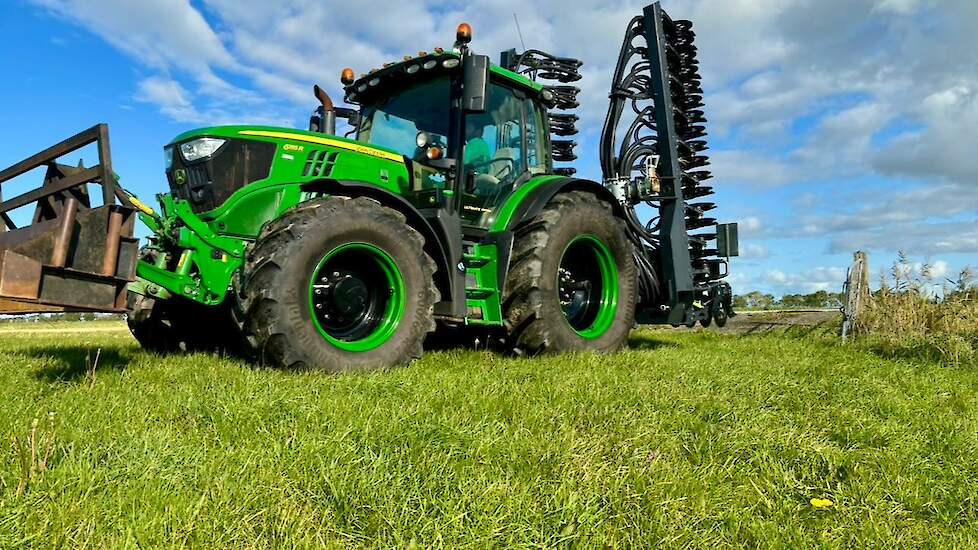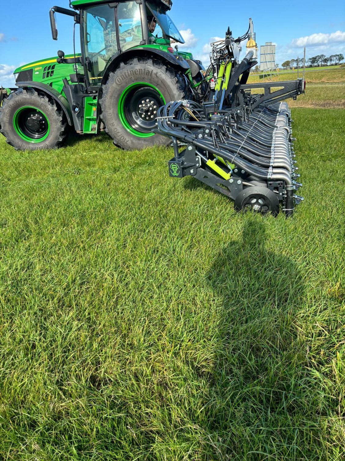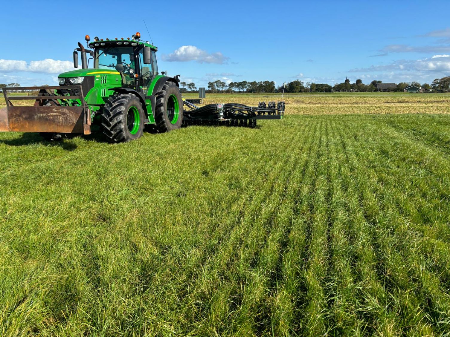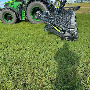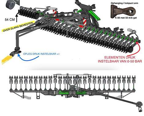 De bemester op deze foto’s/ film is de 10 m uitvoering. Zeer interessant voor mensen die de 12-15 m te zwaar of te duur vinden. 10 m in drie delen (dus geen extra klapping) blijft binnen de 3 m breedte en 4 m hoogte met nog steeds 25 cm bodemvrijheid. Met de zwaarste schijven blijft hij onder de 3 ton