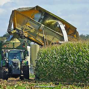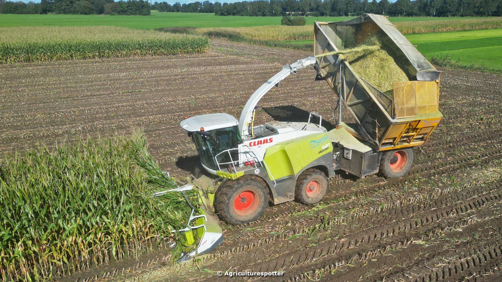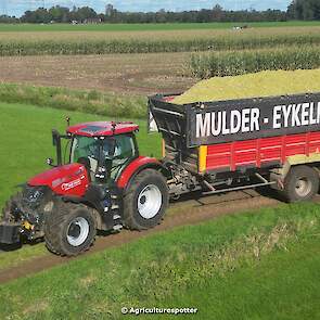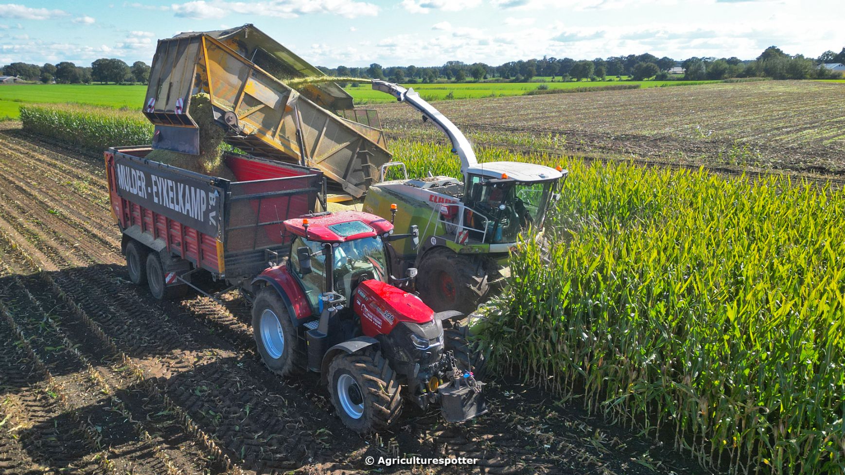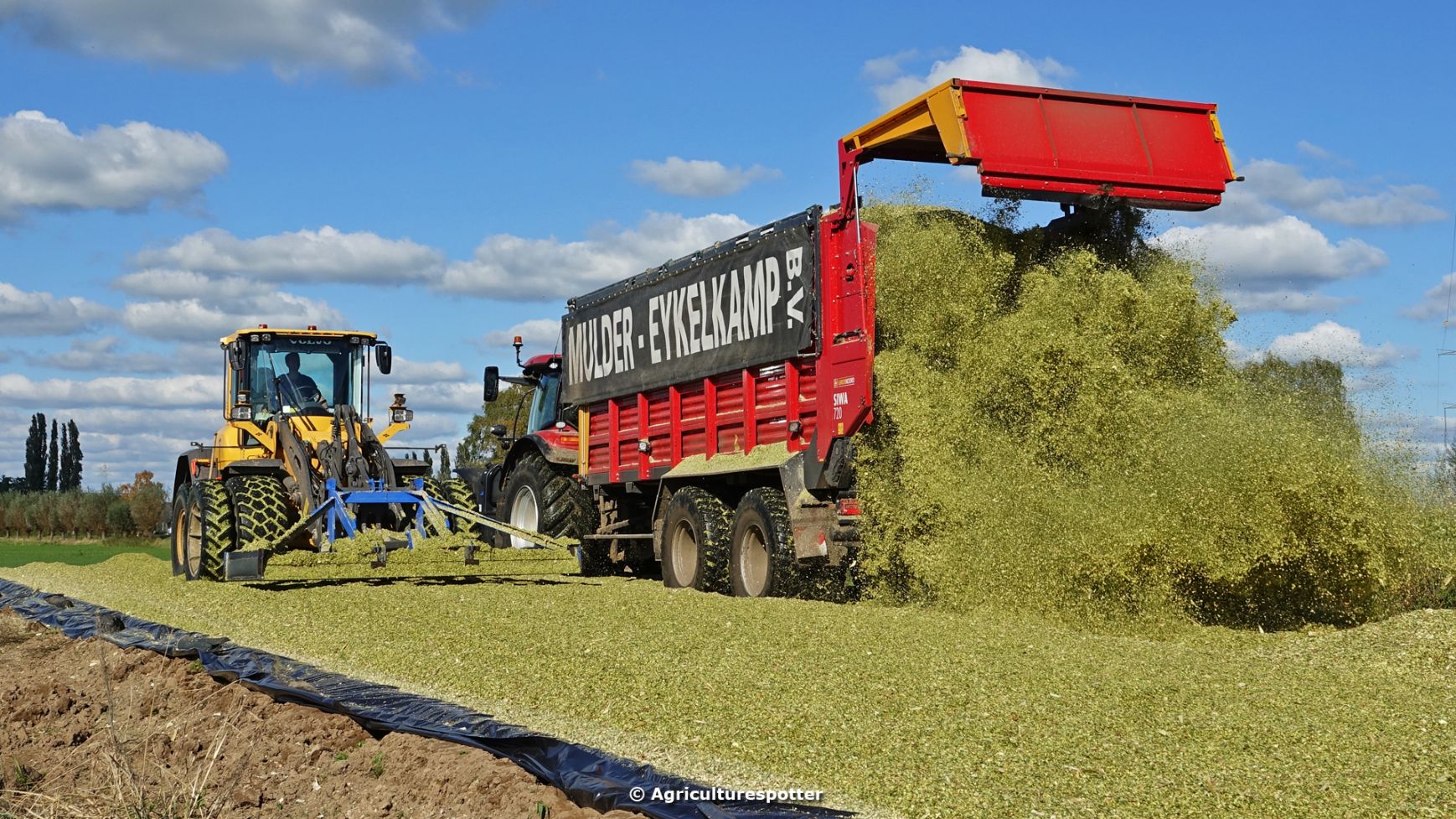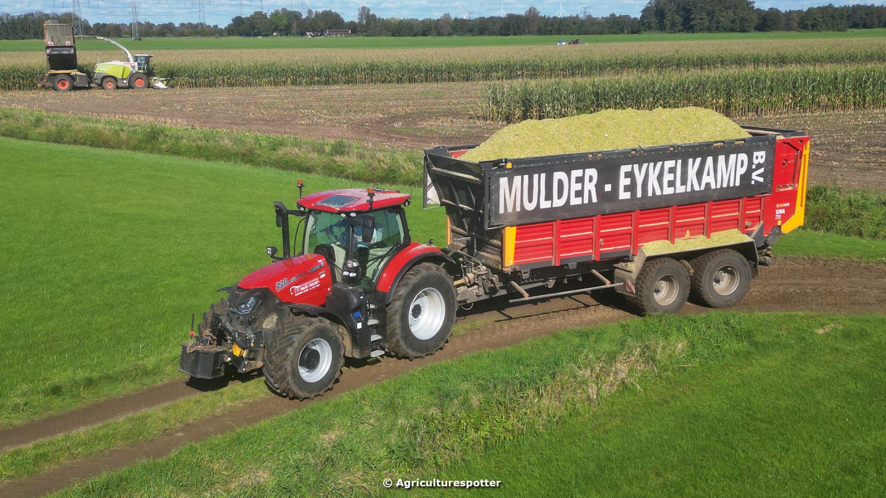 Maïs hakselen in Dalfsen met een Claas Jaguar 940-bunkerhakselaar van loonbedrijf Mulder-Eykelkamp BV uit Zwolle. Het transport werd gedaan met een Case IH Puma 220 AFS met een Schuitemaker Siwa 720-silagewagen en een Fendt 716 Vario met een Joskin Silospace. De kuil werd aangereden met een Volvo L60H en een New Holland T6070 met een Holaras-kuilverdichtingswals.