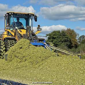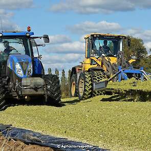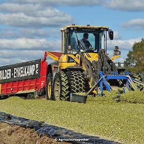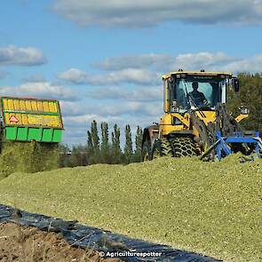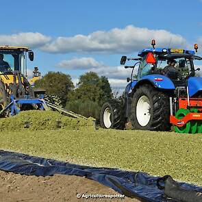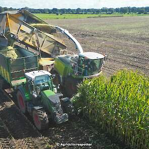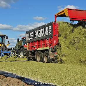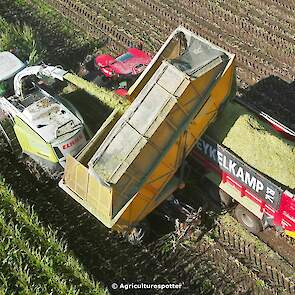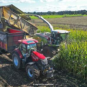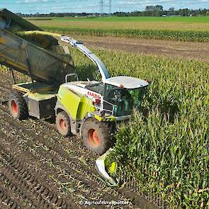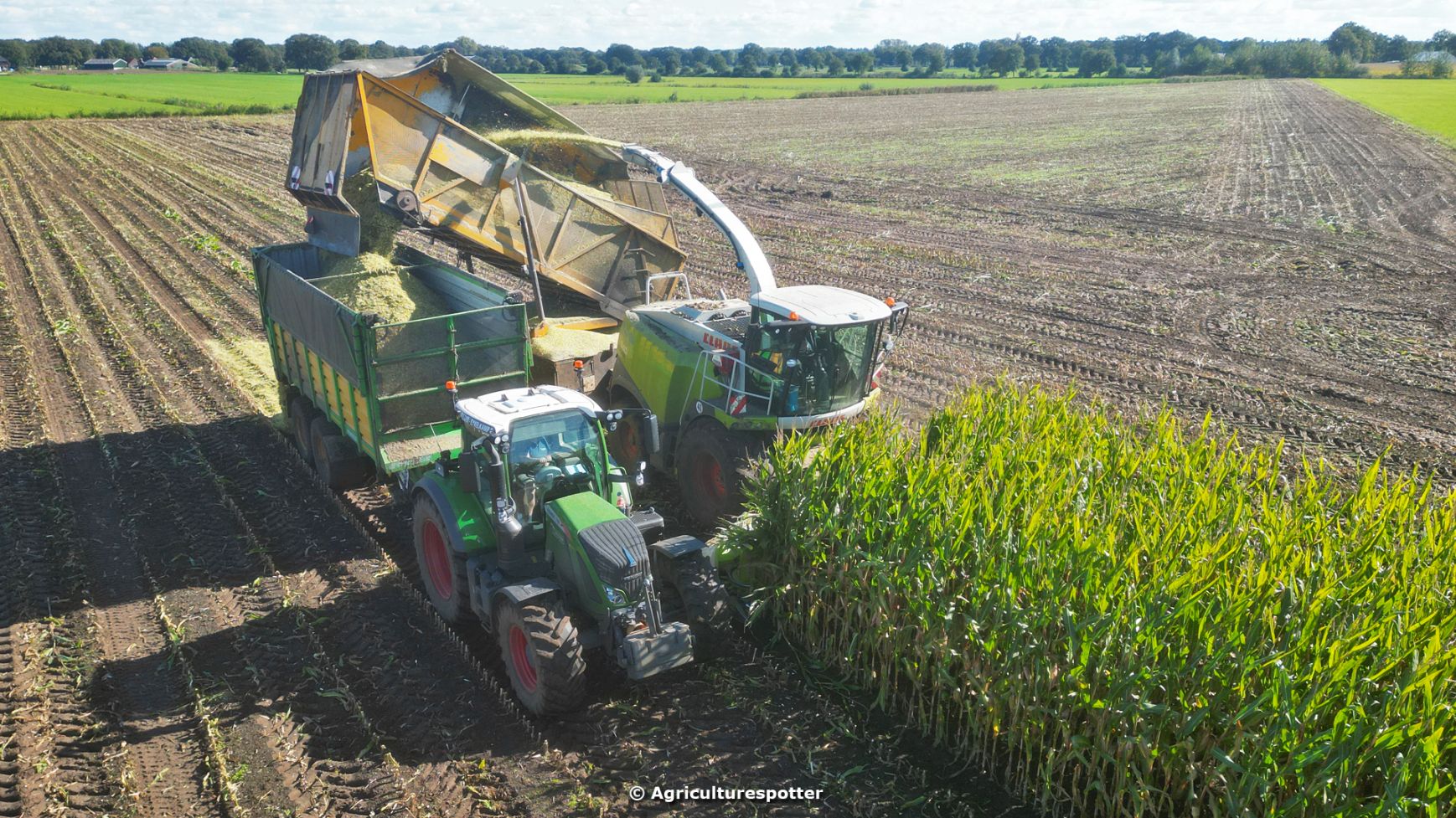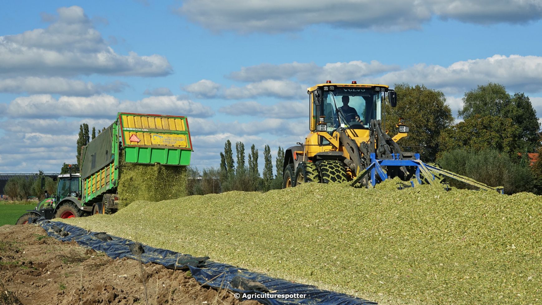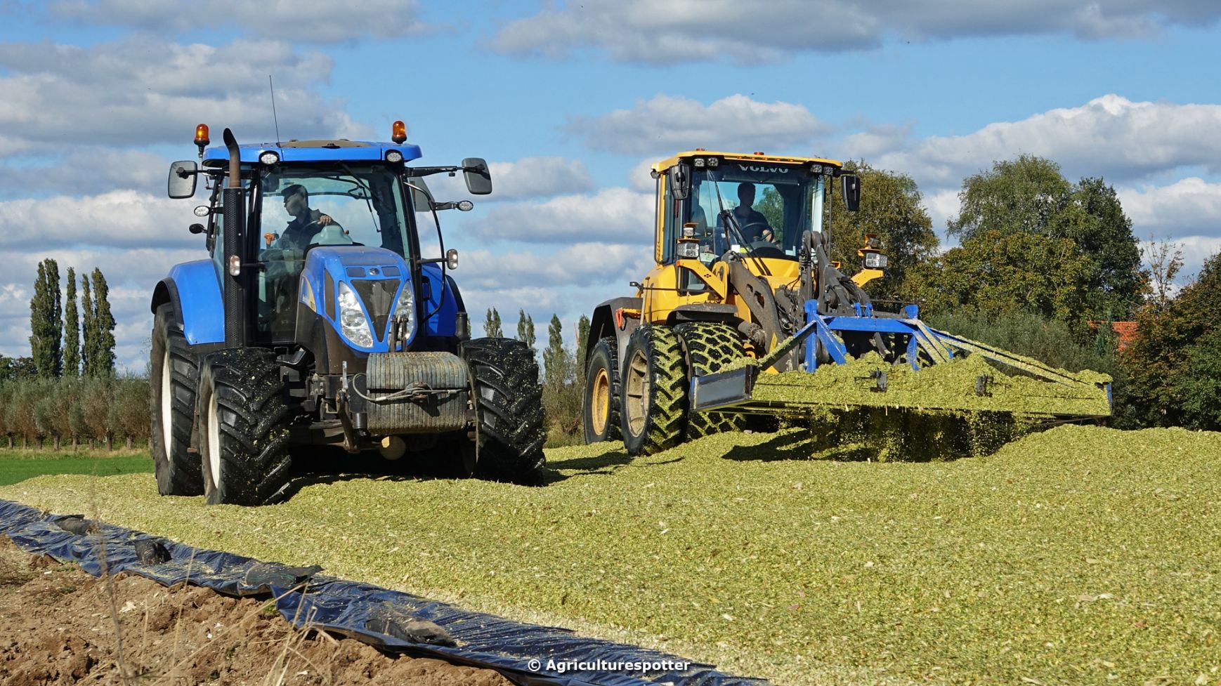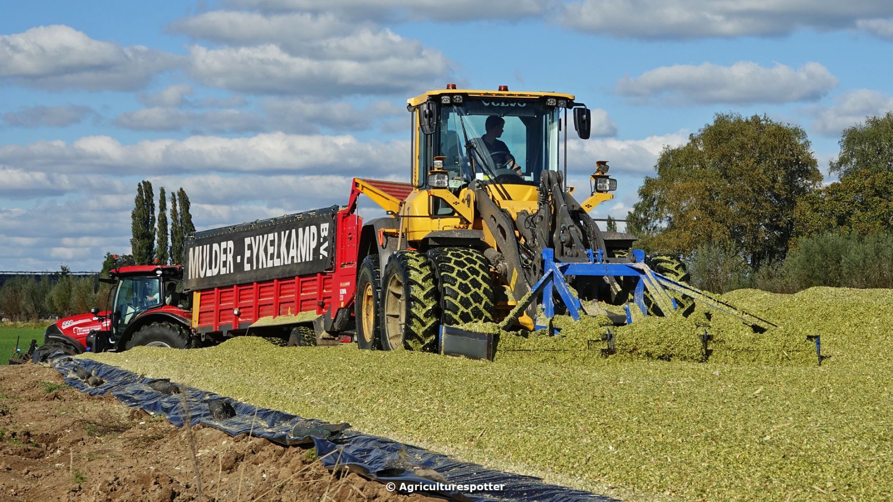 Maïs hakselen in Dalfsen met een Claas Jaguar 940-bunkerhakselaar van loonbedrijf Mulder-Eykelkamp BV uit Zwolle. Het transport werd gedaan met een Case IH Puma 220 AFS met een Schuitemaker Siwa 720-silagewagen en een Fendt 716 Vario met een Joskin Silospace. De kuil werd aangereden met een Volvo L60H en een New Holland T6070 met een Holaras-kuilverdichtingswals.