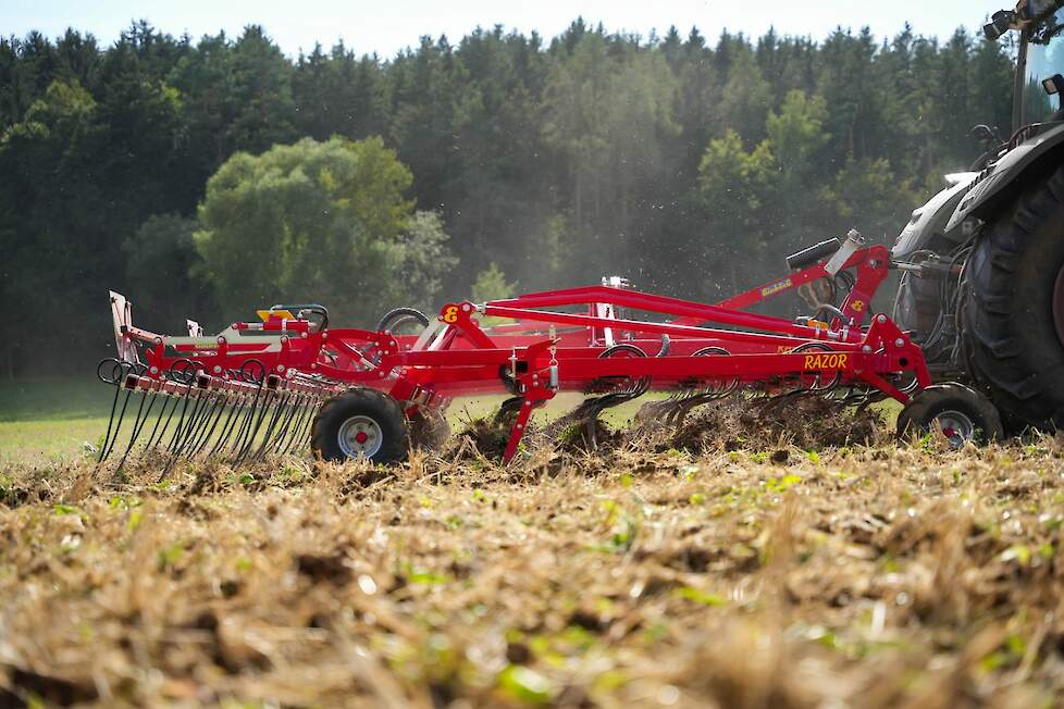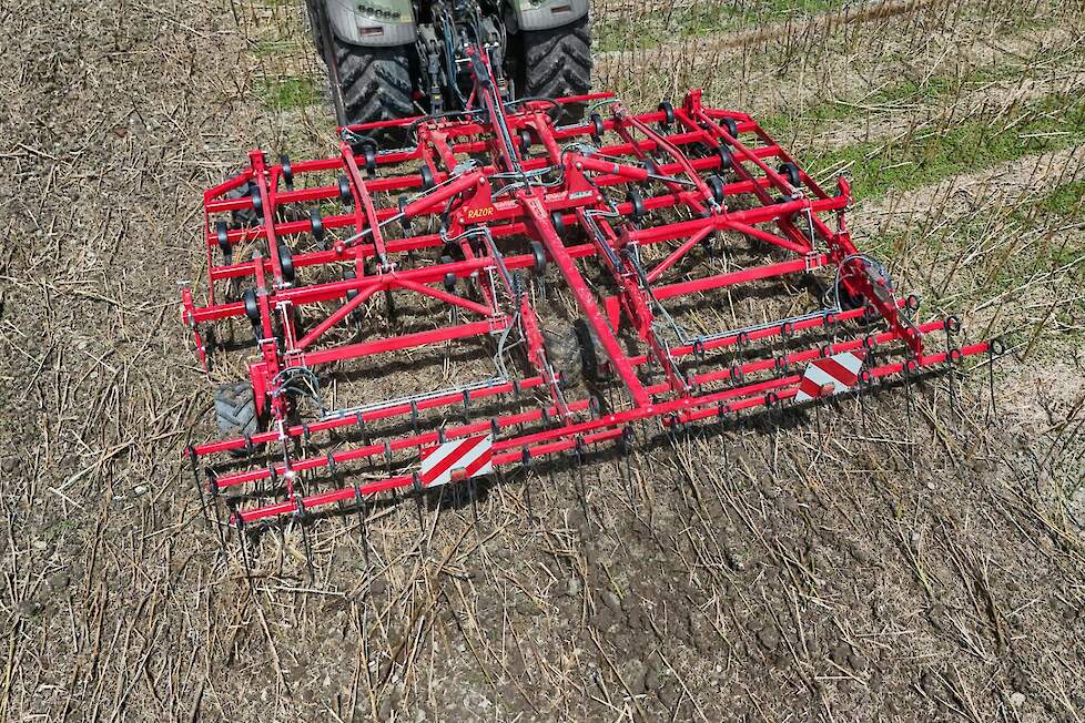 Als het aankomt op ultradiepe en vlakke grondbewerking, biedt de Razor een aantal voordelen voor grondbewerking en economische efficiëntie. De ondiepe bodempenetratie vermindert slijtage en brandstofverbruik, wat op zijn beurt de bedrijfskosten verlaagt. Bovendien is de Razor ideaal voor geïntegreerde gewasbescherming als mechanisch alternatief voor herbiciden. Met zijn vlijmscherpe vegen maakt hij ondiepe grondbewerking tot een specialiteit. Of het nu gaat om het nauwkeurig inwerken van vanggewassen in de lente of de vlakke stoppelbewerking in de zomer, de nieuwe Razor is ontworpen voor nauwkeurig en scherp snijden tot een werkdiepte van 12 cm.