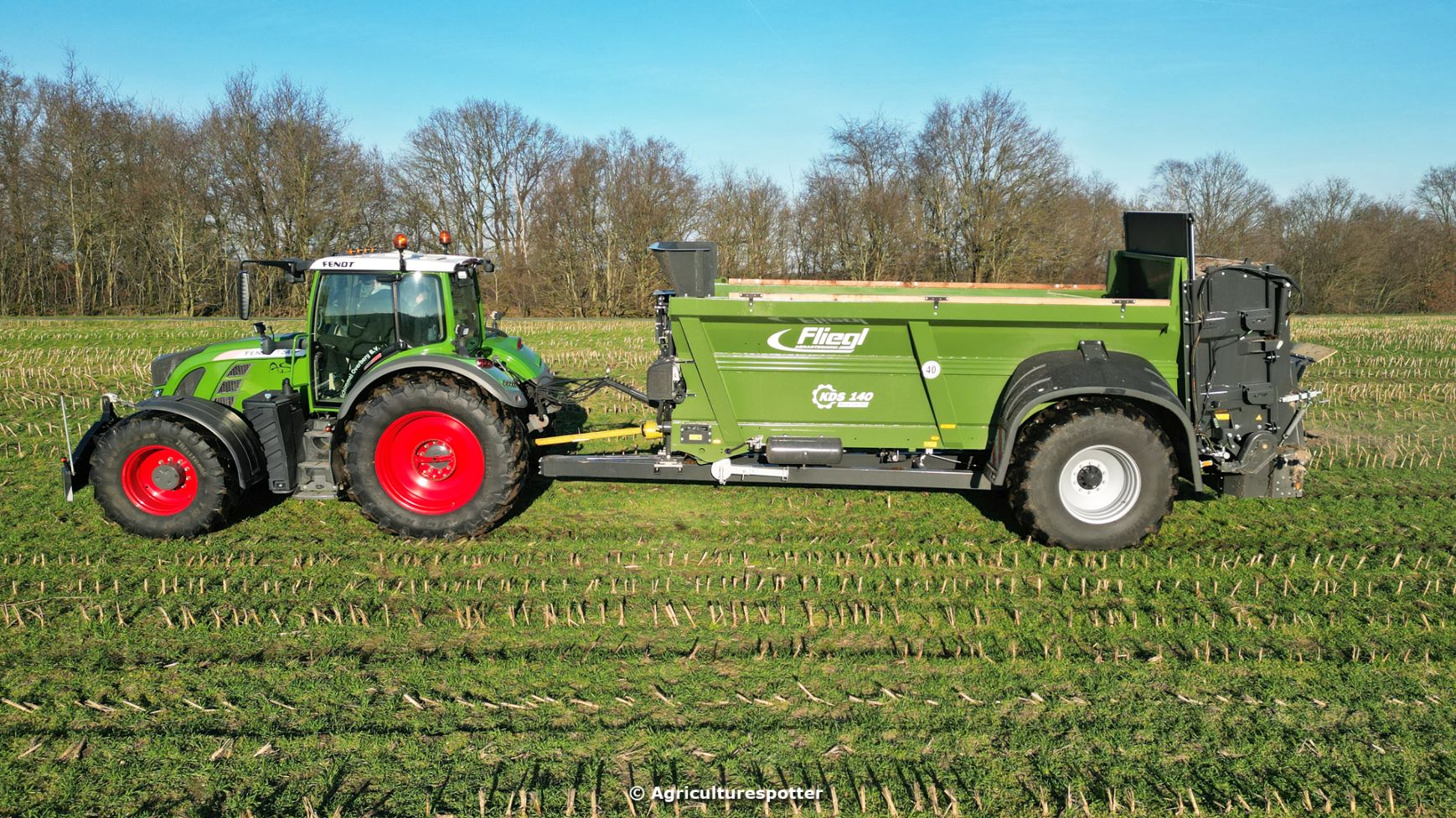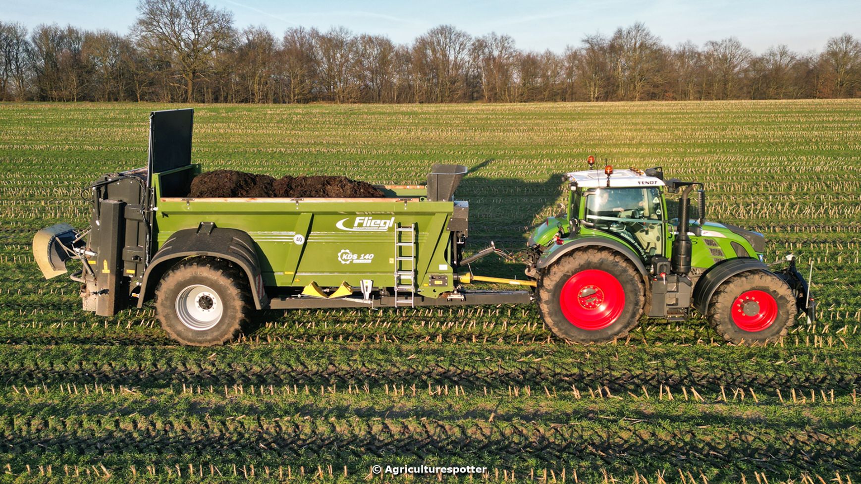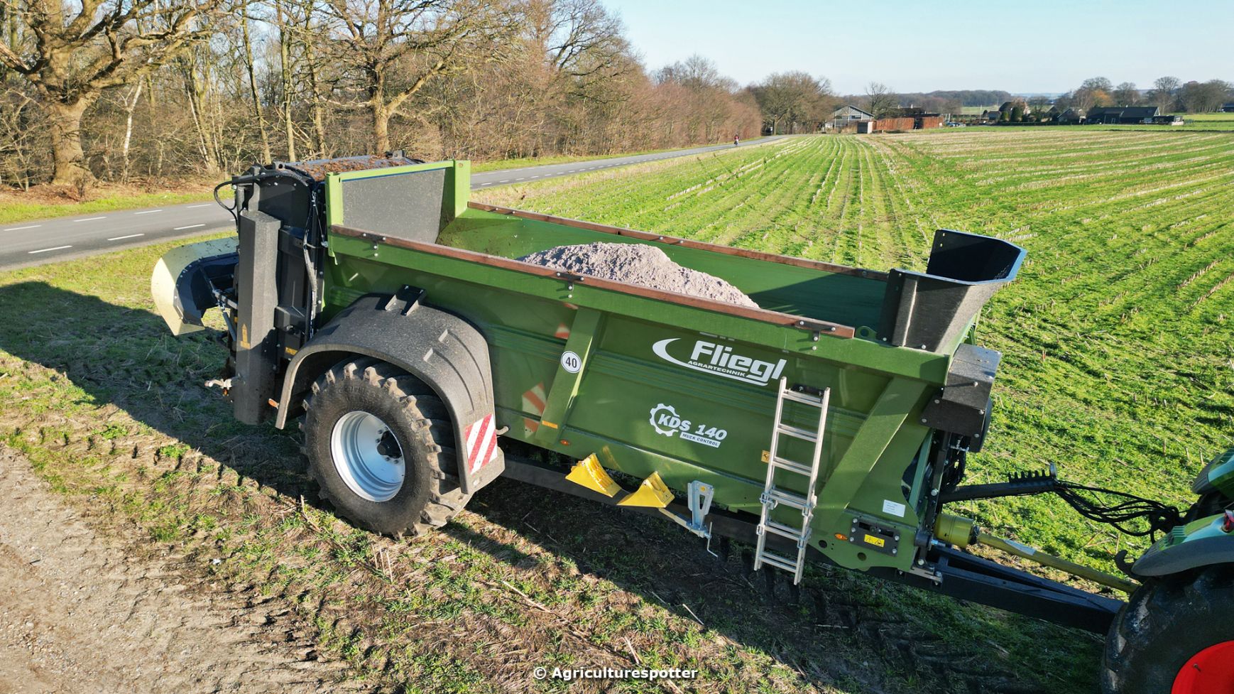 Fliegl KDS 140 Muck Control-meststrooier in actie