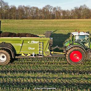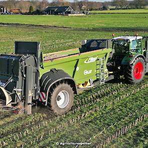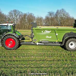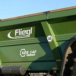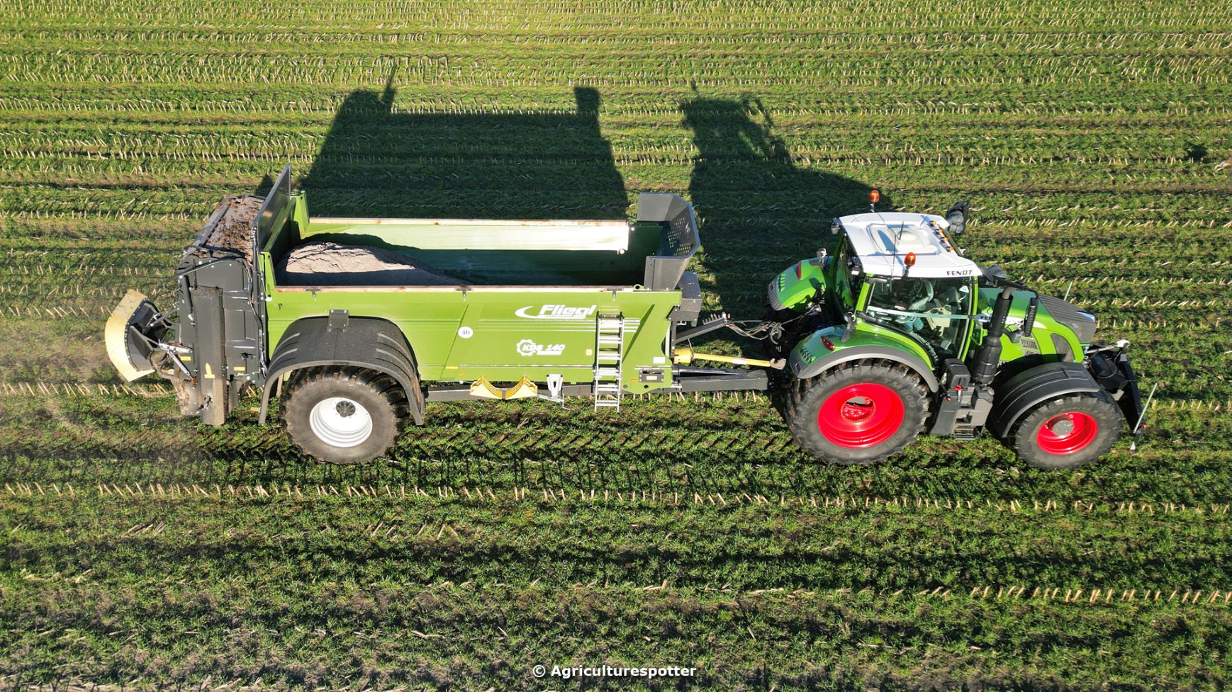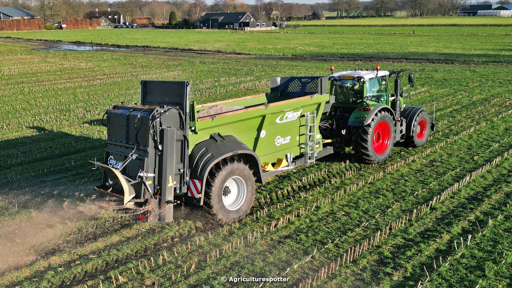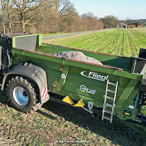 Fliegl KDS 140 Muck Control-meststrooier in actie