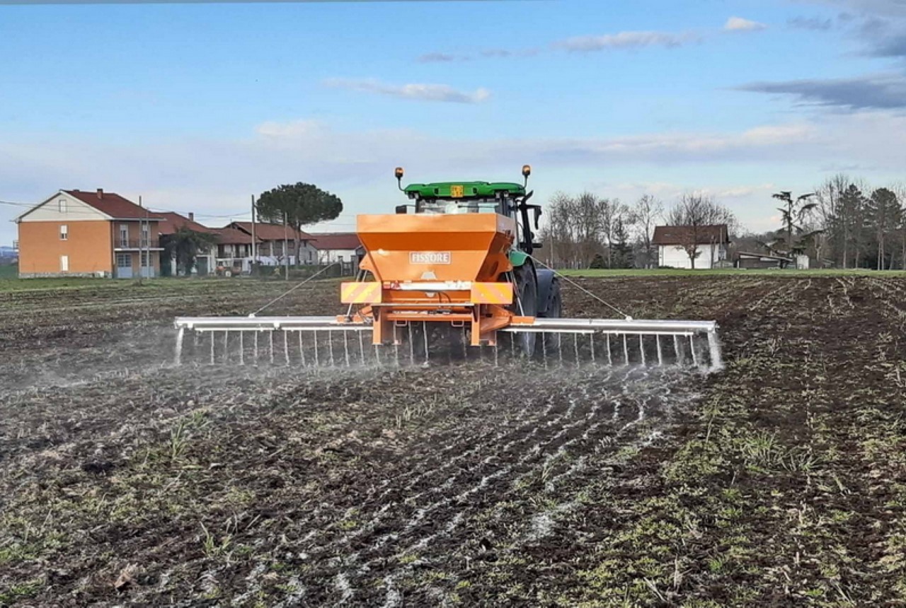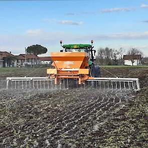 Koekorrels, CAS en gips verdelen door middel van de vijzelstrooier van Fissore