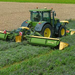 In combinatie met een frontmaaier bereikt het triplomaaiwerk bij een werkbreedte van 9,45 m een oppervlaktecapaciteit tot 14 ha/ h. Doordat er geen kneuzer wordt gebruikt, is op gewicht bespaard, zodat de compact gebouwde maaicombinatie al met trekkers met een vermogen vanaf ca. 180 pk en een relatief laag brandstofverbruik kan worden ingezet. Daardoor is de EasyCut B 950 Collect zeer geschikt voor het maaien in minder draagkrachtige moeras- en natuurgebieden en ook op hellingen. Dankzij de transportvijzels van 45 cm diameter kunnen ook arealen met grote hoeveelheden gewas probleemloos worden geoogst. De vijzels en de beproefde EasyCut-maaibalk zijn evenwijdig aan elkaar geplaatst en worden voor een optimale gewasstroom vanaf de buitenkant aangedreven. Daardoor blijft er veel ruimte over voor zwaden met een groot volume. Klavergras en luzerne worden omzichtig in het zwad afgelegd en tegelijkertijd worden brokkelverliezen voorkomen.