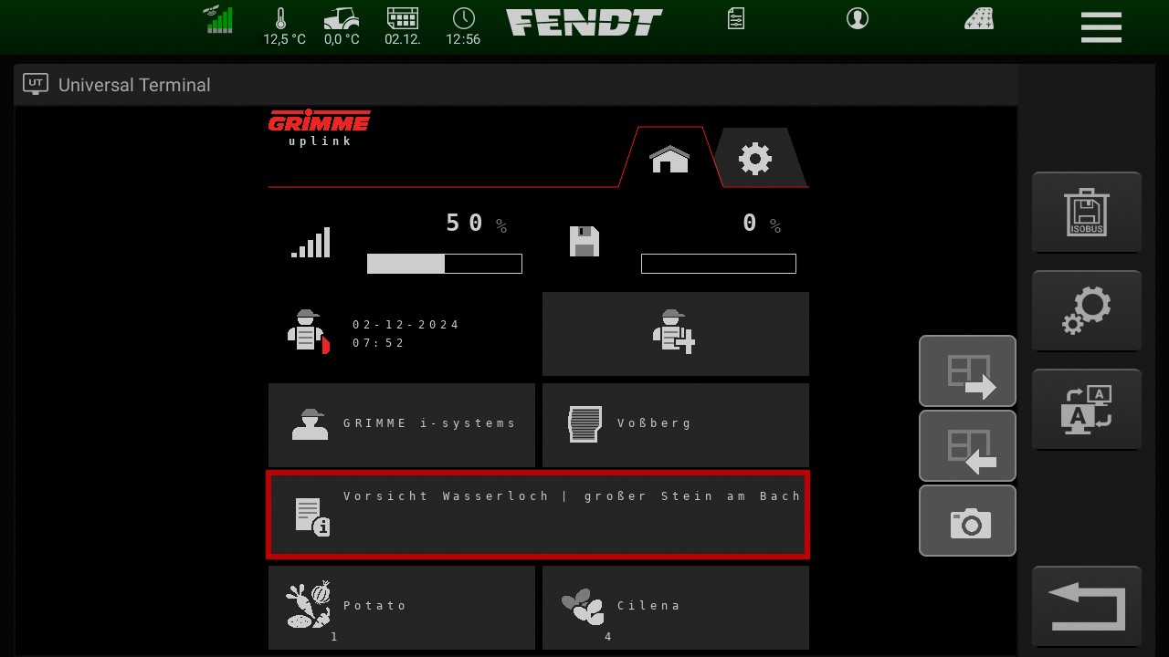 Met het nieuwe Uplink UT (Universal Terminal)-commentaarveld kan de gebruiker specifieke notities documenteren. Deze informatie wordt taakspecifiek gedocumenteerd in myGRIMME, waardoor het overdragen van handgeschreven aantekeningen overbodig is.