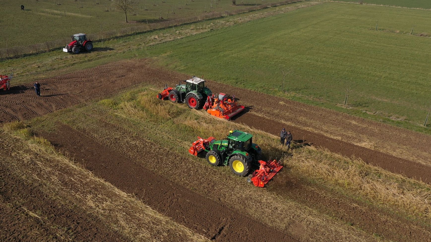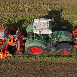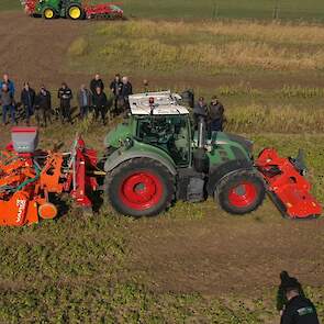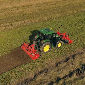 LMB Guus Giesen was met diverse machines aanwezig: een John Deere 6155R met Guttler-messenwals voorop en een Guttler Supermaxx achter, en een John Deere 6120M met een Kuhn-klepelmaaier voor en een Kuhn-biomulch achter.