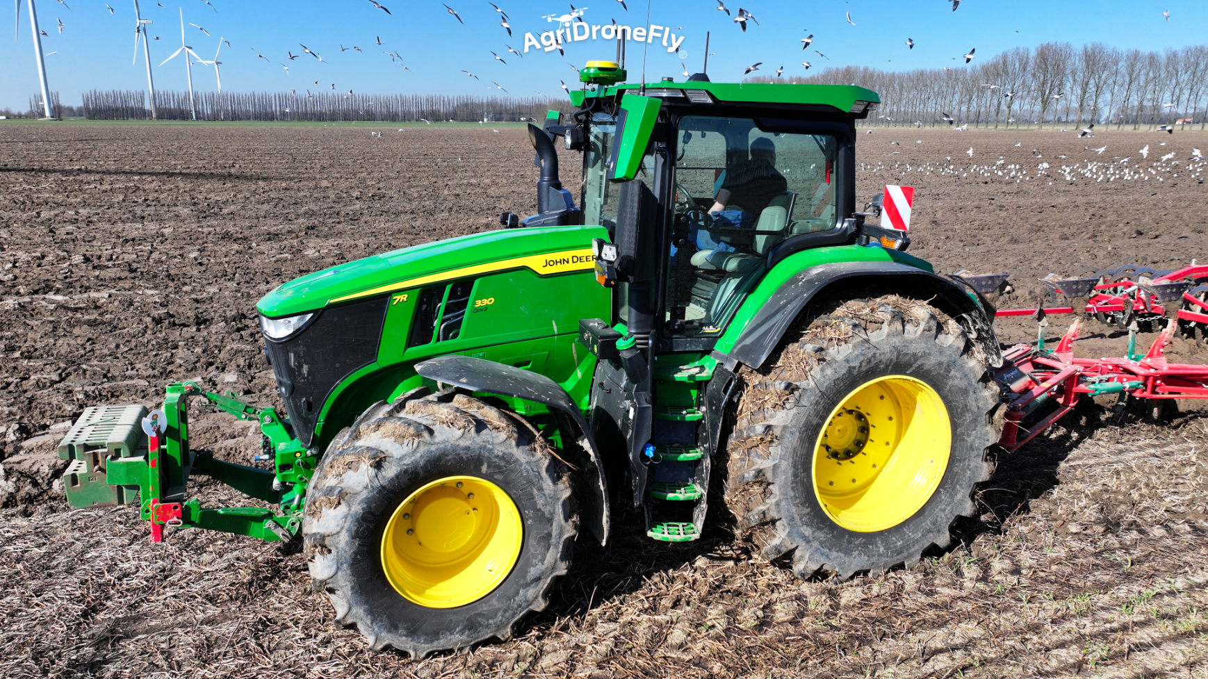John Deere 7R.330 GEN 2 met Kverneland LO 100-zevenschaar en Kverneland dubbele vorenpakker