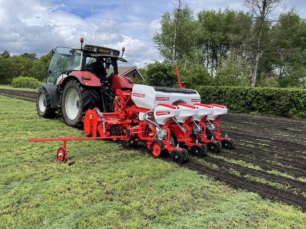De Concept Agri SFT300, uitgerust met maïsplanter, heeft vorig jaar een praktijkdemo gedraaid in Noord-Brabant. Deze machine combineert strokenfrezen met het direct inzaaien van maïs in één werkgang. Hierdoor vervalt de noodzaak voor aparte inzaai van een vanggewas, wat tijd en bewerkingen bespaart.