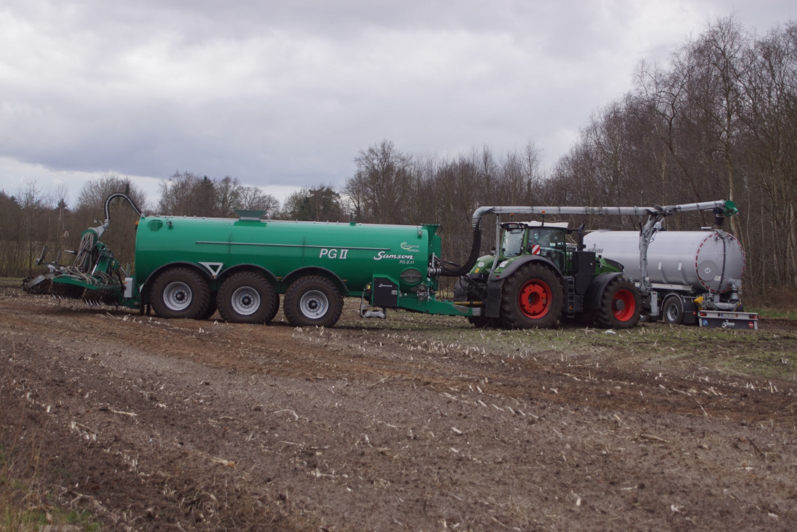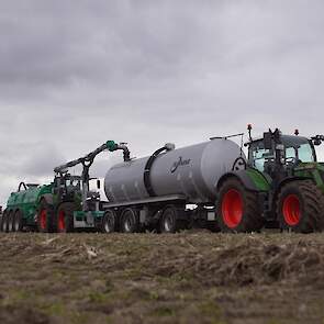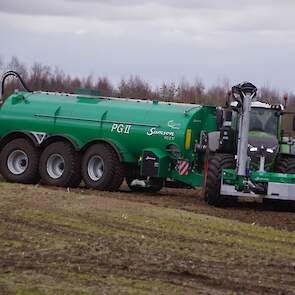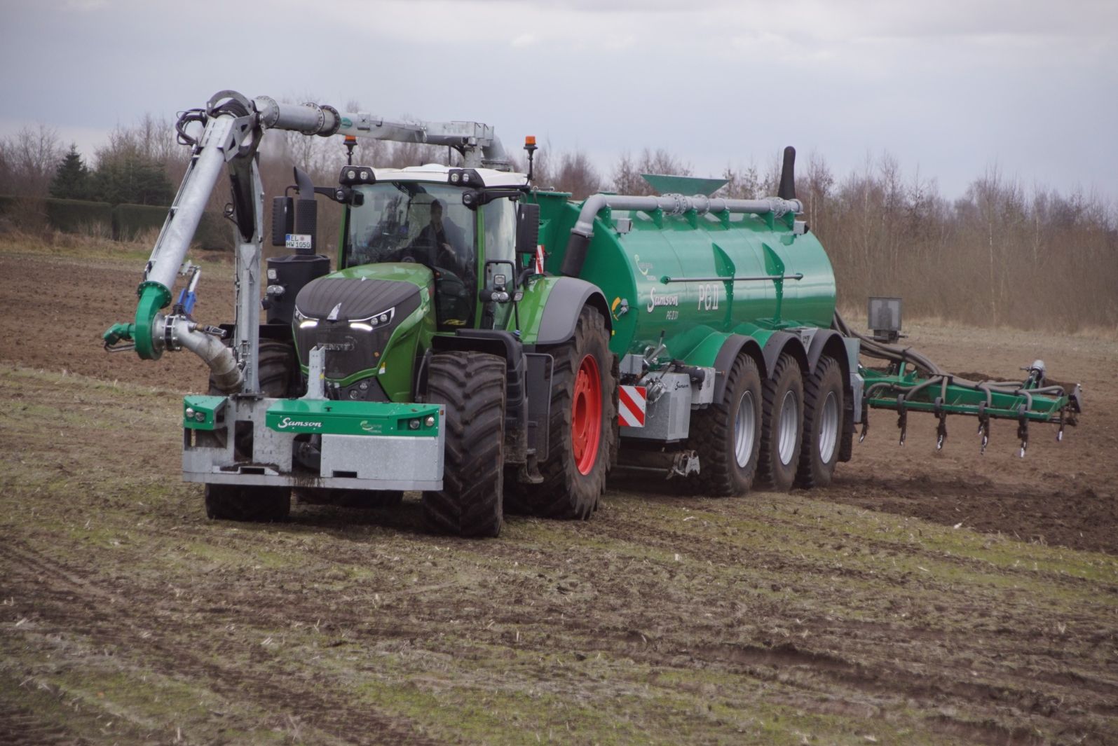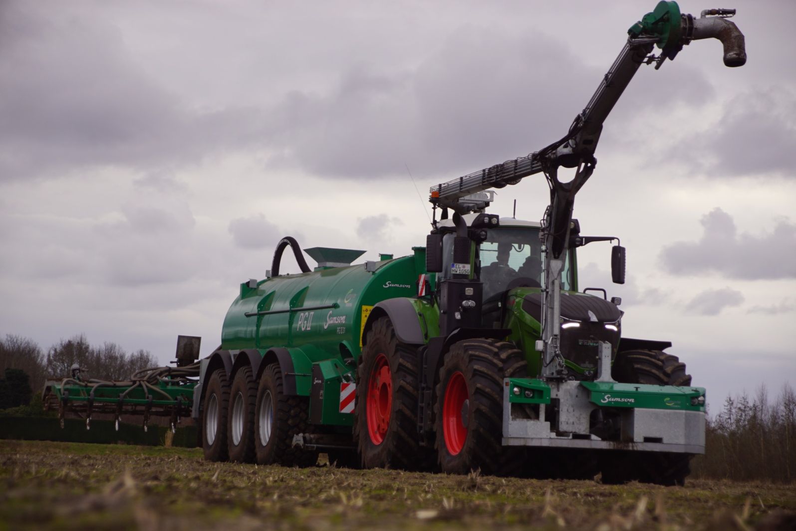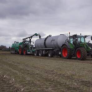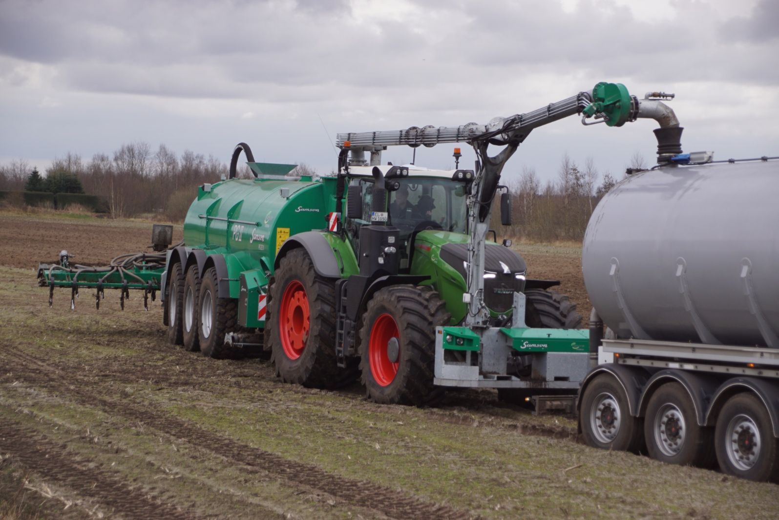Fendt 1050 met Samson II 31-bemester. Tanken van Kumm Technik zorgen voor de aanvoer.