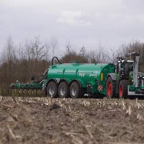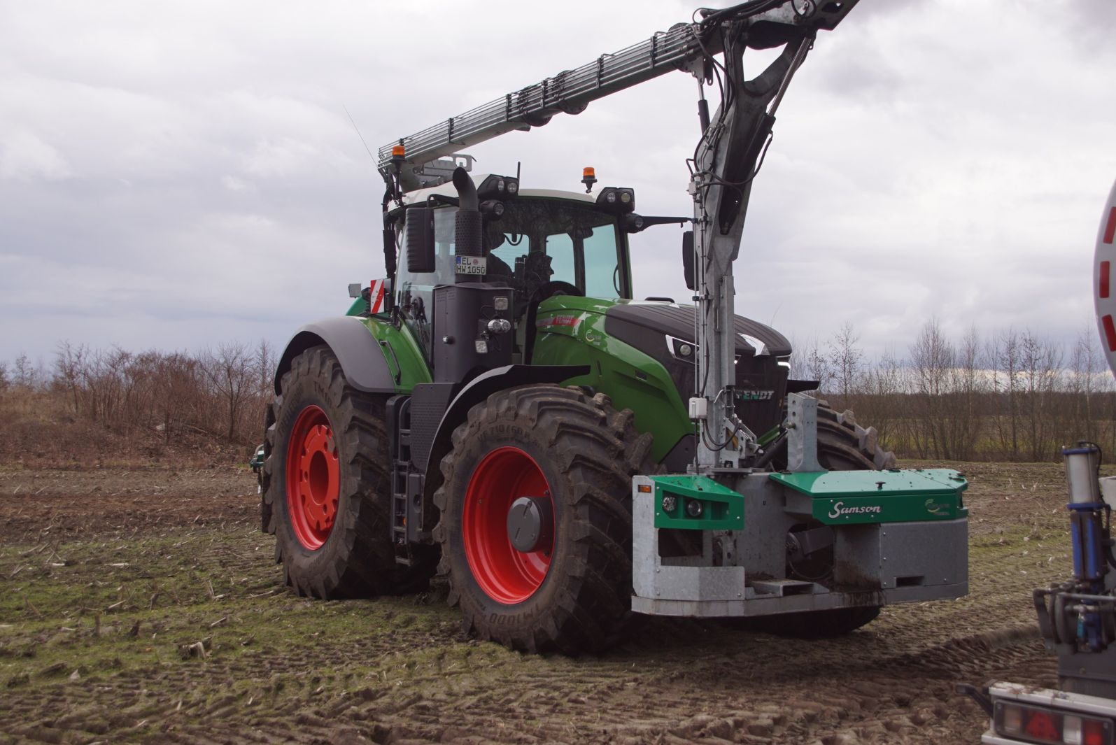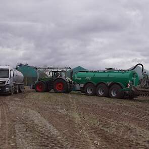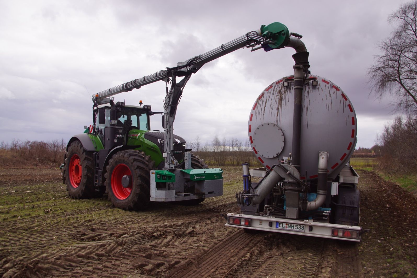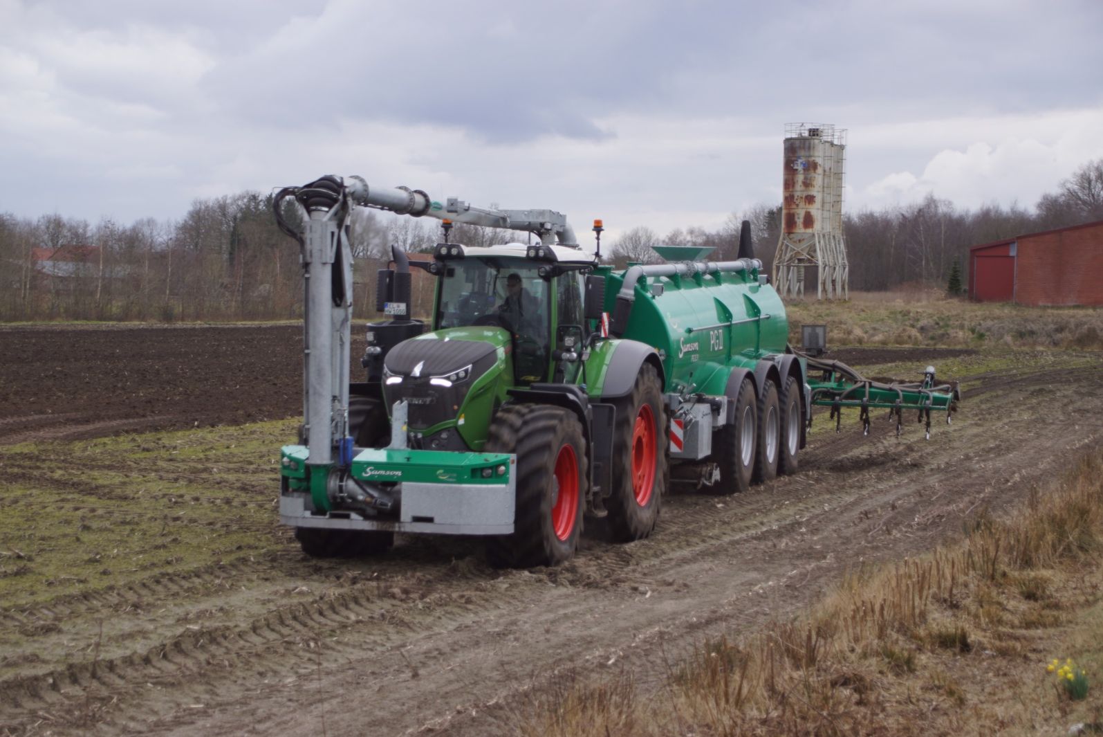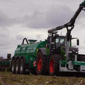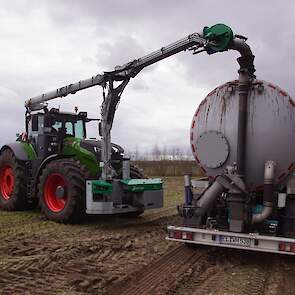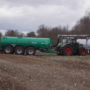 Fendt 1050 met Samson II 31-bemester. Tanken van Kumm Technik zorgen voor de aanvoer.