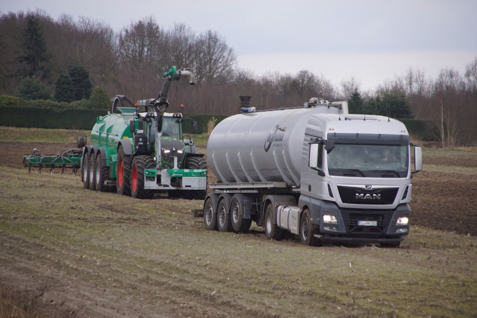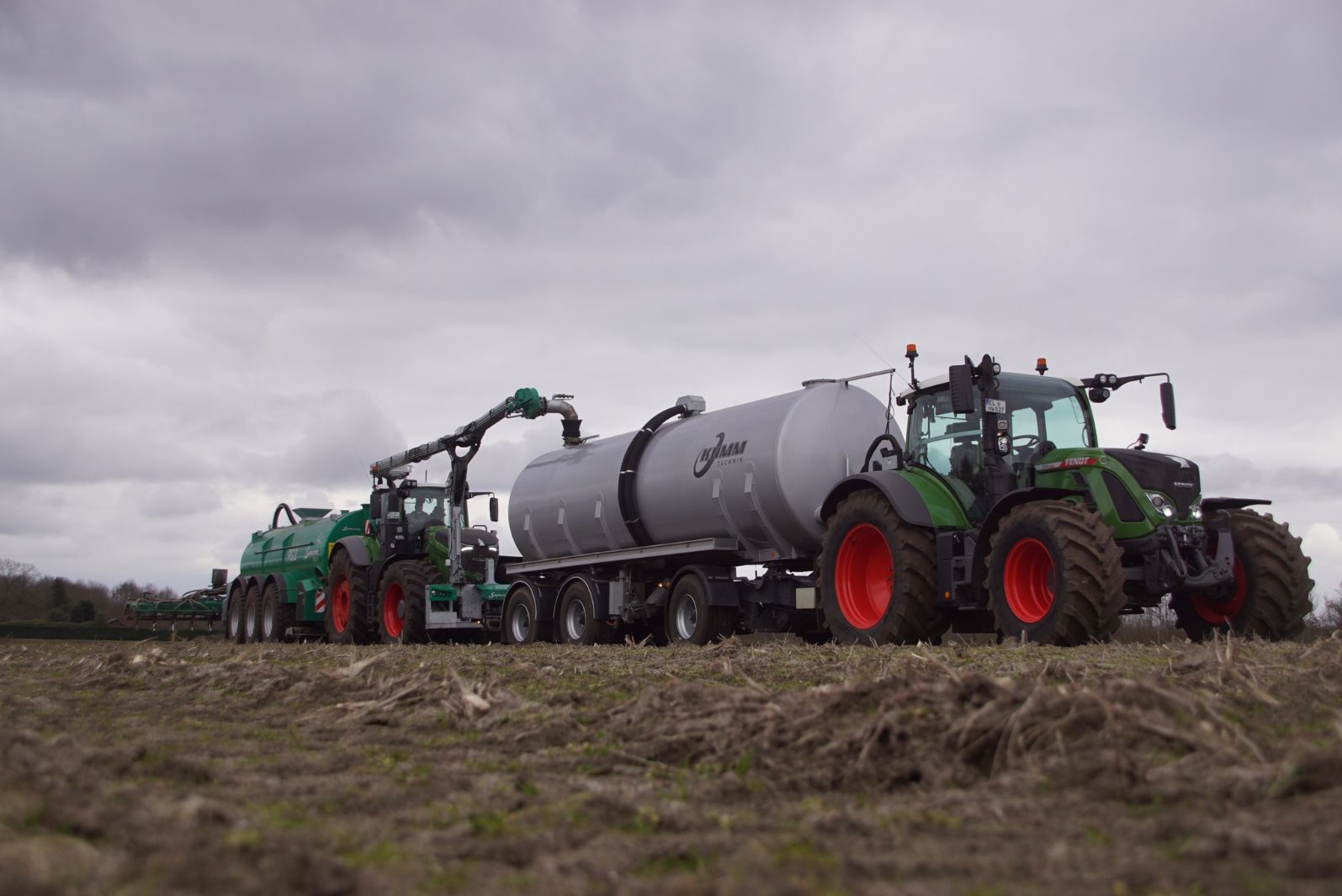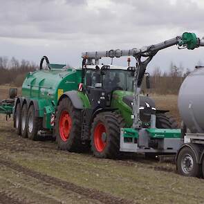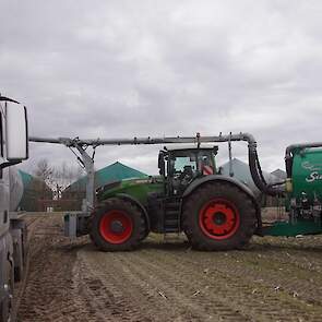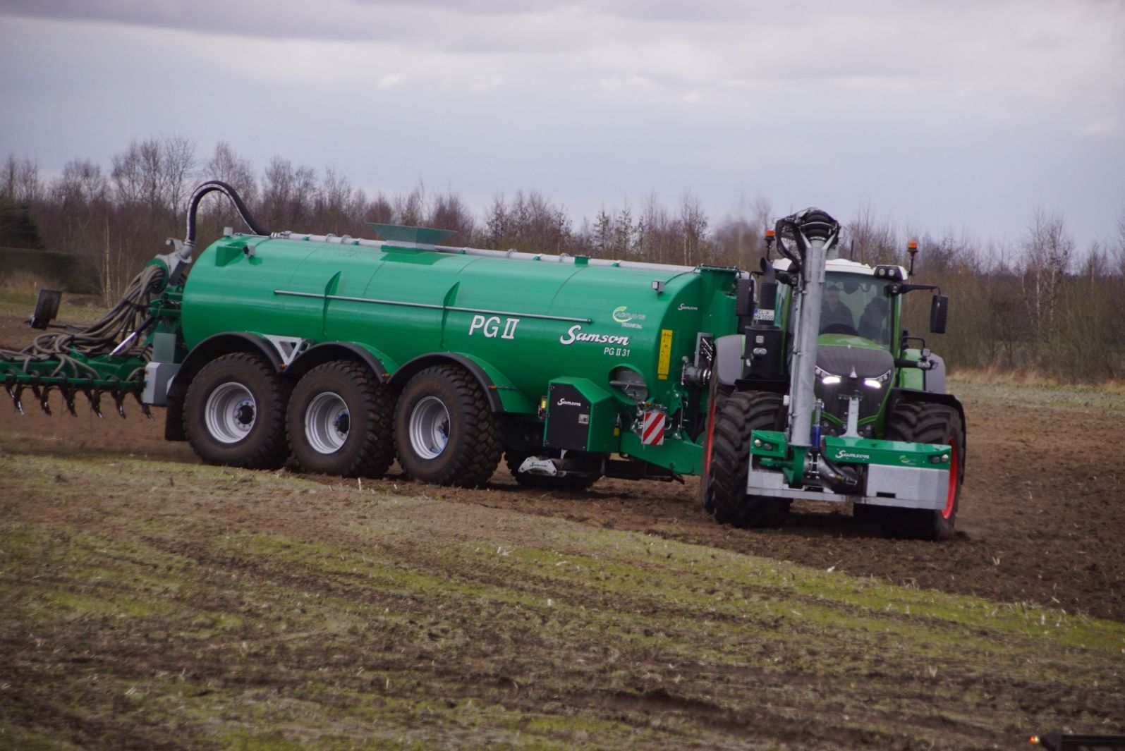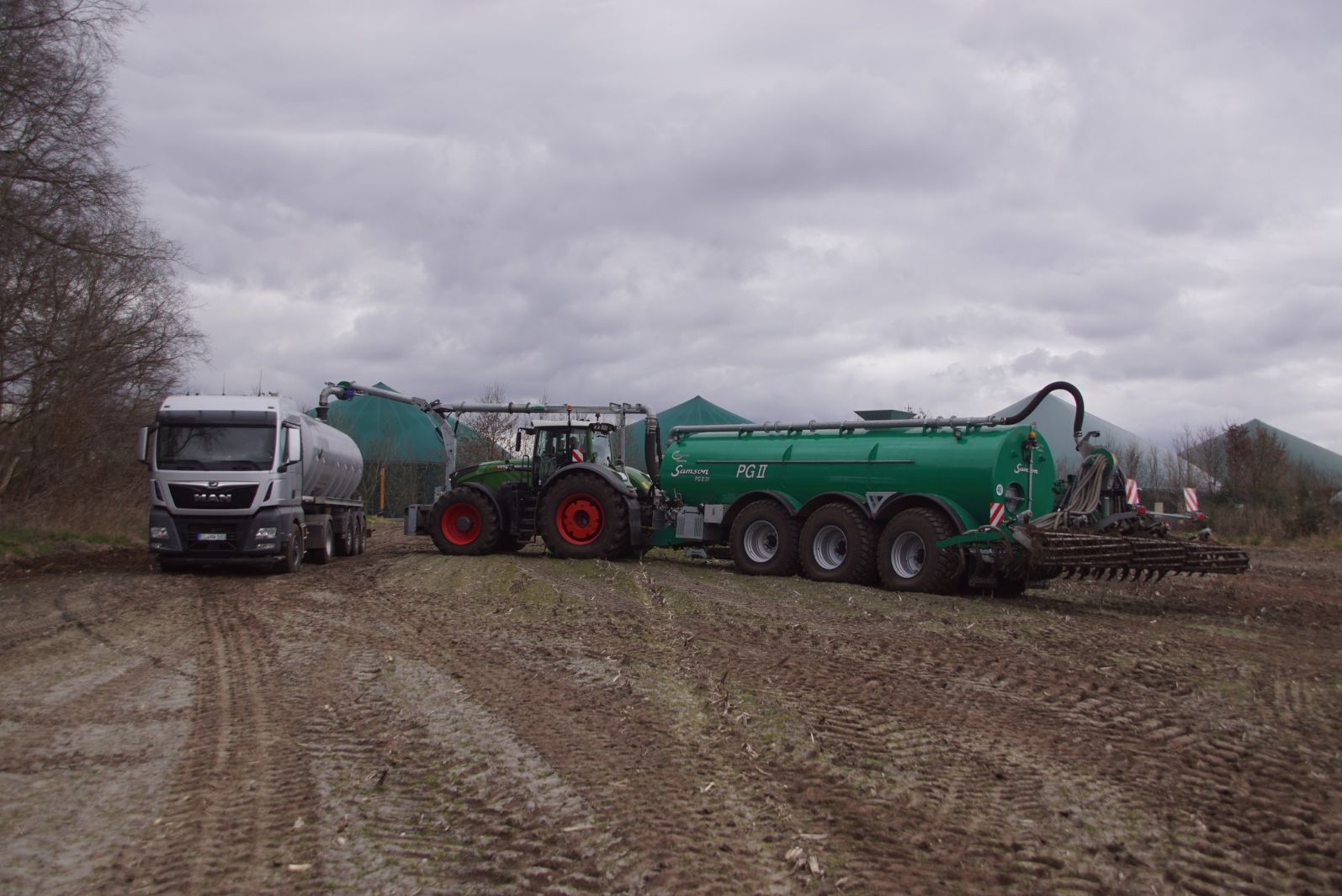 Fendt 1050 met Samson II 31-bemester. Tanken van Kumm Technik zorgen voor de aanvoer.