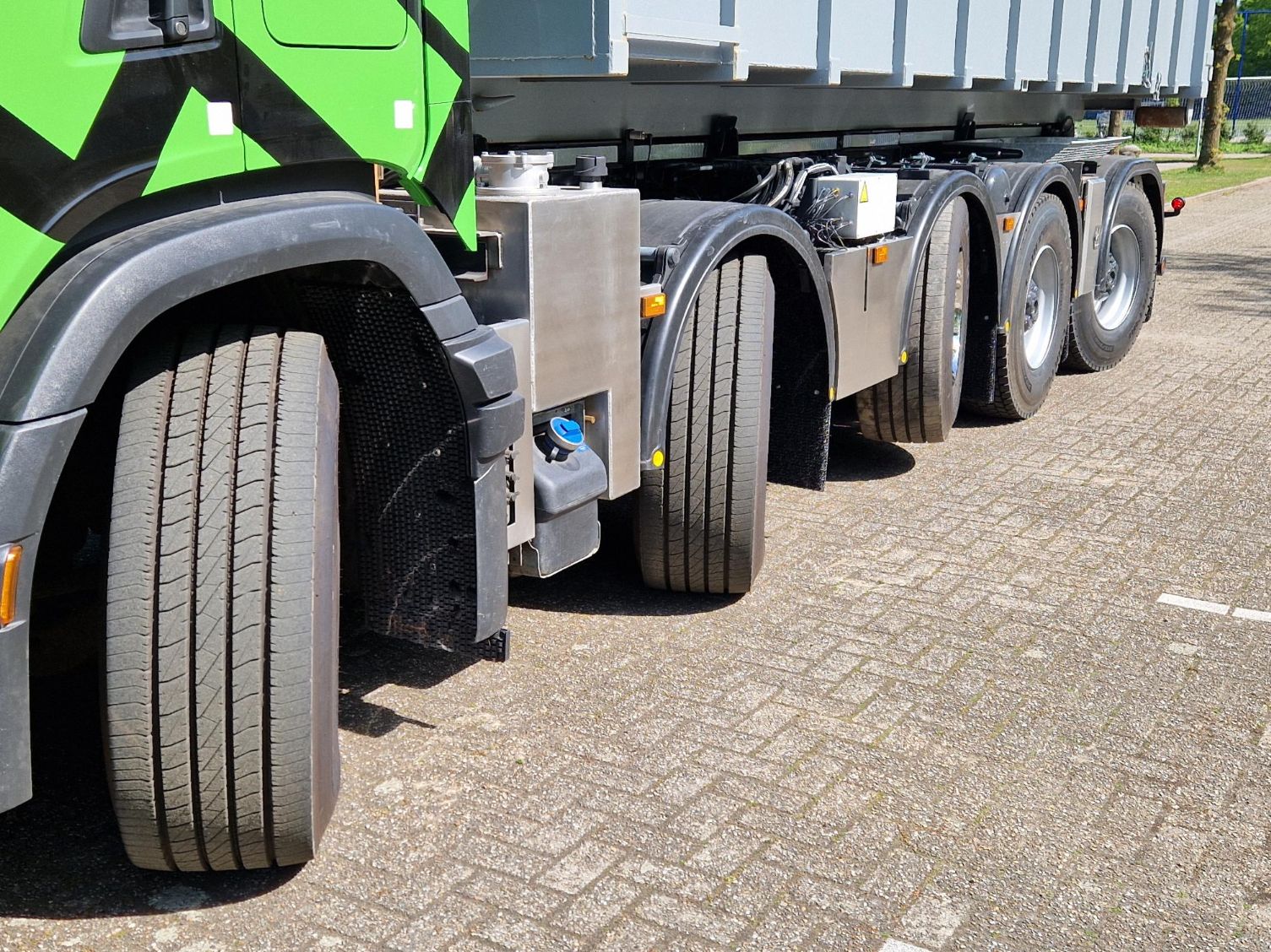 De Scania heeft een chassishoogte die belangrijk lager is dan gebruikelijk. Doordat het 40 tons VDL haakarm-afzetsysteem slechts 135 cm hoog is kunnen afzetbakken tot 265 cm hoogte vervoerd worden. Een bijkomend voordeel van de lage bouwwijze is de grote stabiliteit en de optimale afrolhoek voor afzetcontainers. Verder is de truck opvallend compact gebouwd, met een Y- vormige brandstoftank aan de rechterkant tussen as twee en drie. De uitlaatdemper zit op de originele positie tussen as één en twee aan de zelfde kant.