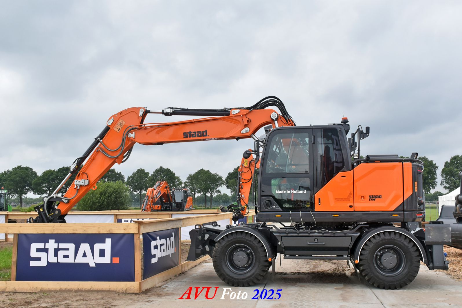 Het was aan- en afrijden van diverse diepladers, hierbij wat foto’s van de nu al aanwezige trekkers, een oude laad-graafcombinatie en de nieuw in Nederland gebouwde bandenkraan.