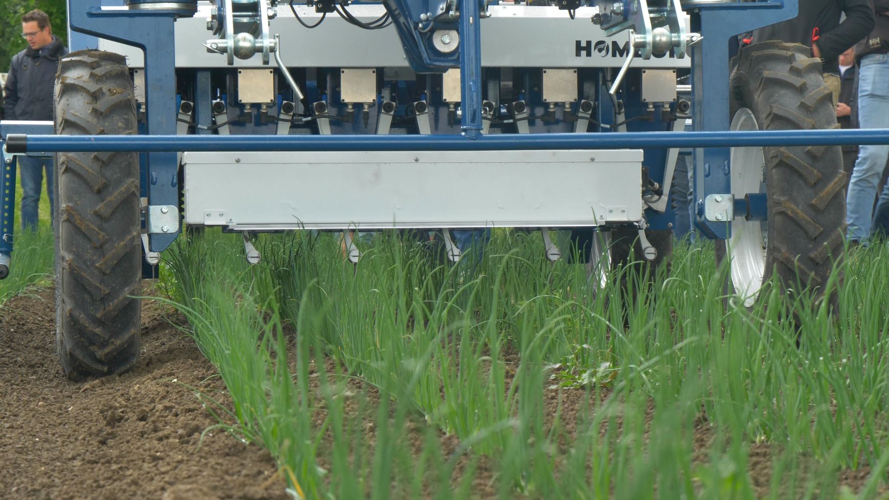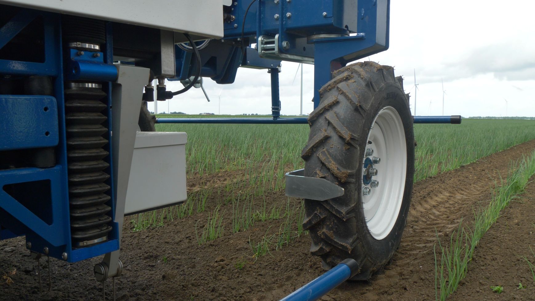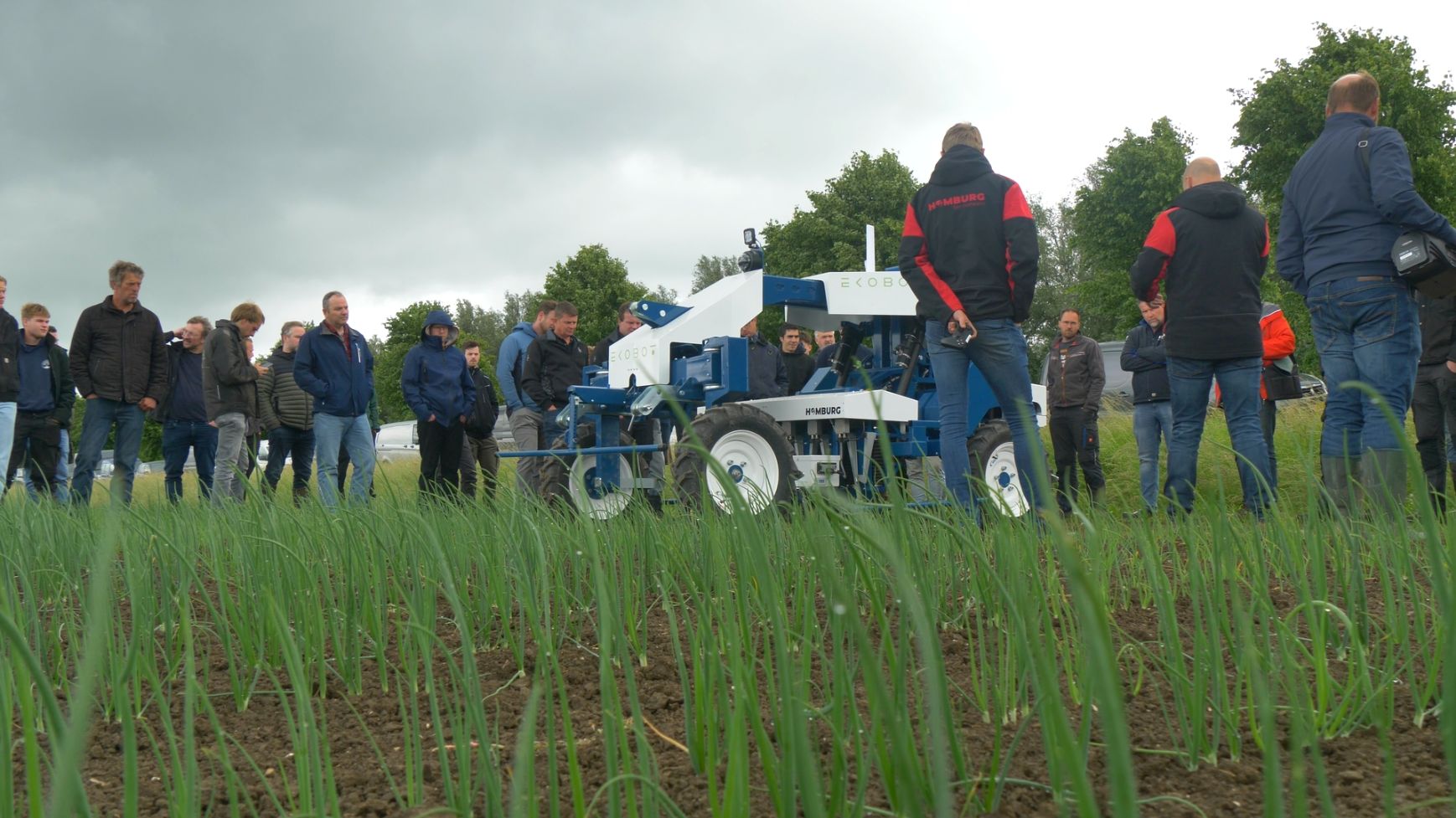 EKO-BOT van Homburg. Deze robot kent twee modellen en is op dit moment geprogrammeerd voor uien. Deze autonoom rijdende robot wordt met behulp van gps bestuurd en kan non-stop werken, de accu gaat 8 tot 10 uur mee.