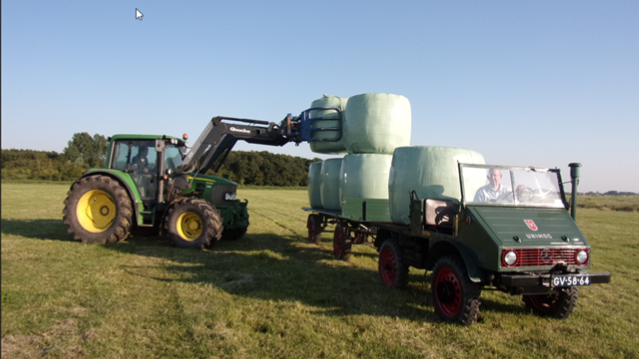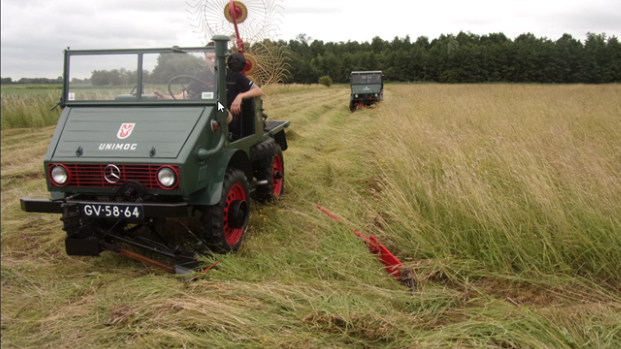 De Unimog is van het type 401, 25 pk. Bouwjaar 1955. Reeds 42 jaar in mijn bezit, aldus Derk Jan van Zanten uit Kantens (GR). Toen gerestaureerd.