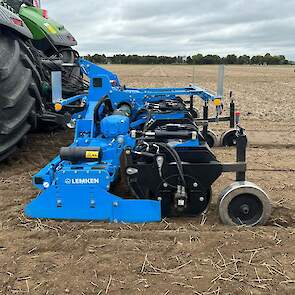 Er komt steeds meer vraag naar uien op beddenteelt. Lemken-dealer Mecha Service in Emmeloord heeft een speciale rol gemonteerd achter 4,50 m. Lemken Zirkon 12. Zelfs in de wat vochtige herfstklei met stoppels lukte het een goed bed te vormen.