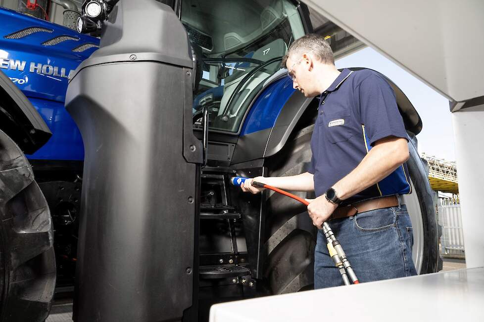 De T7 Methane Power-tractor kan werken op biomethaan uit dierlijke mest, wat de duurzaamheid op het landbouwbedrijf ondersteunt. In samenwerking met Bennamann - waarin CNH in 2023 een meerderheidsbelang verwierf - stelt New Holland landbouwbedrijven in staat om methaan op te vangen, te verwerken en te raffineren voor gebruik als brandstof. Dit gesloten kringloopsysteem vermindert de uitstoot, vermindert het gebruik van meststoffen en kan zelfs een negatieve koolstofvoetafdruk bereiken.