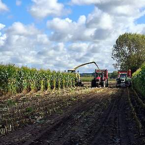 Loonbedrijf snel uit Mastenbroek aan het hakselen in Dalmsholten, tussen Dalfsen en Lemerveld. Er reden tien trekkers mee, waaronder van Loonbedrijf Pekkeriet uit Dalfsen, loonbedrijf Grolleman en van Loonbedrijf Snel reden ook een aantal combinaties mee.