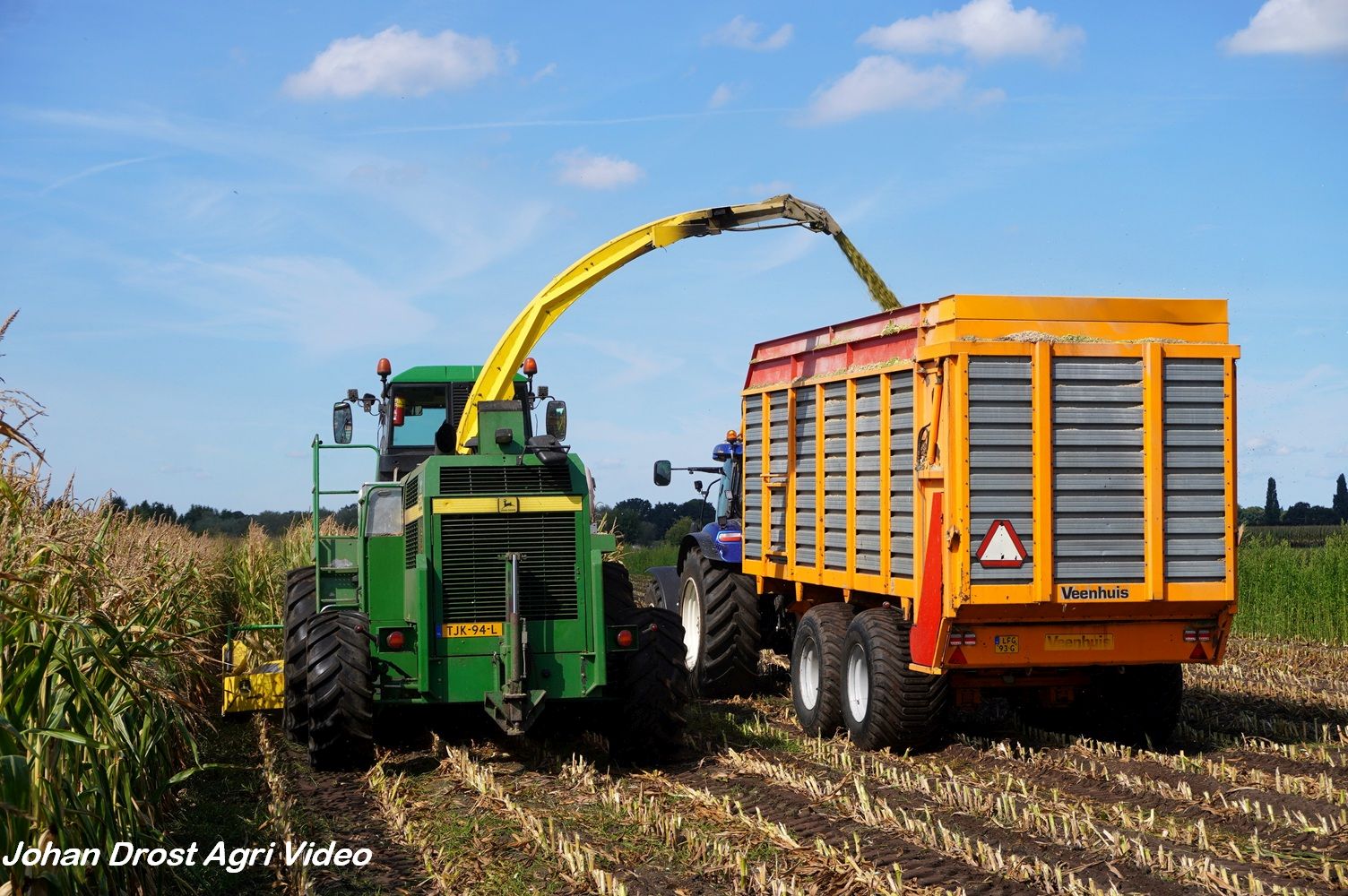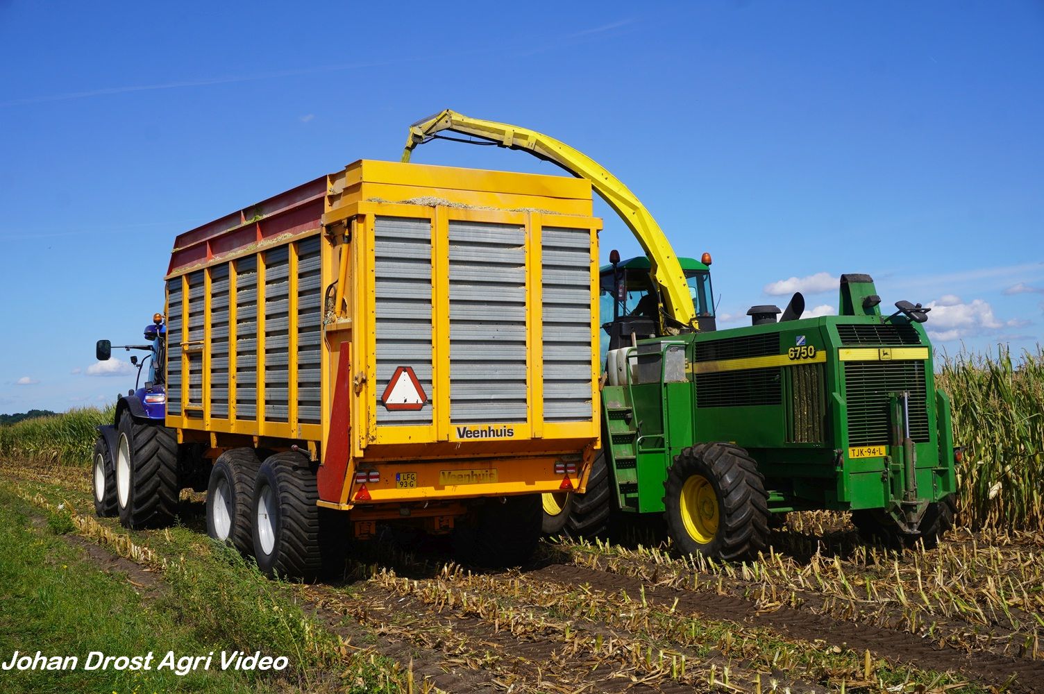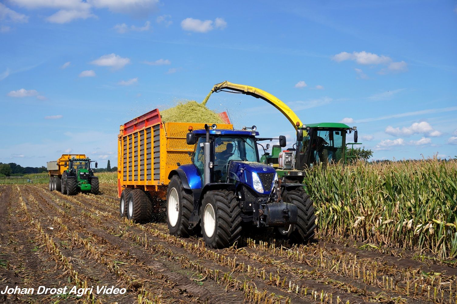 Loonbedrijf Vlastuin uit Ede aan het maïs hakselen met een John Deere 6750, New Holland T7070 met Veenhuis en een John Deere 6215R Black Edition met VG.