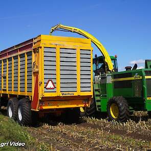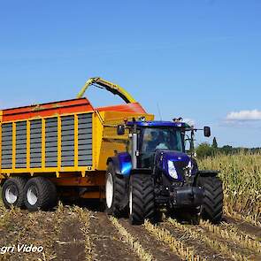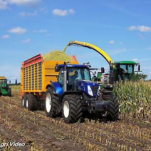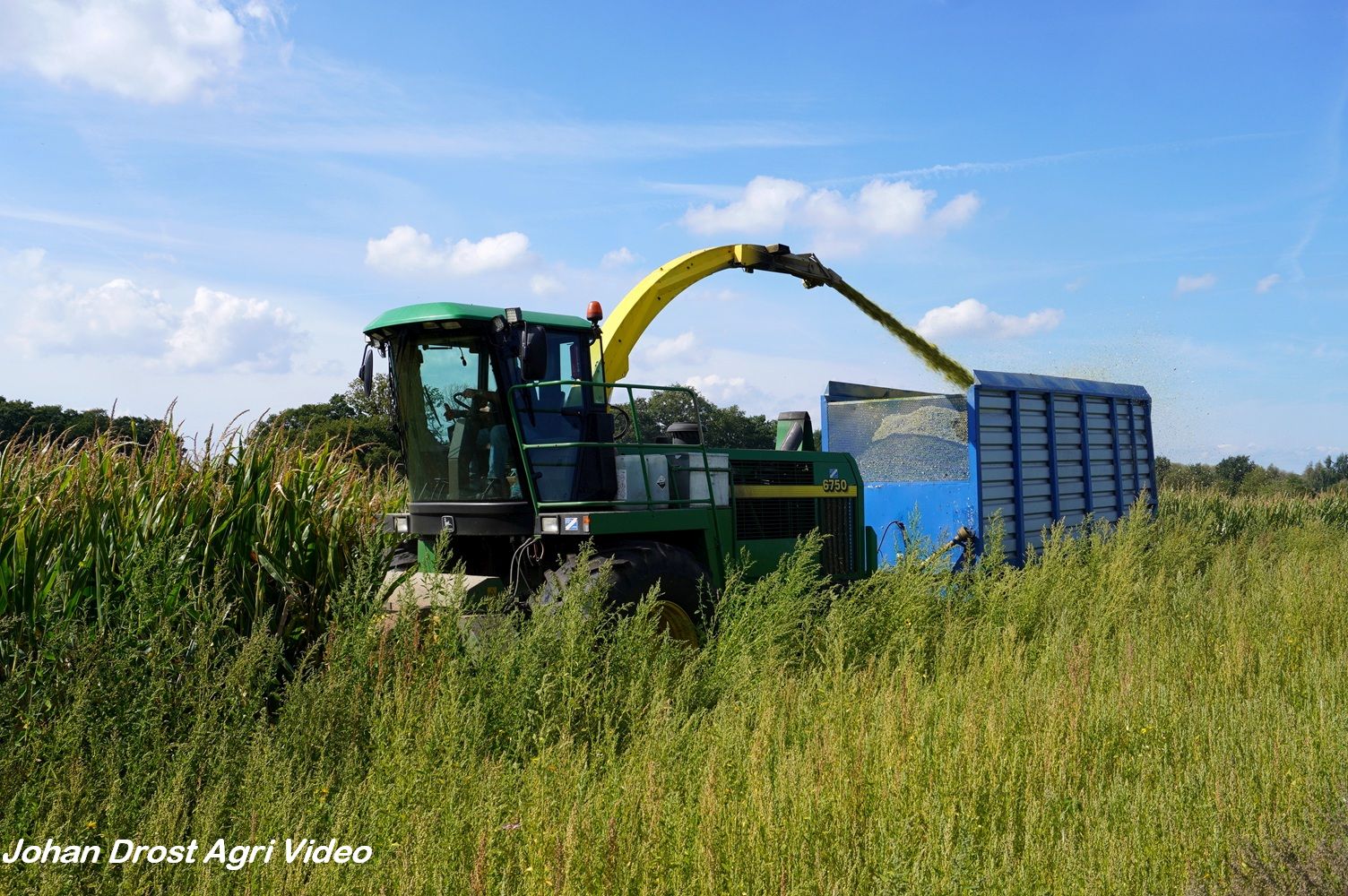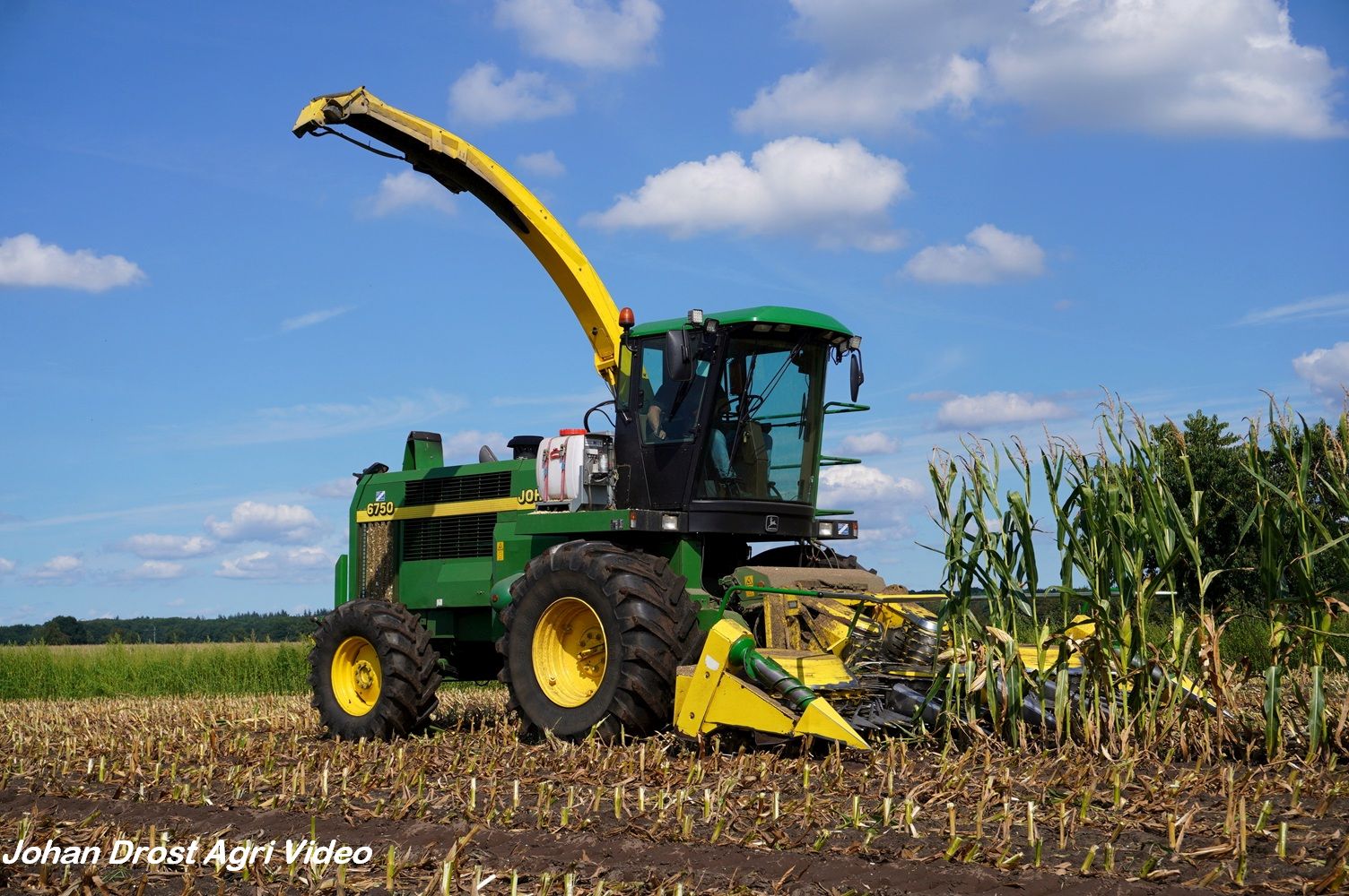 Loonbedrijf Vlastuin uit Ede aan het maïs hakselen met een John Deere 6750, New Holland T7070 met Veenhuis en een John Deere 6215R Black Edition met VG.
