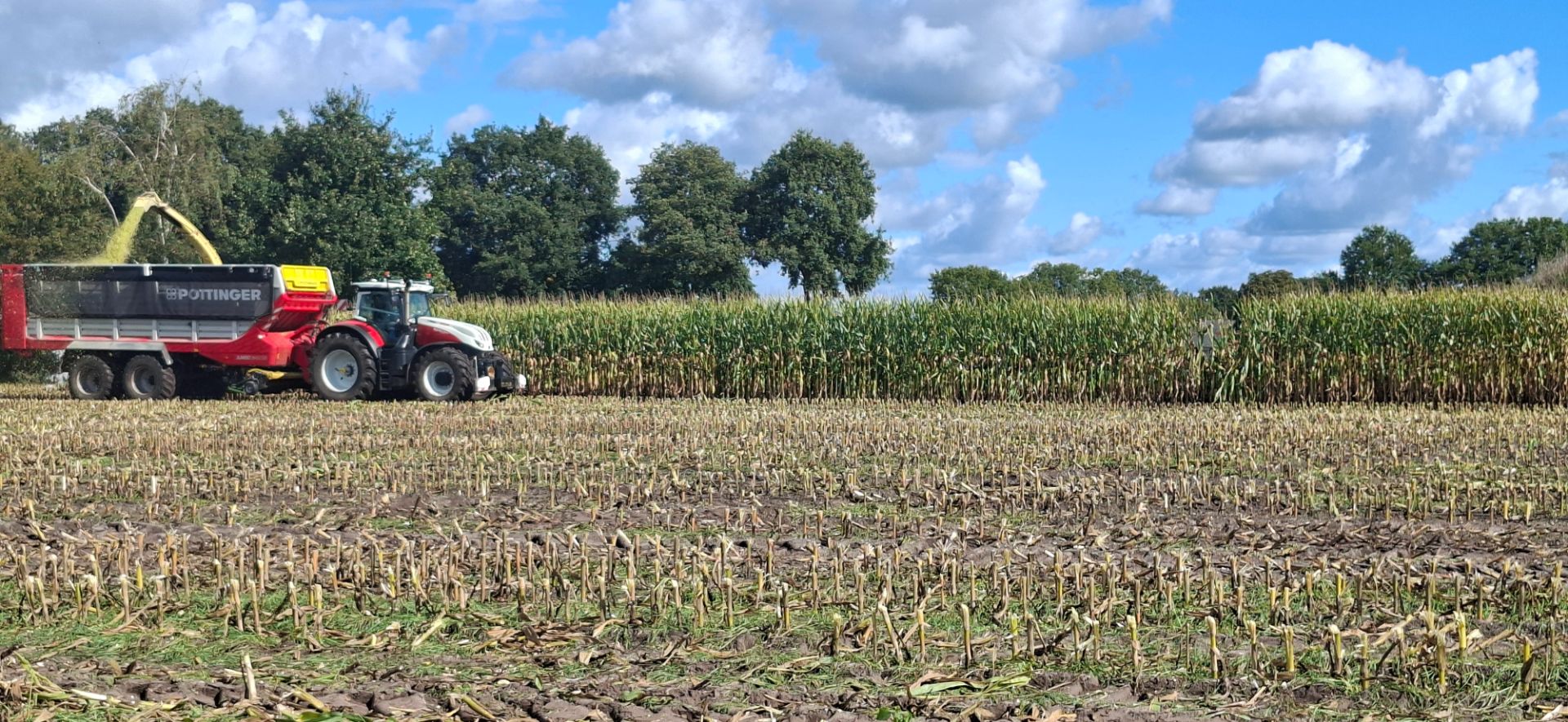 Zie hier de Krone-hakselaar en Steyr-trekkers van Loonbedrijf Zandman uit Beerze in actie.