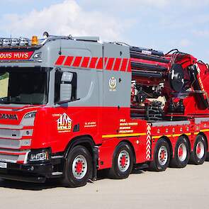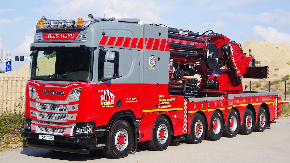 Louis Huys Speciaal Transport en Kraanverhuur uit Venlo heeft een Scania R660 XT in gebruik genomen in een ongebruikelijke configuratie. Het gaat hier namelijk om een 14x4 bakwagen. U leest het goed, een zeven-asser met twee aangedreven assen. De indrukwekkende Scania vormt de basis voor een zo mogelijk nog imposantere kraan, namelijk een 450 ton/ meter MPG.