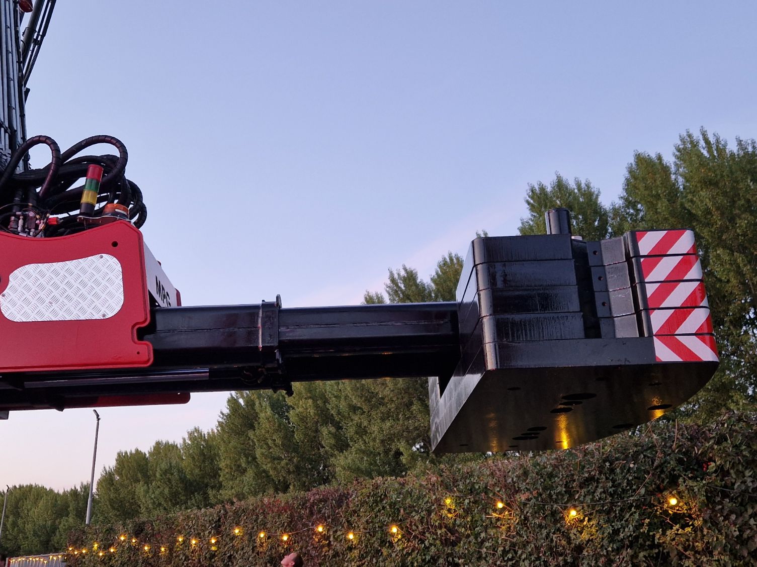 Het antwoord werd gevonden bij MPG in het Turkse Konya. Daar viel de keuze op de zwaarste ‘Knuckle Boom Crane’ van MPG, de 450.000 9+6. Een machine met 450 ton/ meter liftvermogen en een bereik van maximaal 70 meter. Op 20 meter is de hijscapaciteit nog steeds 13,5 ton en op 33 meter is dat 6,5 ton. Indrukwekkende cijfers dus, maar daar moest een passende truck onder.