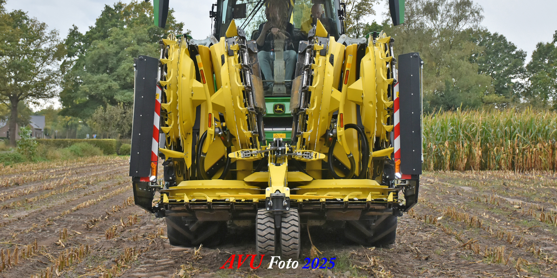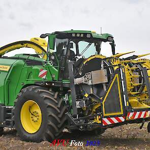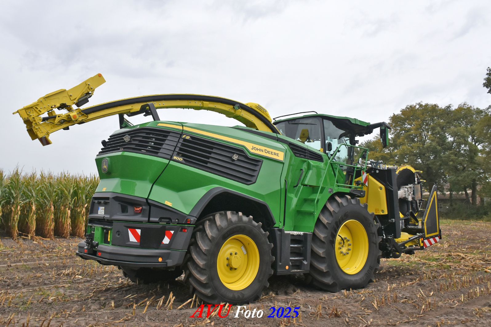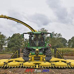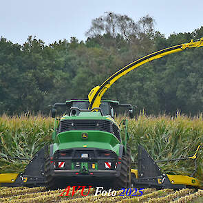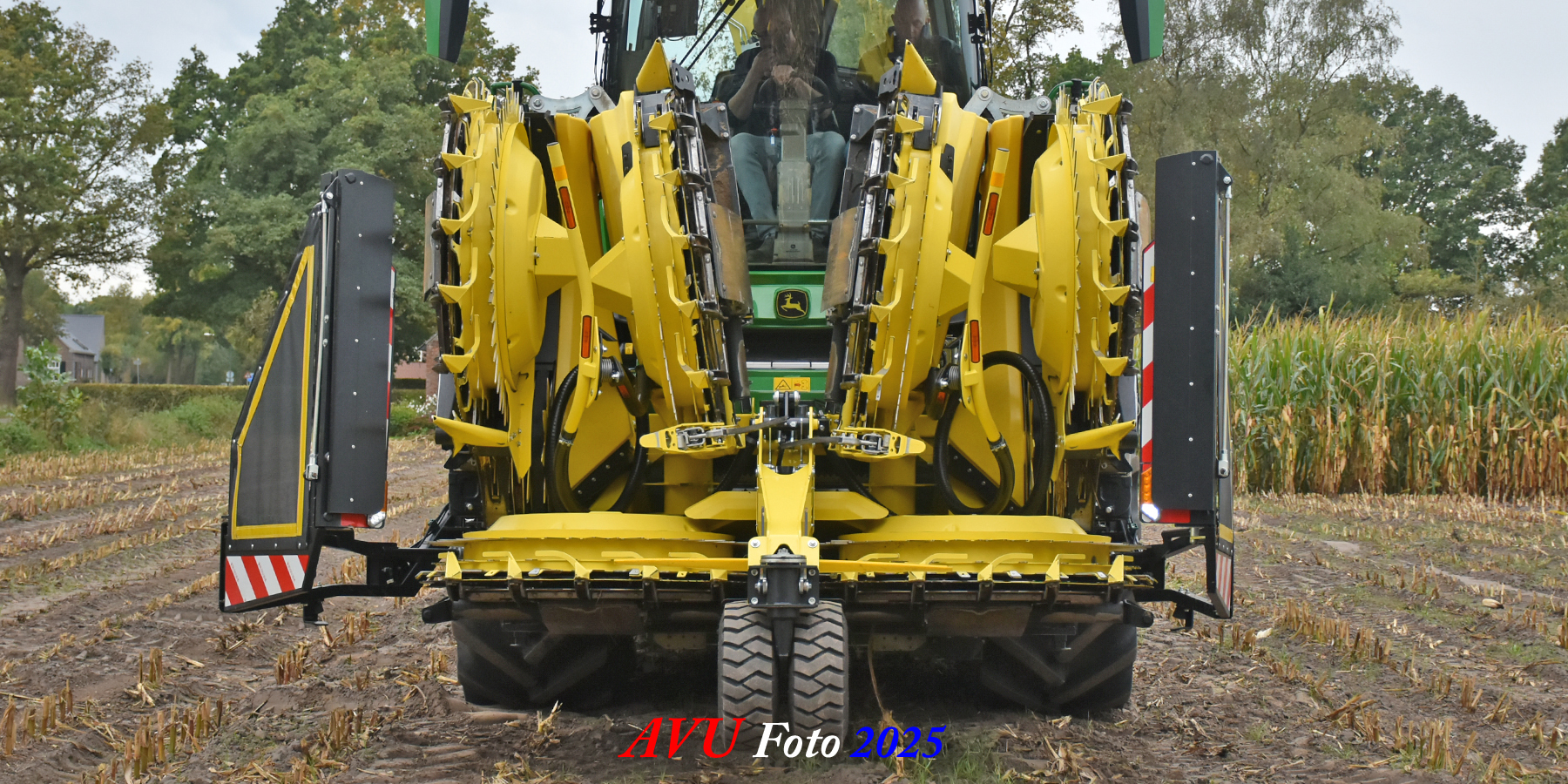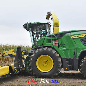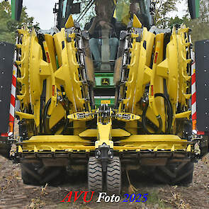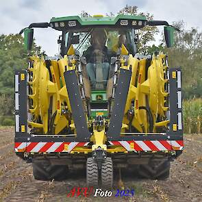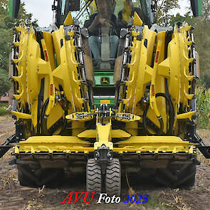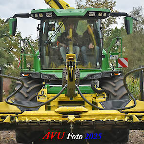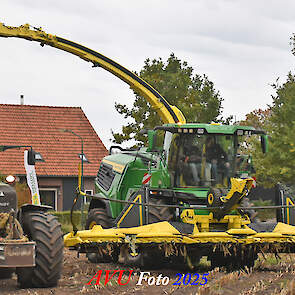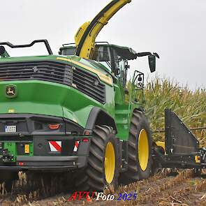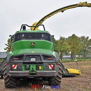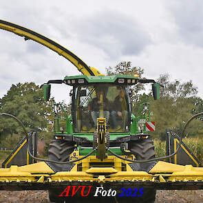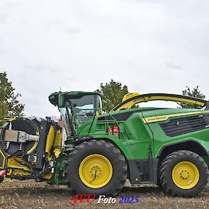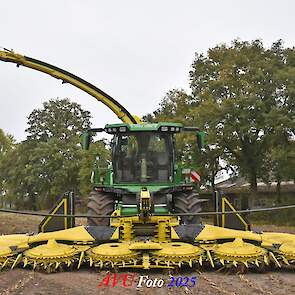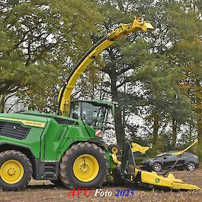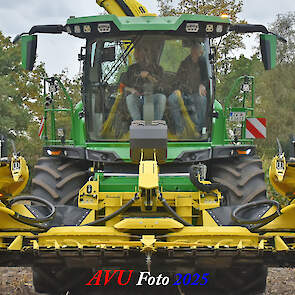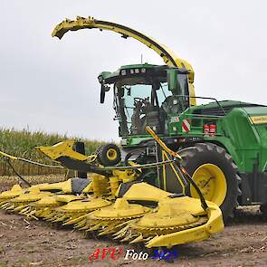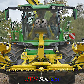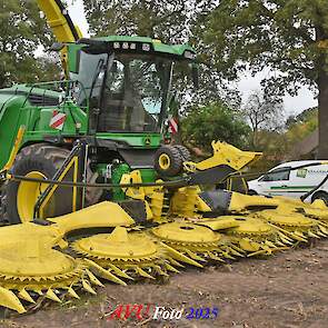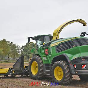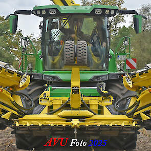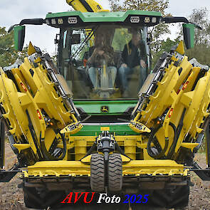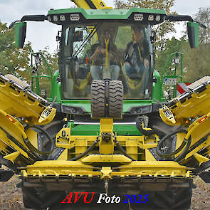 Door Kraakman georganiseerd. Hier is de kleinste met een John Deere JD18X-motor van 750 pk ingezet. De 9-serie gaat tot meer dan 1000 pk. Deze demo John Deere F9-500 is voorzien van vele extra’s o.a. 12 rij maïsbek, banden 800/70R42 en 650/60R34, bandendrukwisselsysteem, etc. "Wat een verschil met 45 jaar geleden toen ik de John Deere 5200- en later de 5460-typen verkocht heb", aldus Ad Verhoeven, de fotograaf van deze reportage.