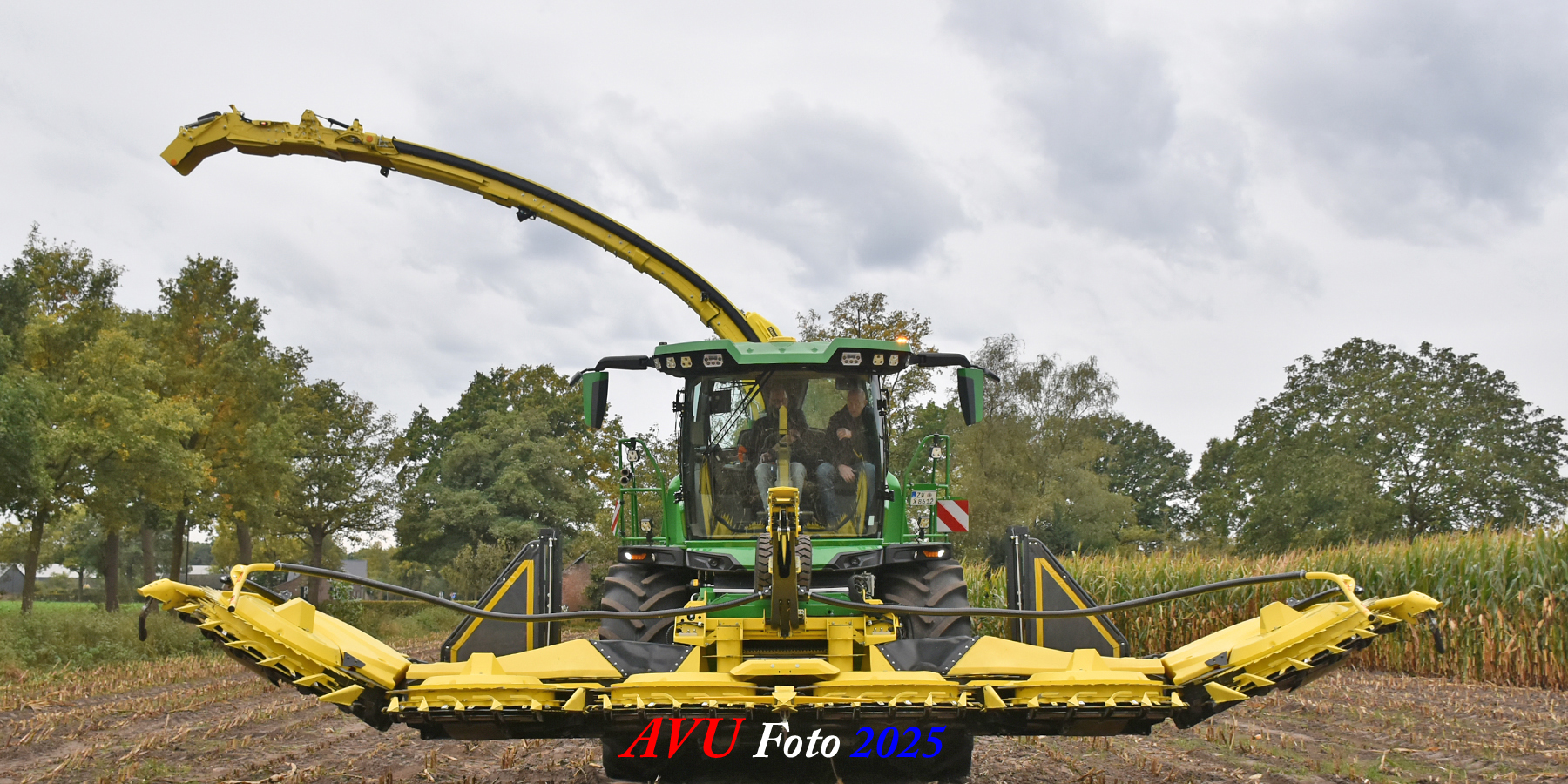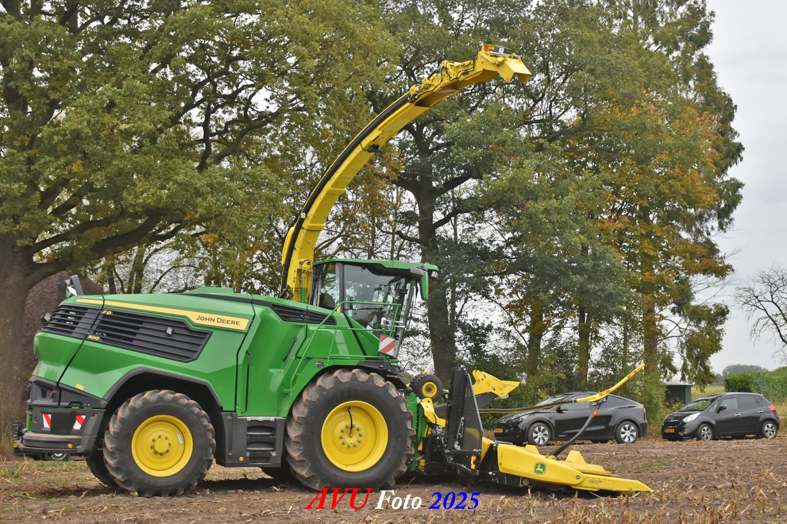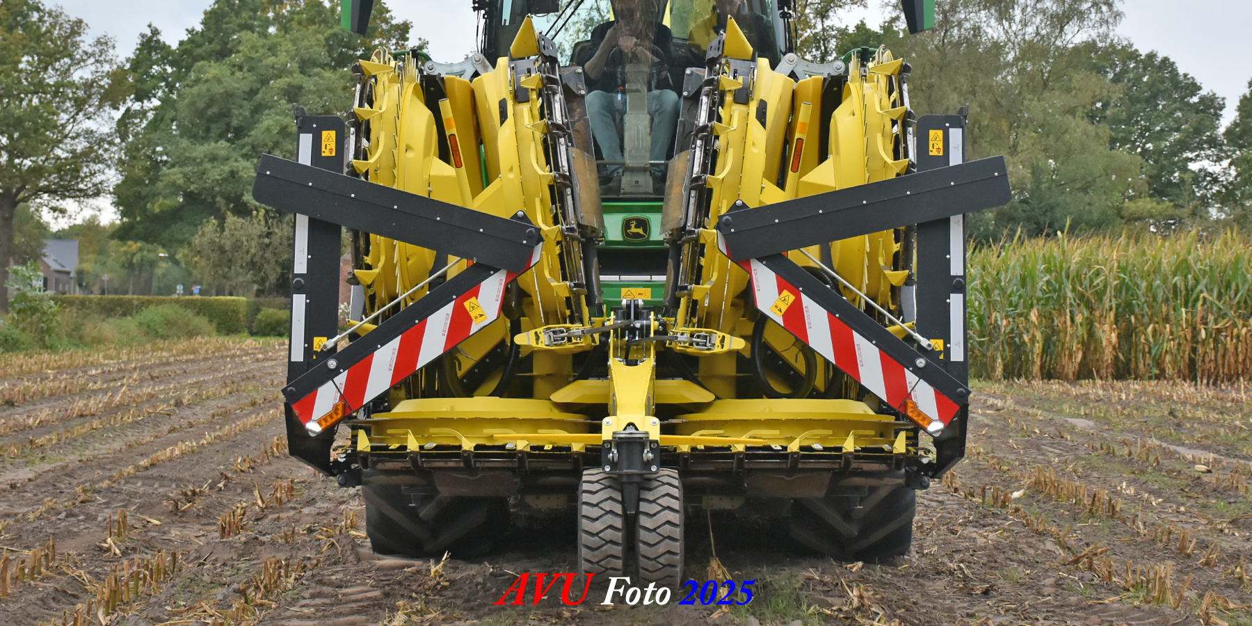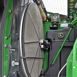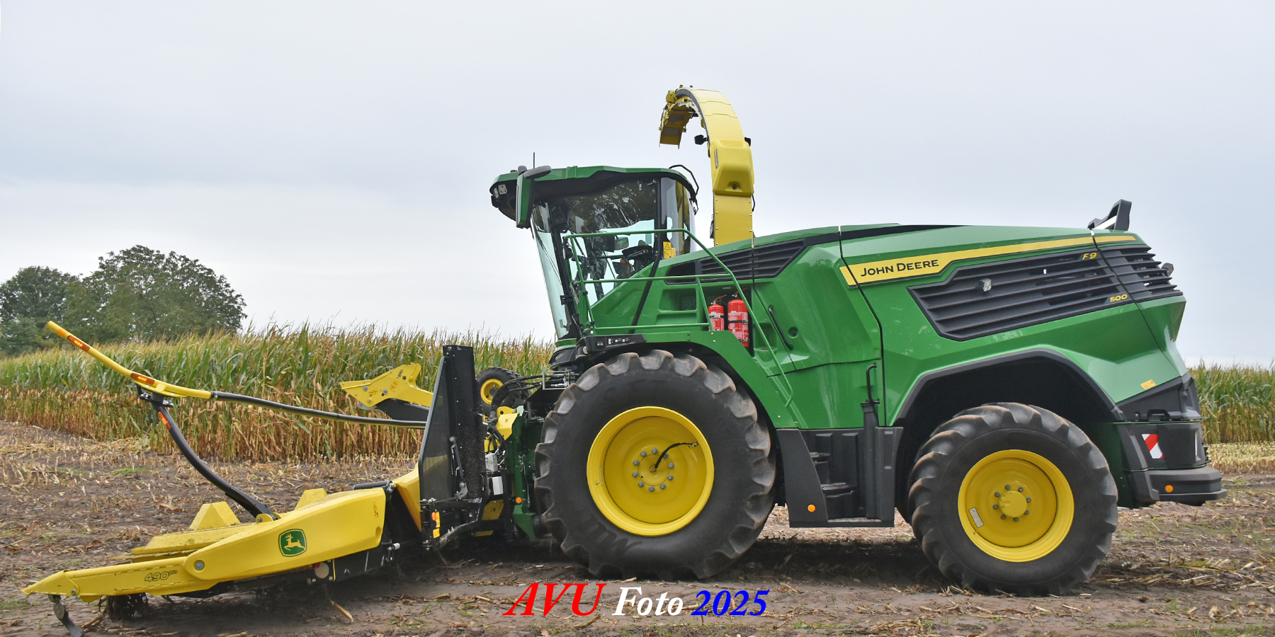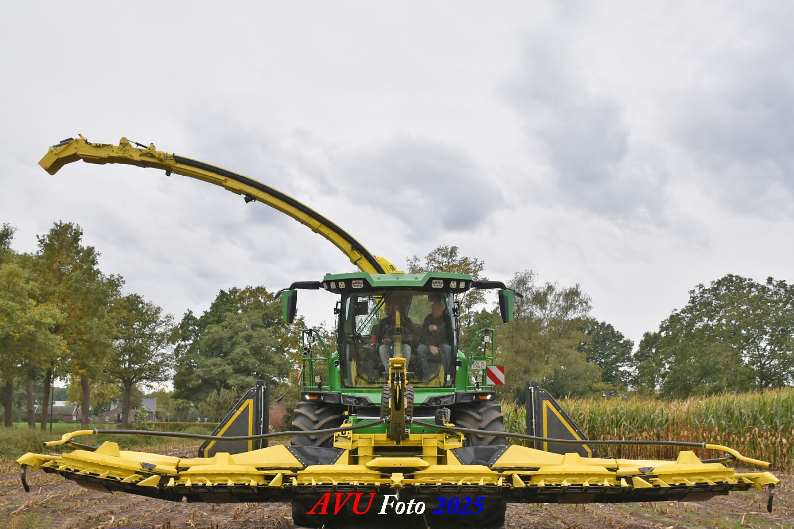 Door Kraakman georganiseerd. Hier is de kleinste met een John Deere JD18X-motor van 750 pk ingezet. De 9-serie gaat tot meer dan 1000 pk. Deze demo John Deere F9-500 is voorzien van vele extra’s o.a. 12 rij maïsbek, banden 800/70R42 en 650/60R34, bandendrukwisselsysteem, etc. "Wat een verschil met 45 jaar geleden toen ik de John Deere 5200- en later de 5460-typen verkocht heb", aldus Ad Verhoeven, de fotograaf van deze reportage.