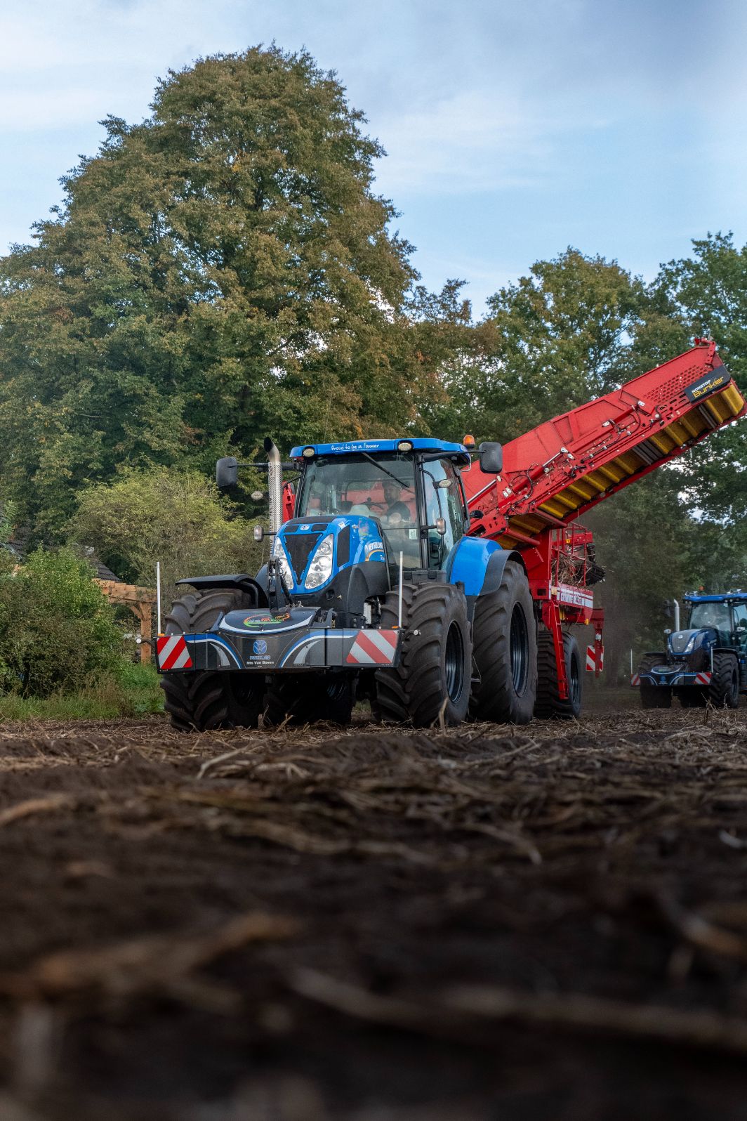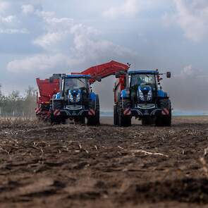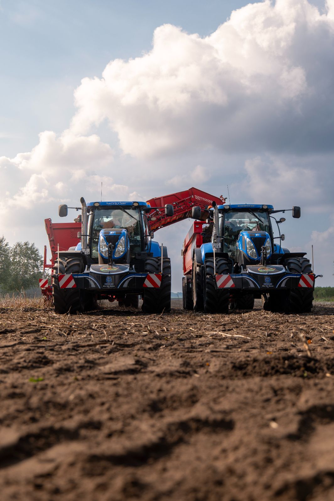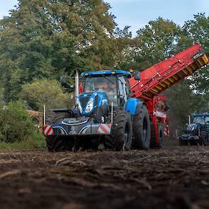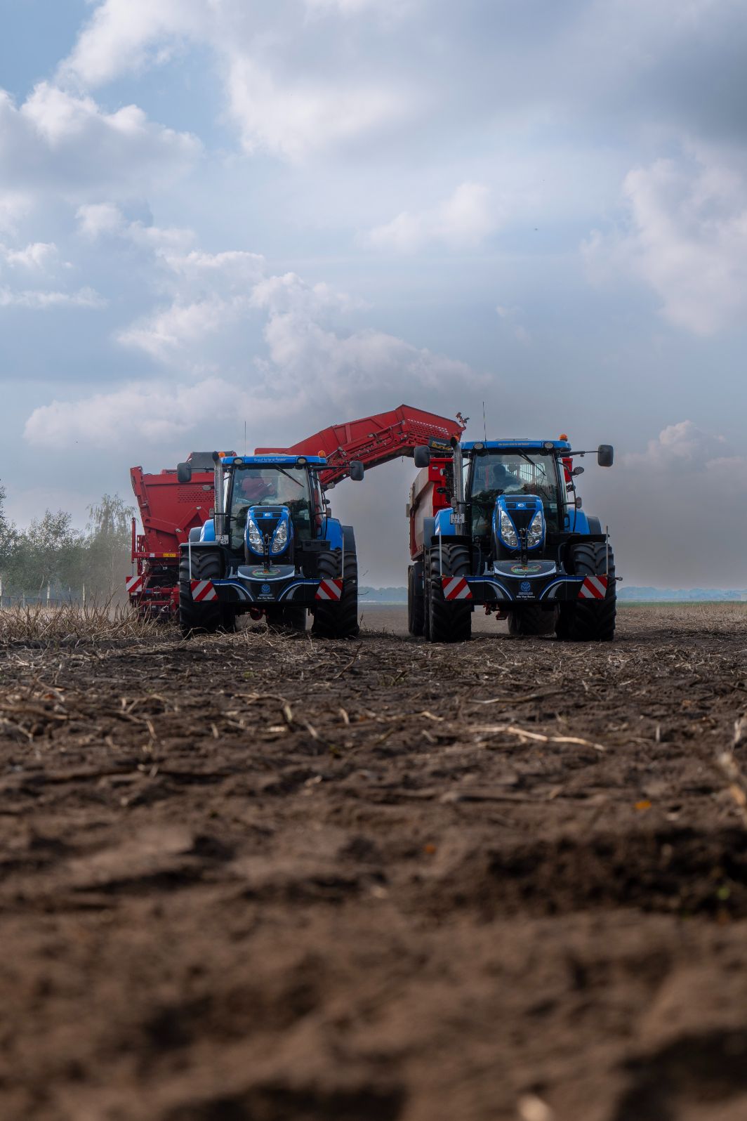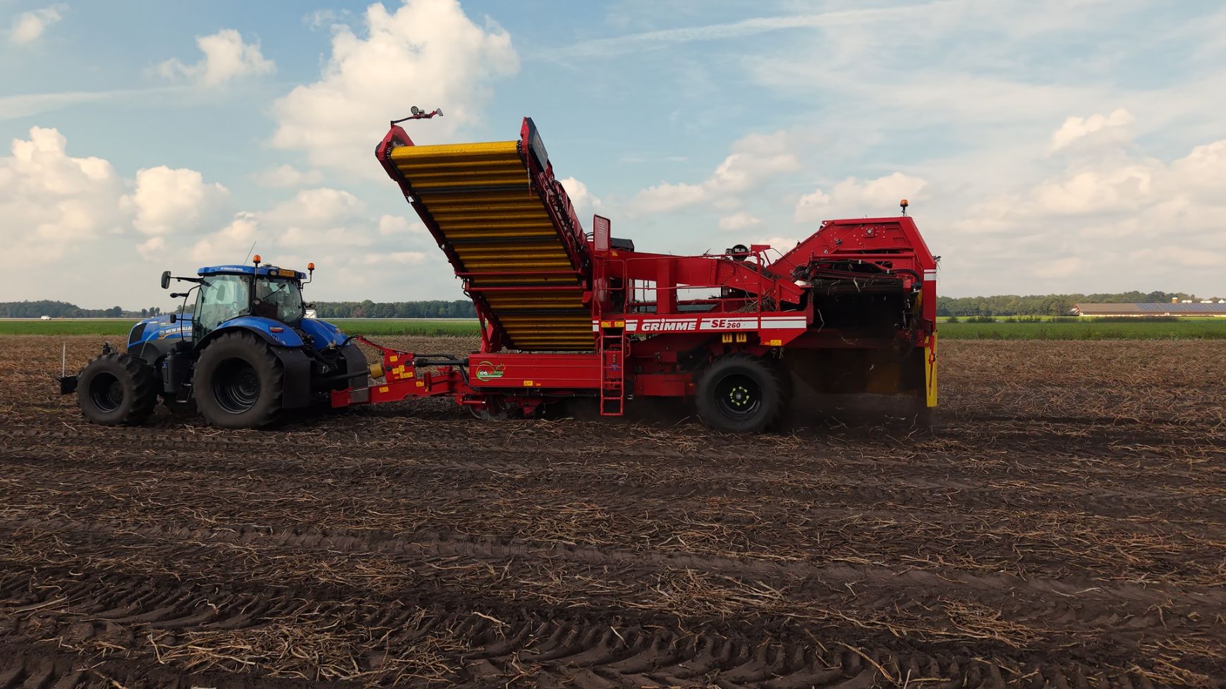 De aardappelen worden gerooid met een New Holland T7.200 in combinatie met een Grimme SE 260. Deze aardappelen zijn bestemd voor de aardappelvlokken.