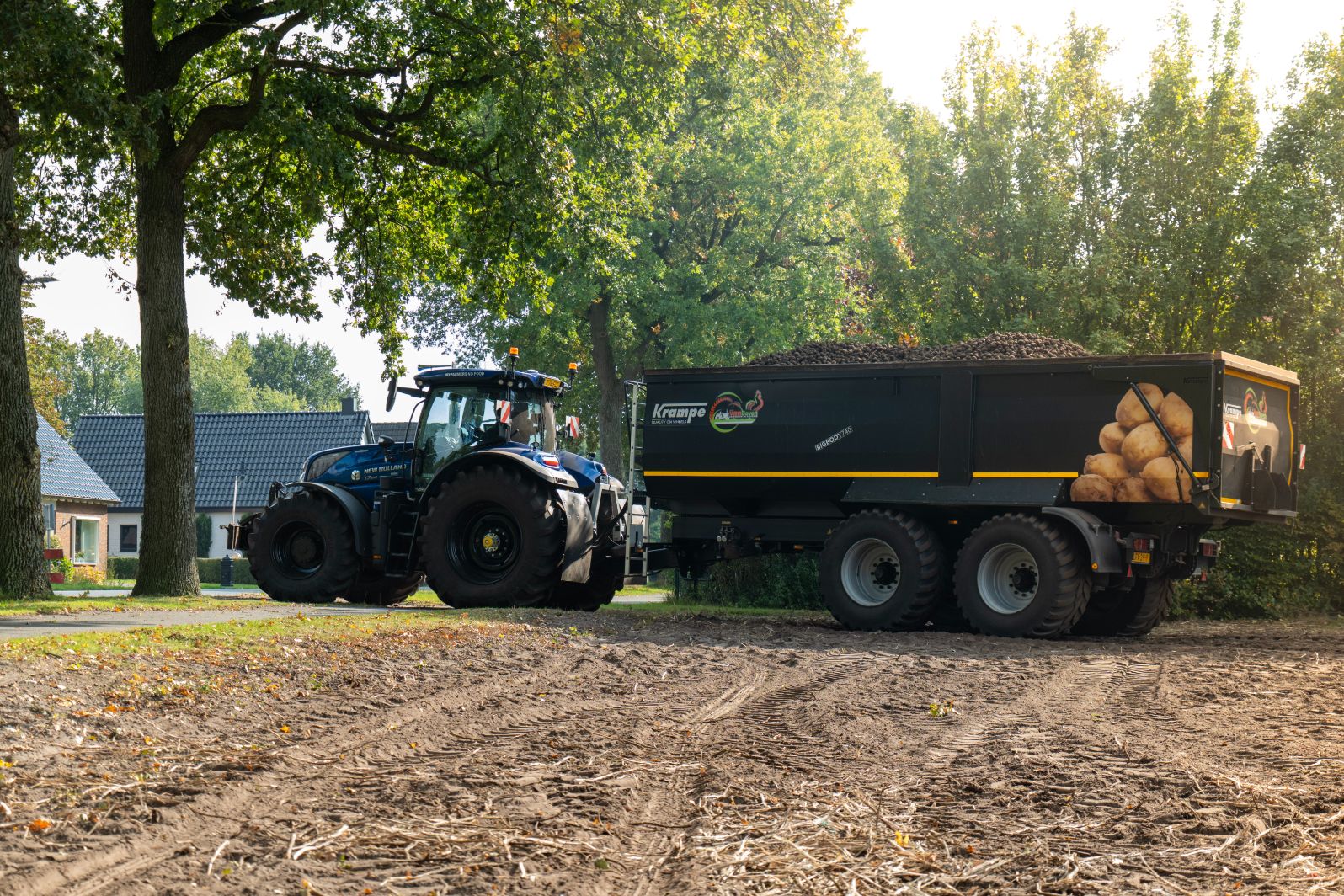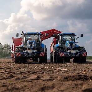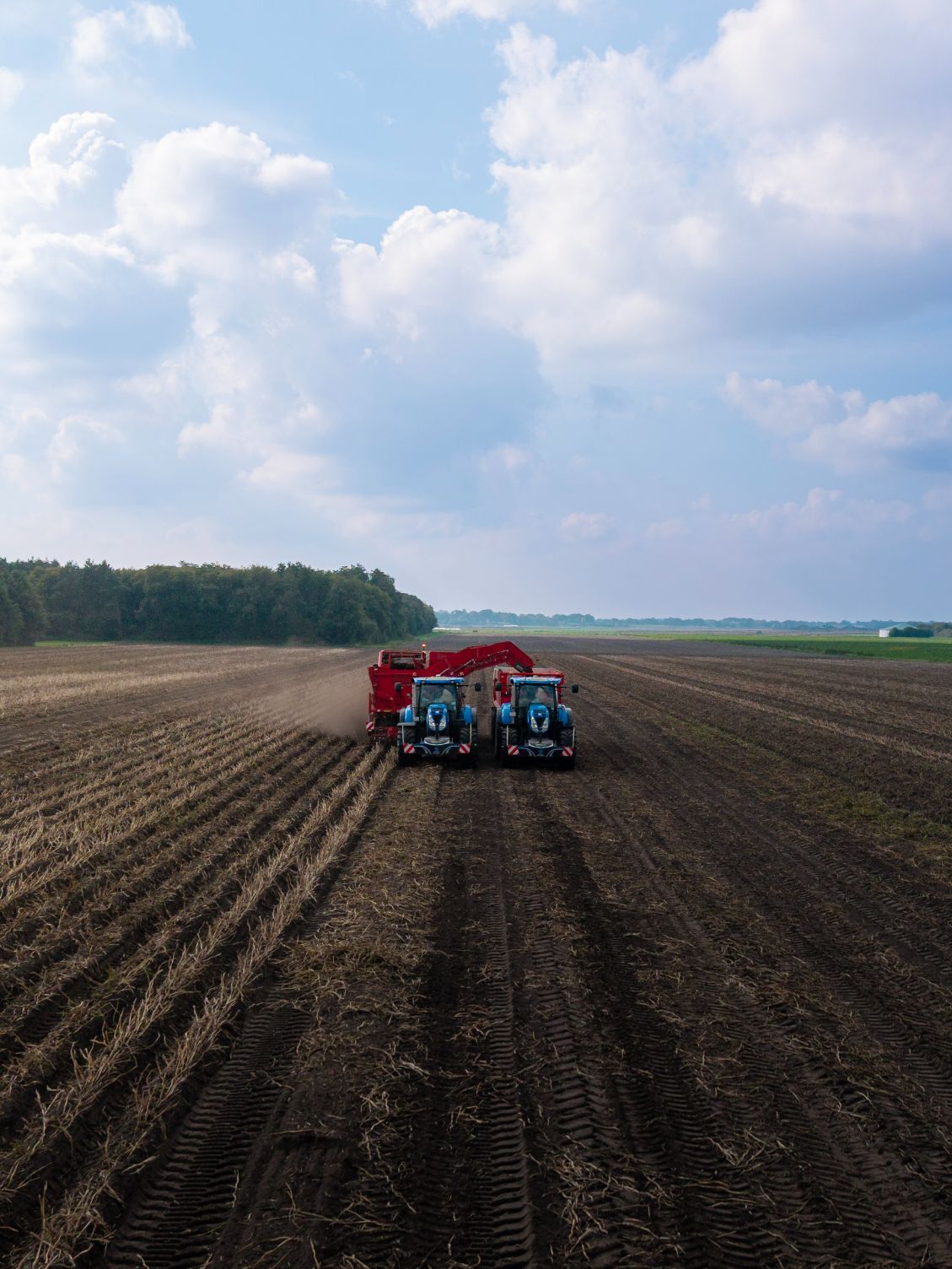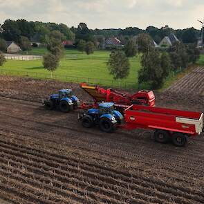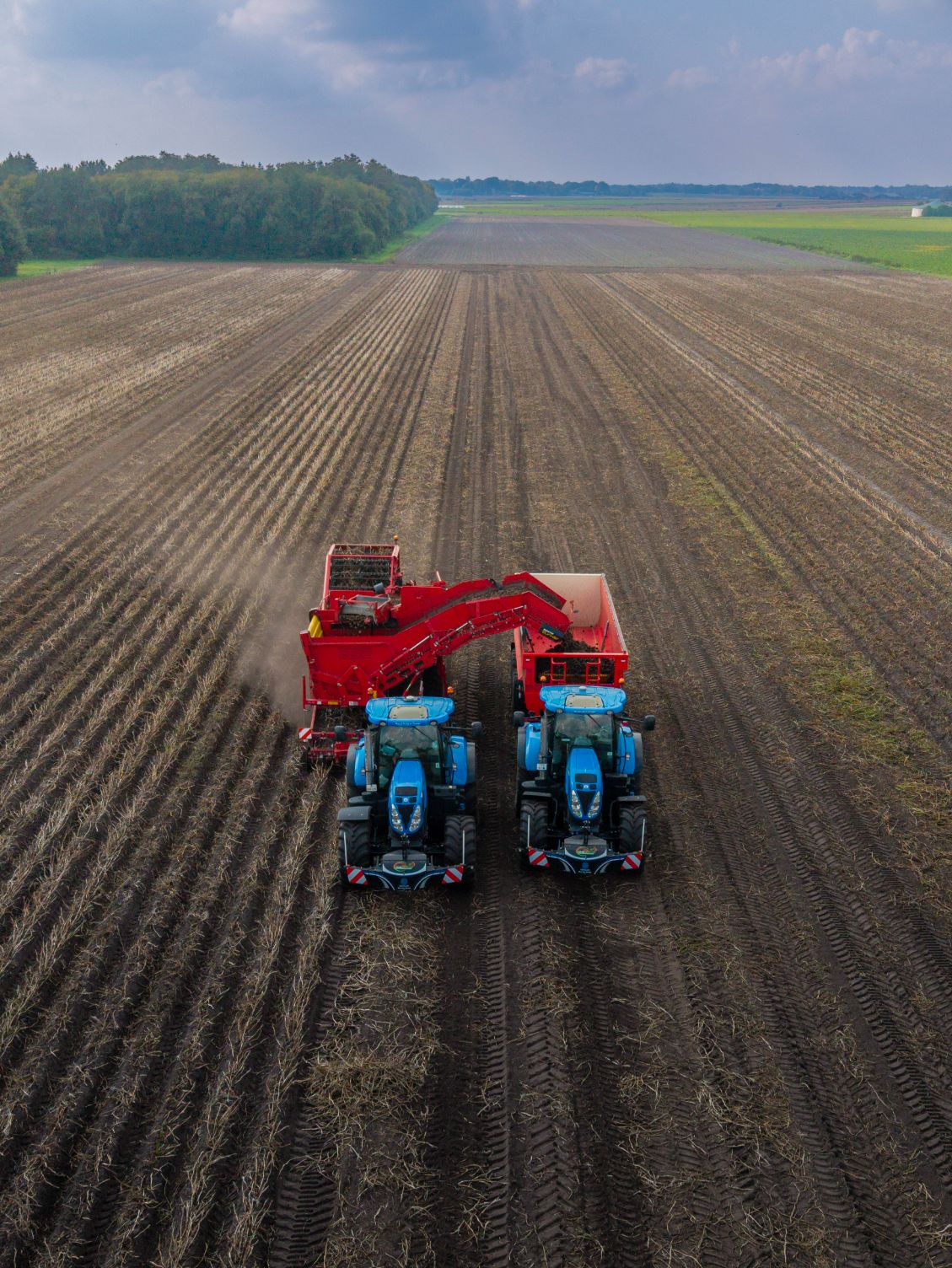 De aardappelen worden gerooid met een New Holland T7.200 in combinatie met een Grimme SE 260. Deze aardappelen zijn bestemd voor de aardappelvlokken.