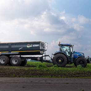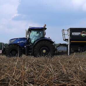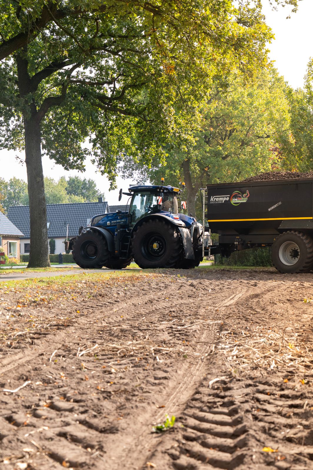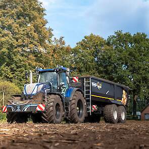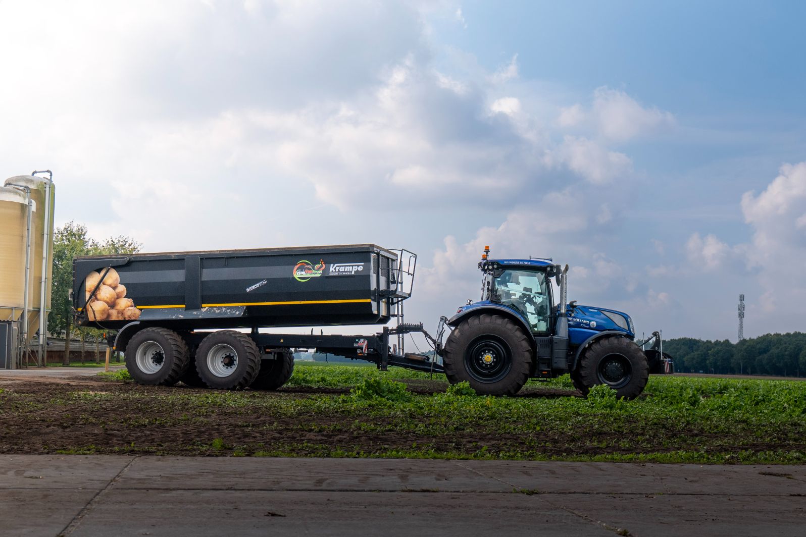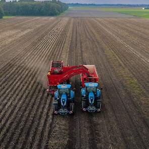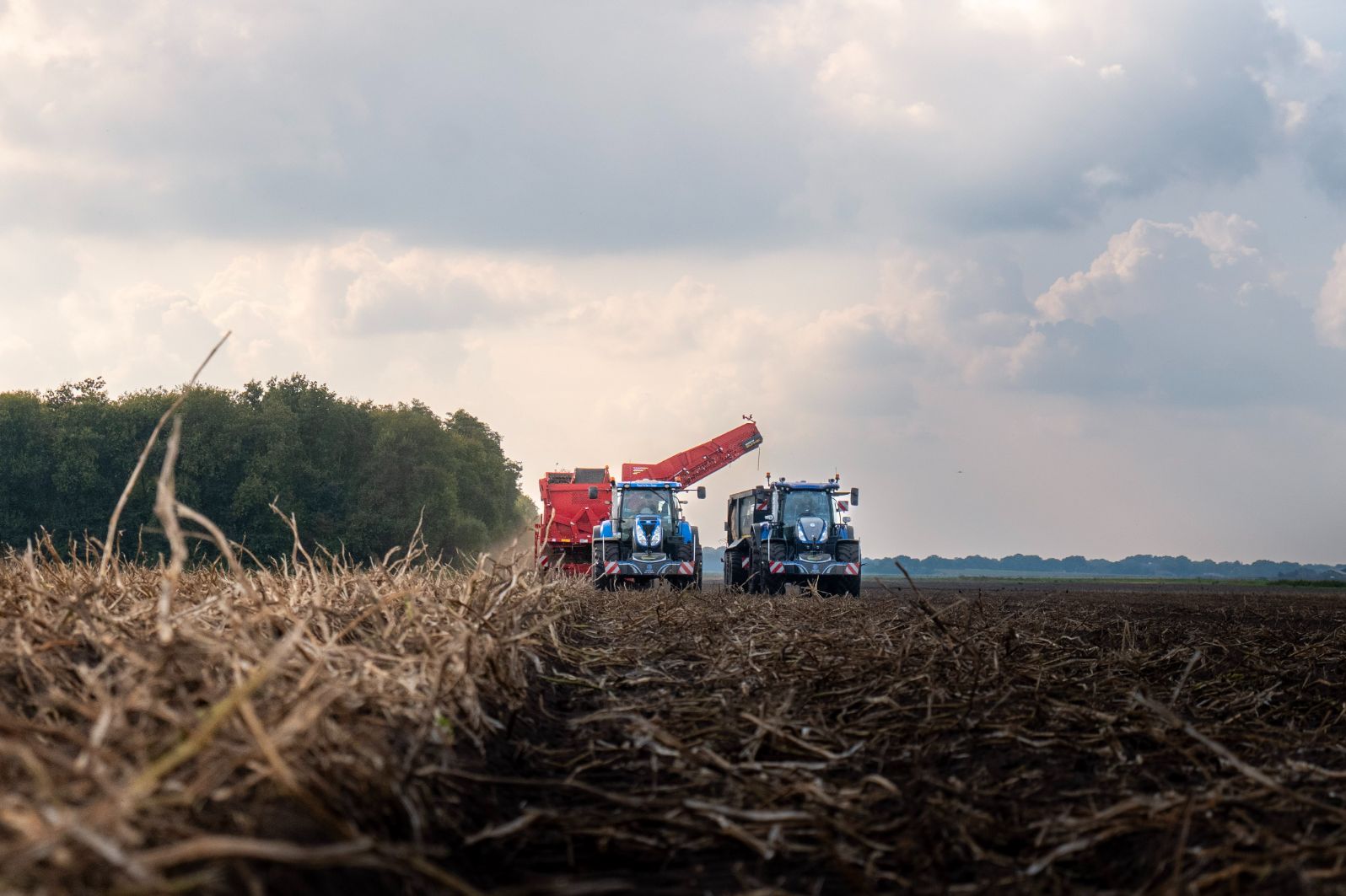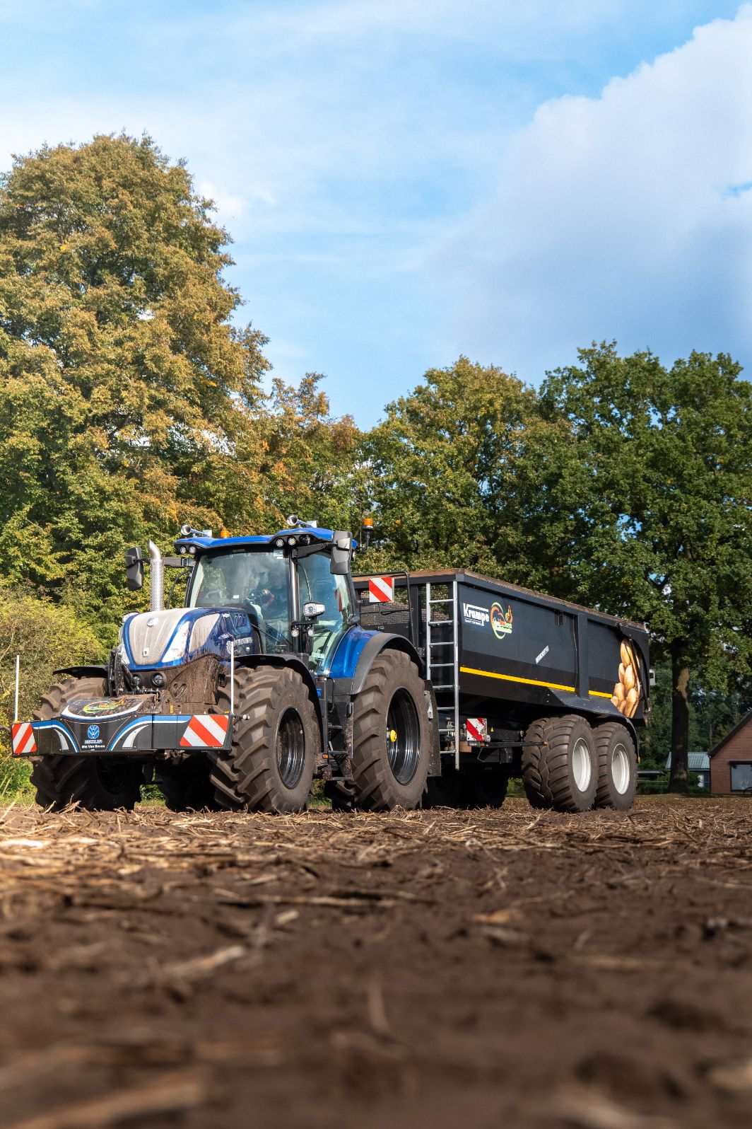 De aardappelen worden gerooid met een New Holland T7.200 in combinatie met een Grimme SE 260. Deze aardappelen zijn bestemd voor de aardappelvlokken.
