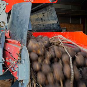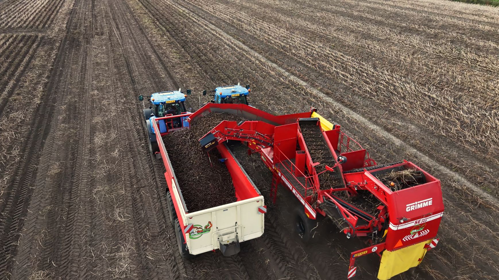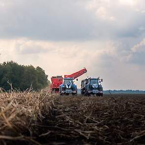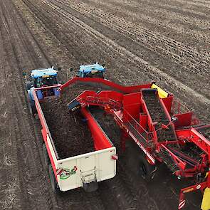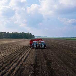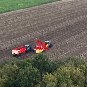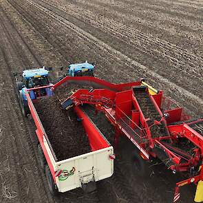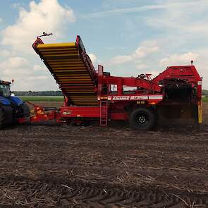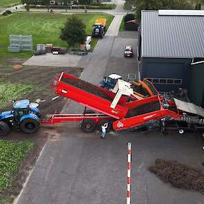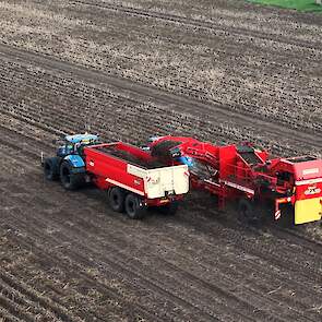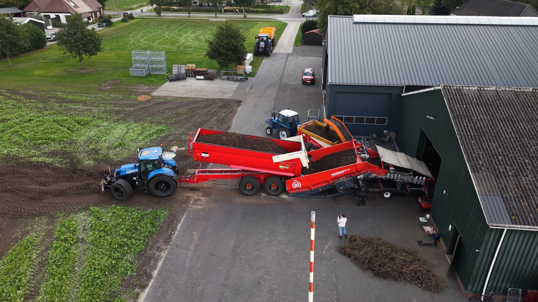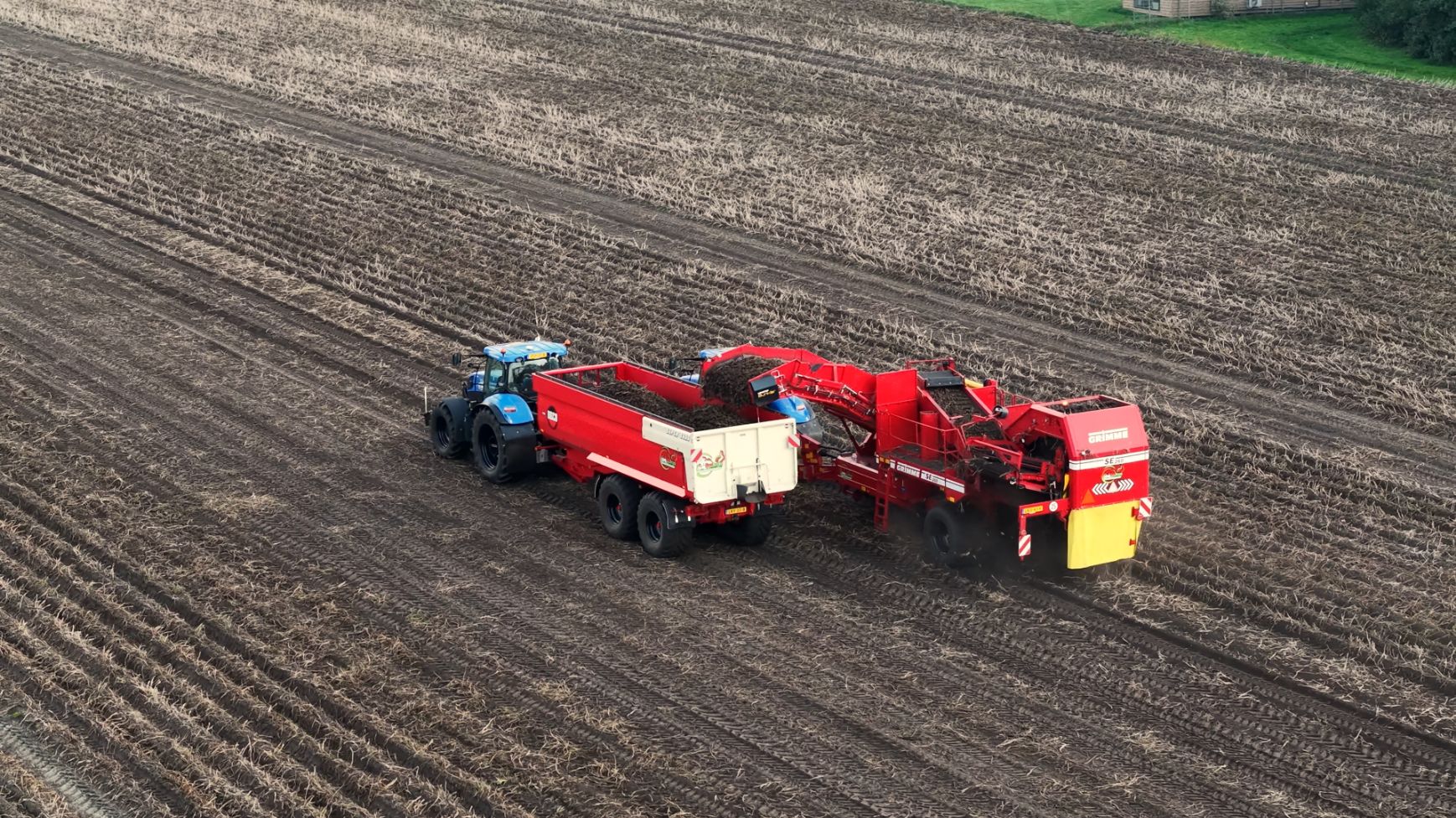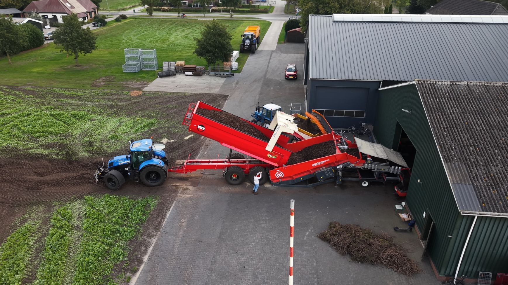 MTS van Boven uit Erica, actief in zowel akkerbouw als pluimvee, is volop bezig met het inschuren van de aardappelen.